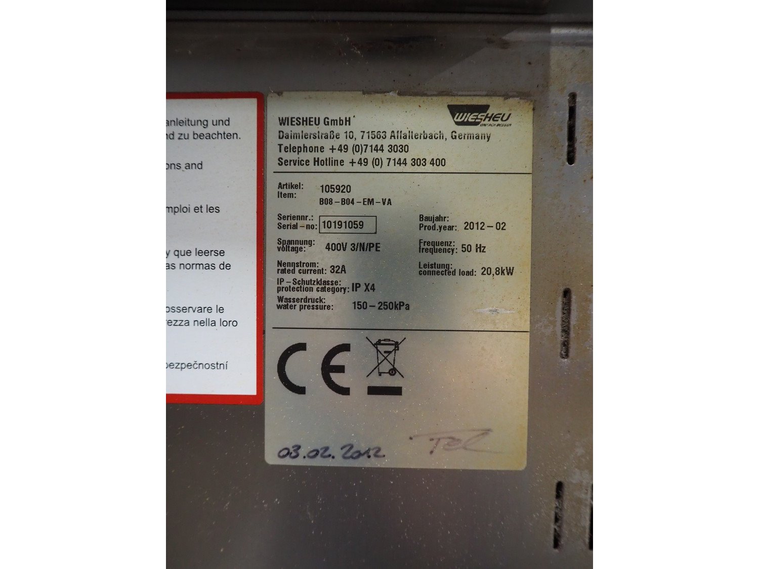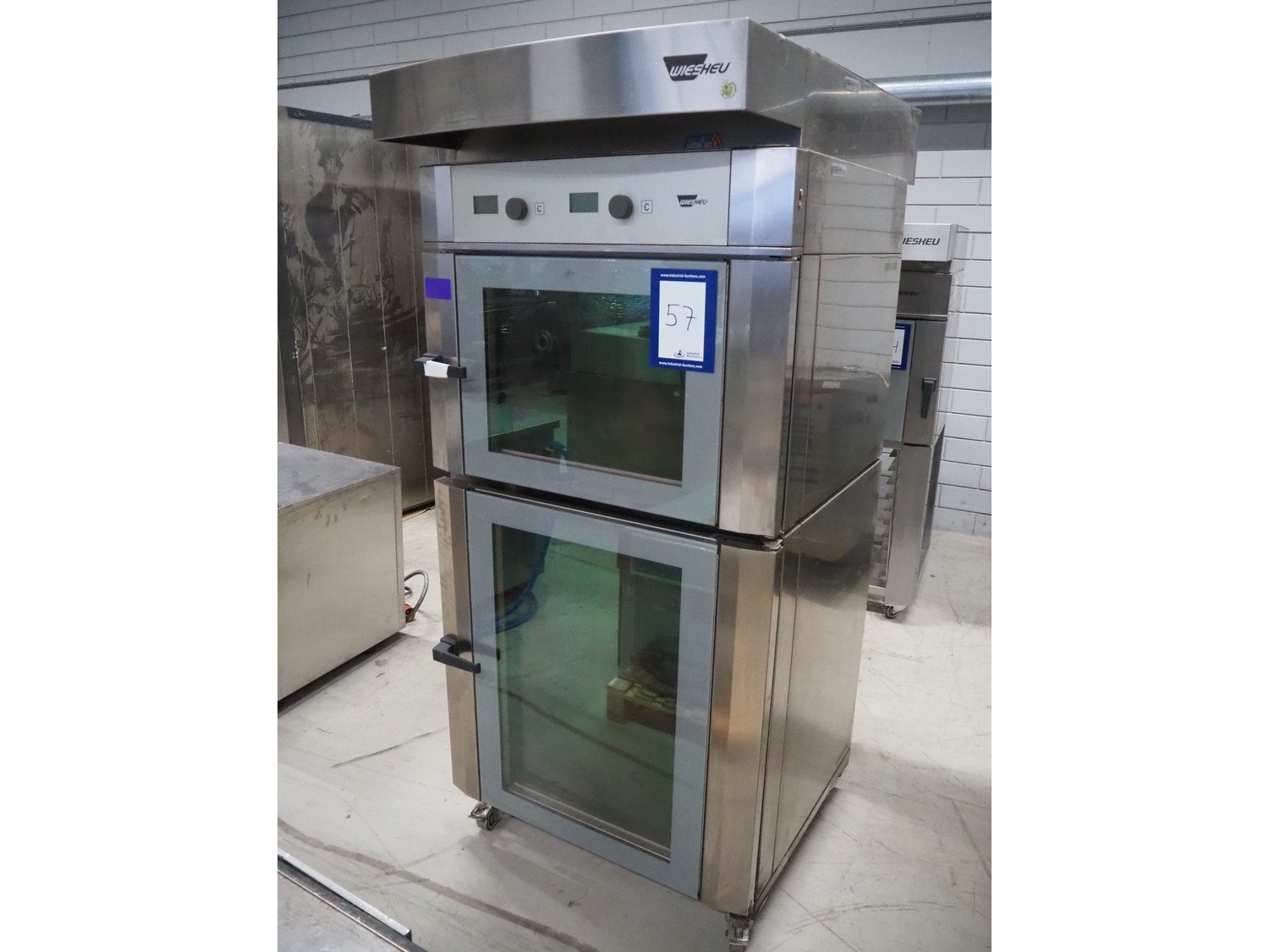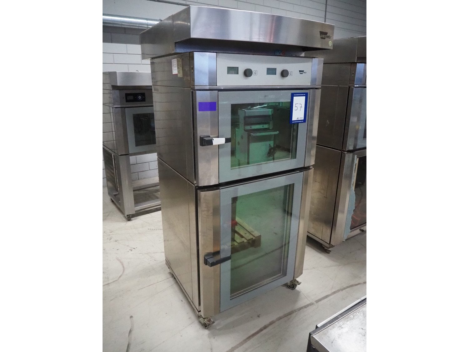 Wiesheu GmbH mobile double stacked oven, model: B08-B04-EM-Va, serial number: 10191059, year of construction: 2012-12, 400 V, 3 Ph, 50 Hz, 32 A, 20.8 kW, 5 and 10 floors, dimensions each floor: 620 mm x 400 mm, total dimensions: 930 mm x 1200 mm x 2070 mm. Kavel locatie: Looyenbeemd 11, 5652 BH Eindhoven, Nederland