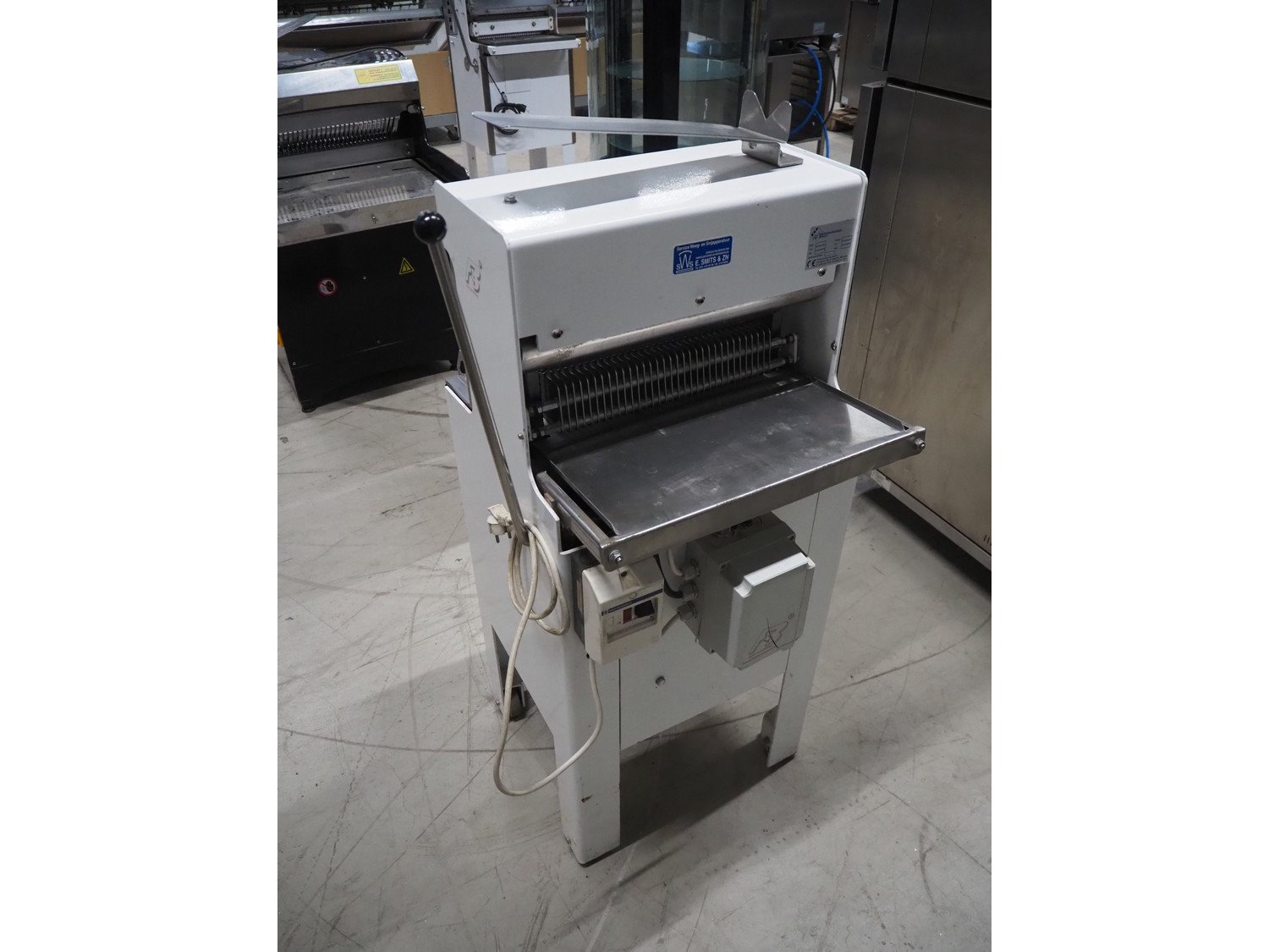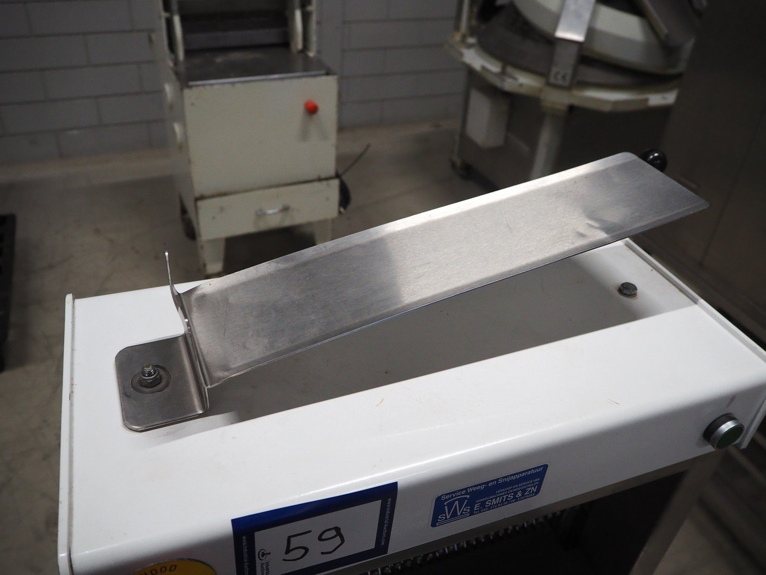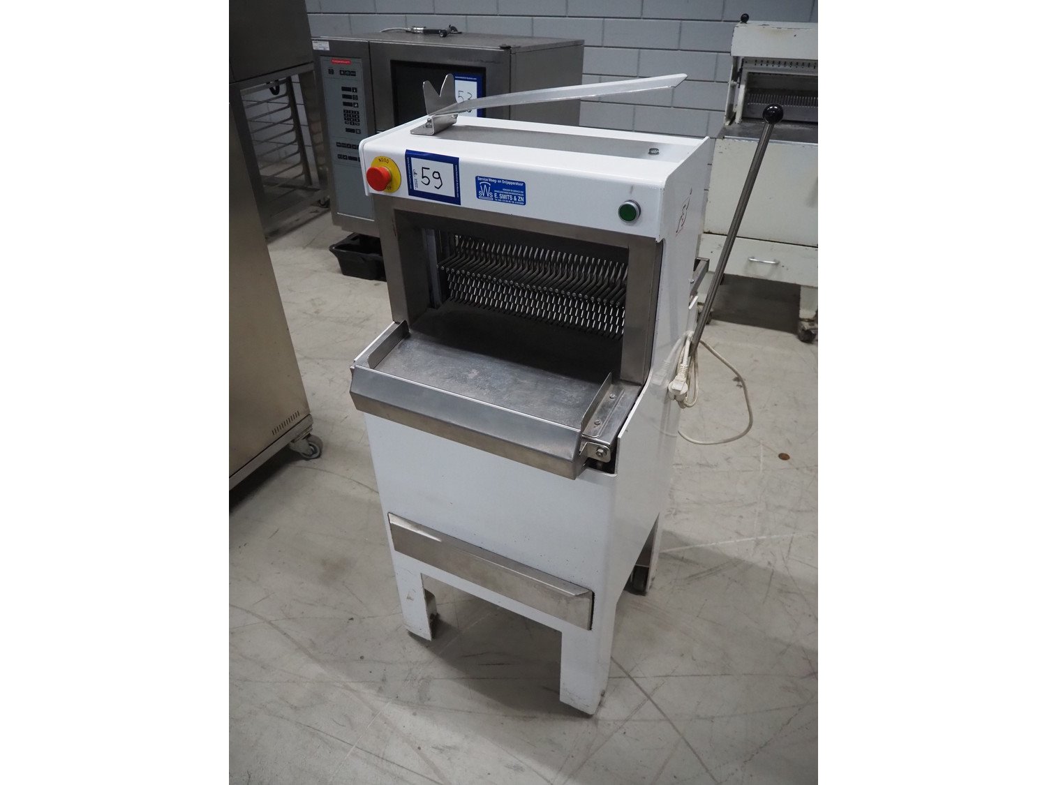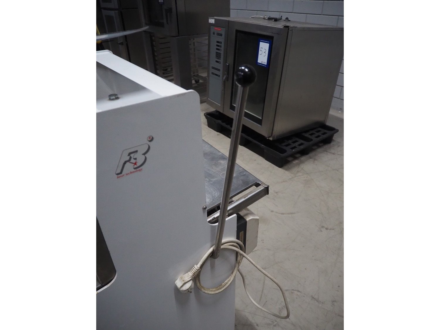 FB-broodsnijmachines Benelux bread slicer, type: A 11, machine number: 05320, year of construction: 2005, 230 V, 1 Ph, 50 Hz, 0.4 kW, working width: 385 mm, distance between knives: 10 mm, total dimensions: 550 mm x 660 mm x 1300 mm. Kavel locatie: Looyenbeemd 11, 5652 BH Eindhoven, Nederland