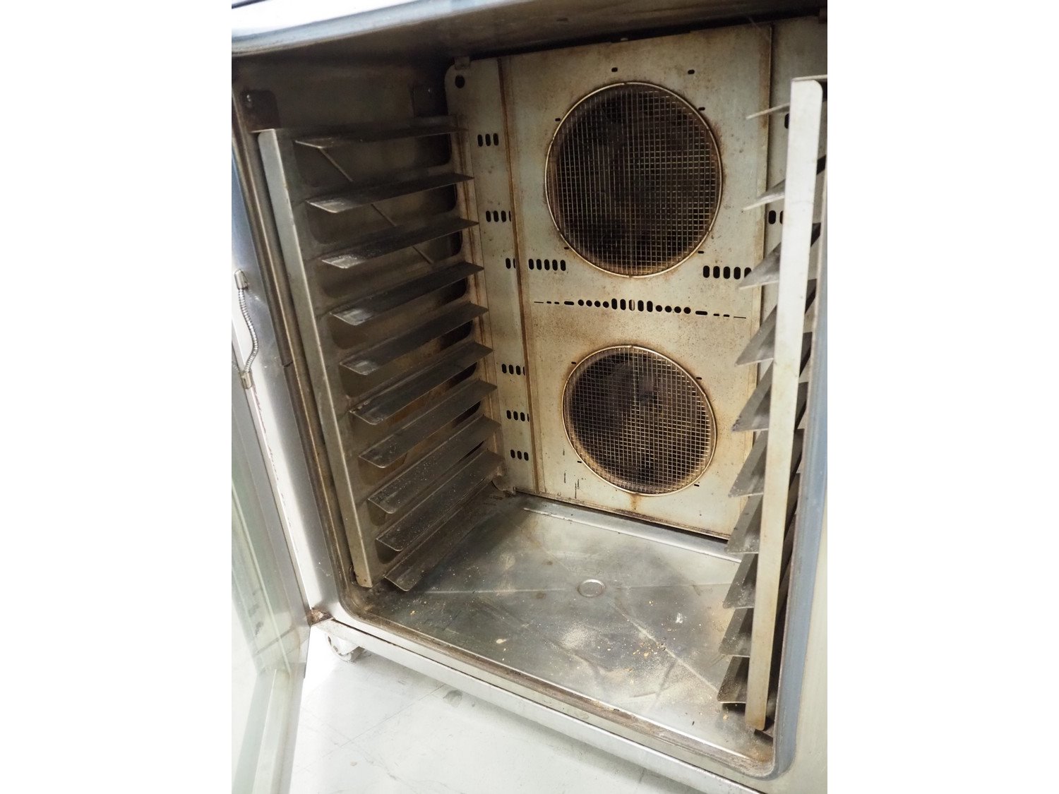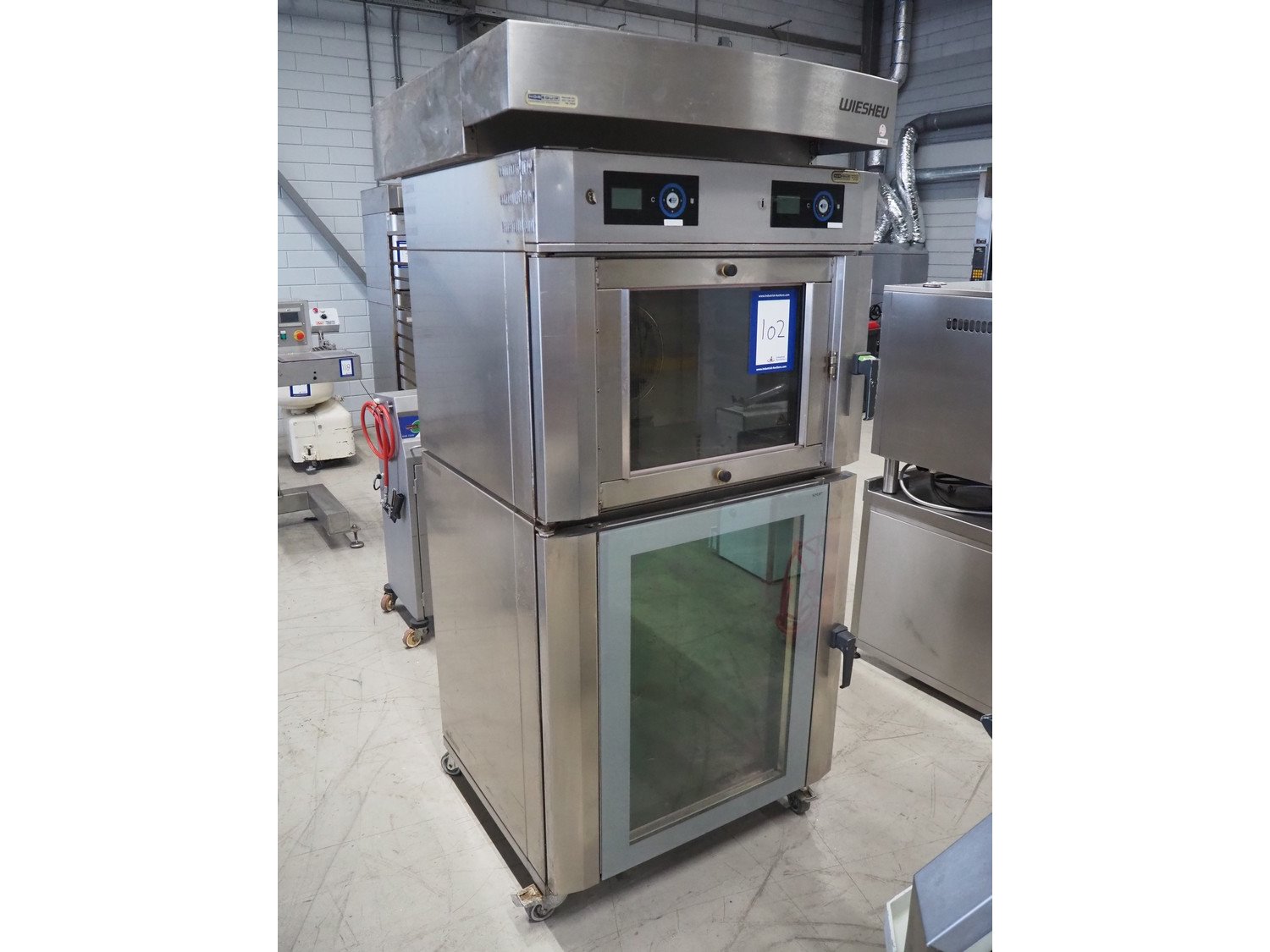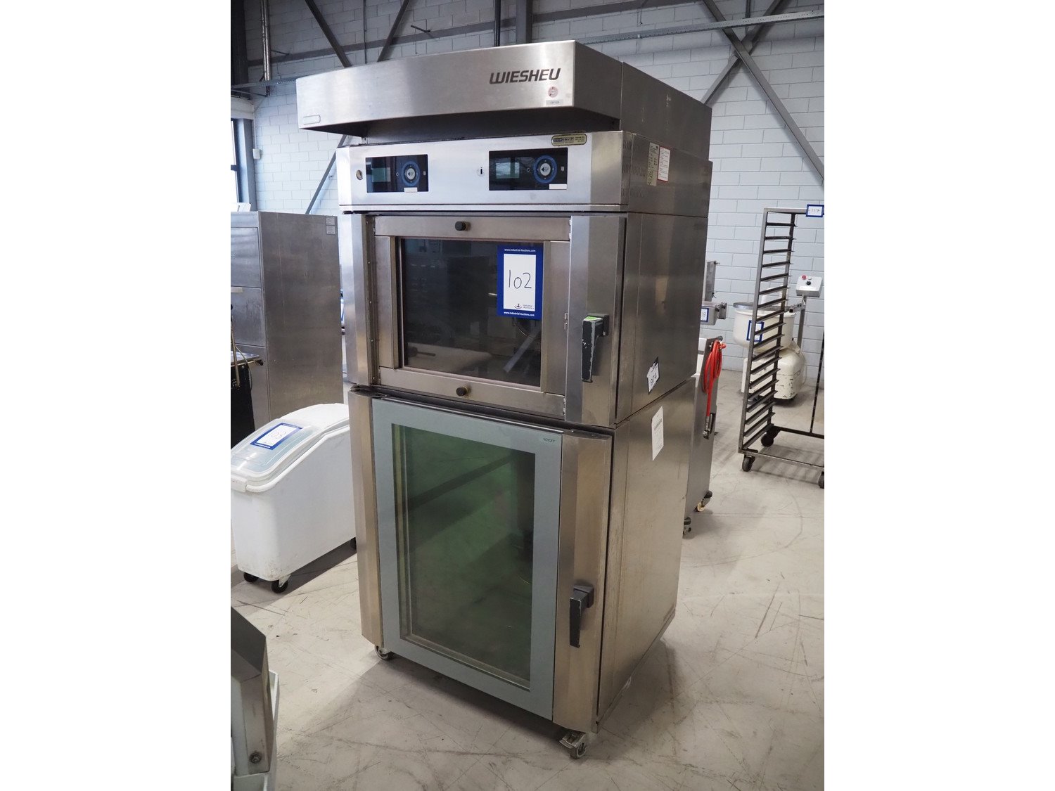 Wiesheu GmbH mobile double stacked oven, model: B08-B04-EM-VA, serial number: 10220341, year of construction: 2012-10, 400 V, 3 Ph, 50 Hz, 32 A, 20.8 kW, 5 and 10 floors, dimensions each floor: 620 mm x 400 mm, total dimensions: 930 mm x 1200 mm x 2070 mm. Kavel locatie: Looyenbeemd 11, 5652 BH Eindhoven, Nederland