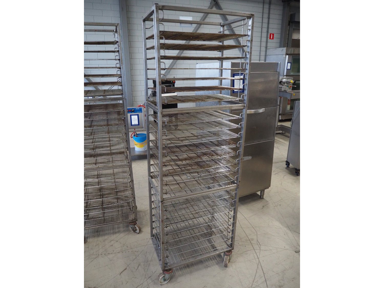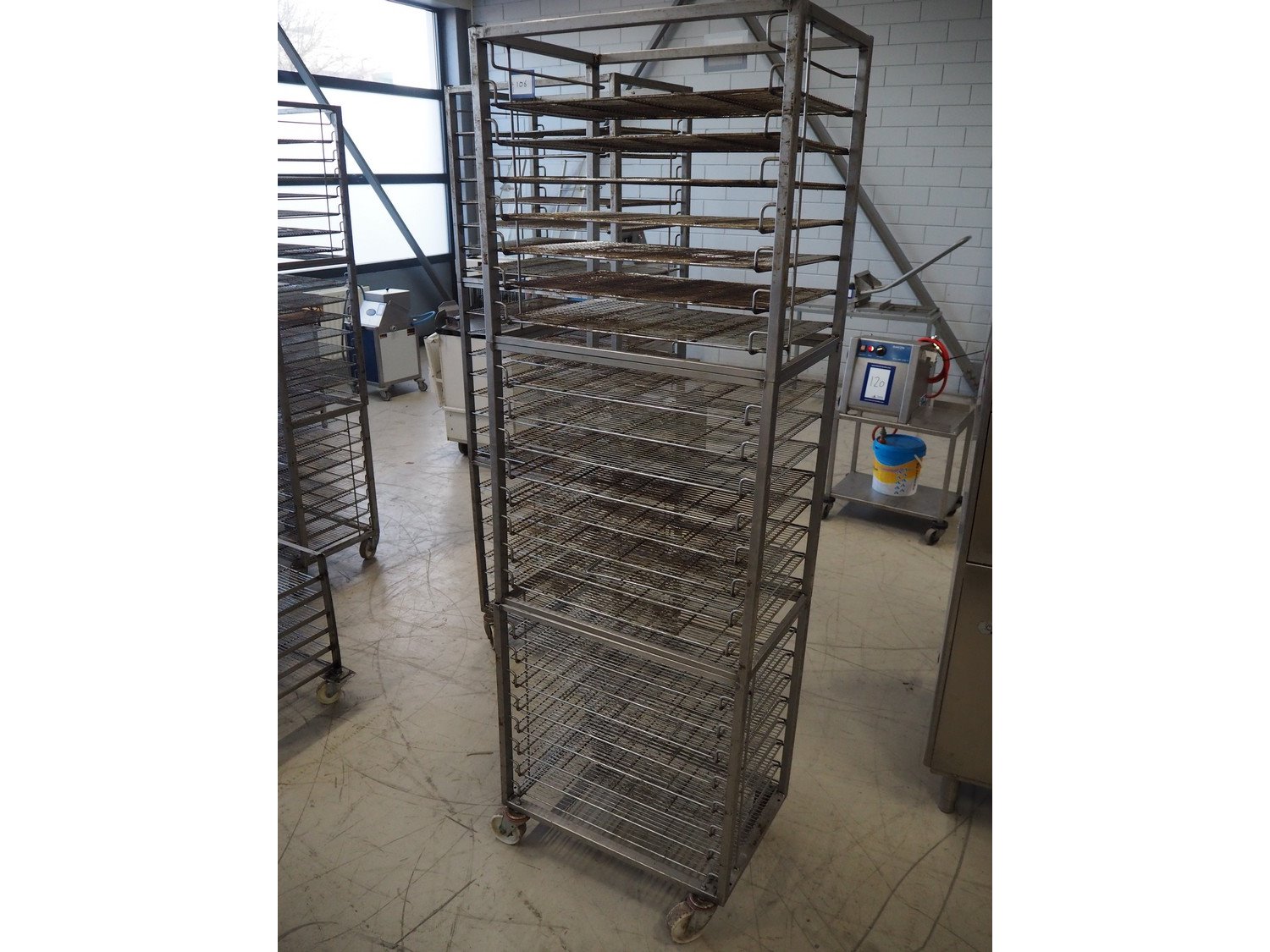 S/s trolley, 23 floors, dimensions floors: 650 mm x 420 mm total dimensions: 660 mm x 420 mm x 1970 mm. Including 23 s/s racks. Kavel locatie: Looyenbeemd 11, 5652 BH Eindhoven, Nederland