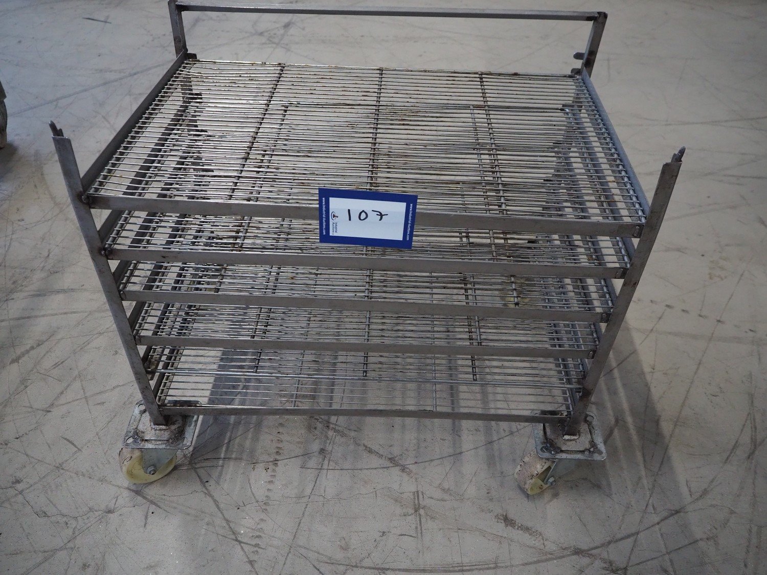S/s trolley, 6 floors, dimensions floors: 600 mm x 410 mm, total dimensions: 650 mm x 420 mm x 570 mm. Kavel locatie: Looyenbeemd 11, 5652 BH Eindhoven, Nederland