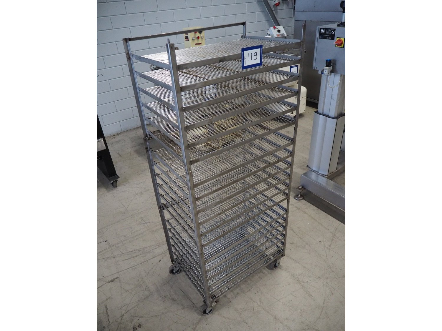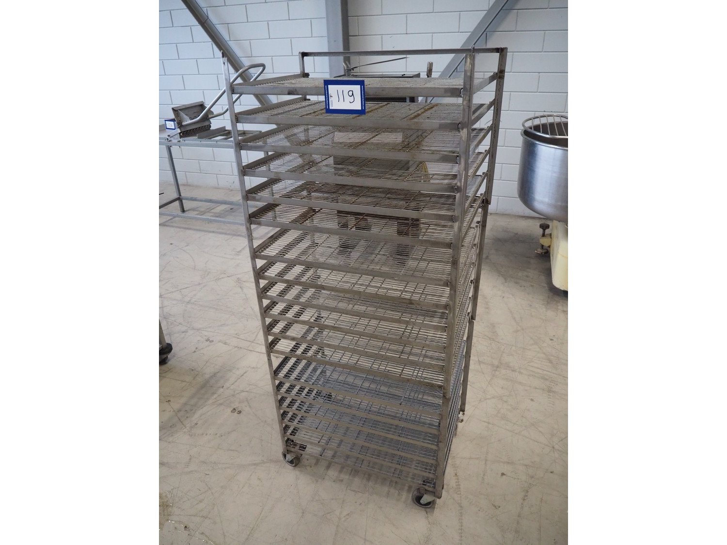 S/s trolley, 18 floors, dimensions floors: 600 mm x 410 mm, total dimensions: 610 mm x 420 mm x 1470 mm. Kavel locatie: Looyenbeemd 11, 5652 BH Eindhoven, Nederland