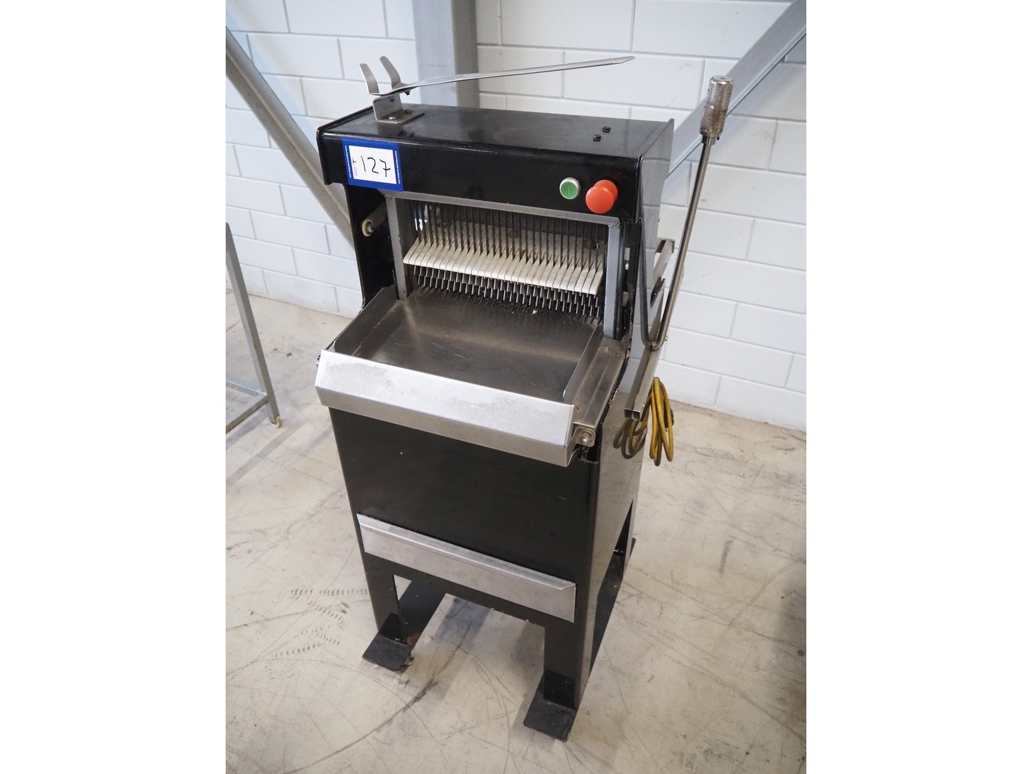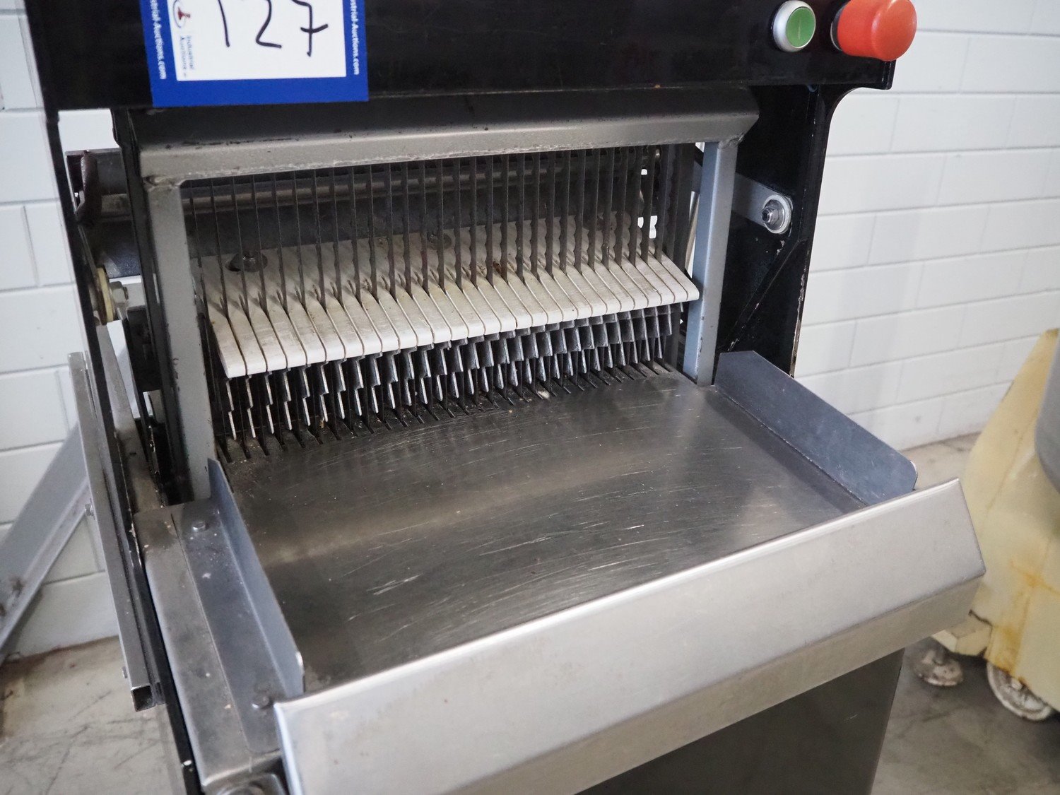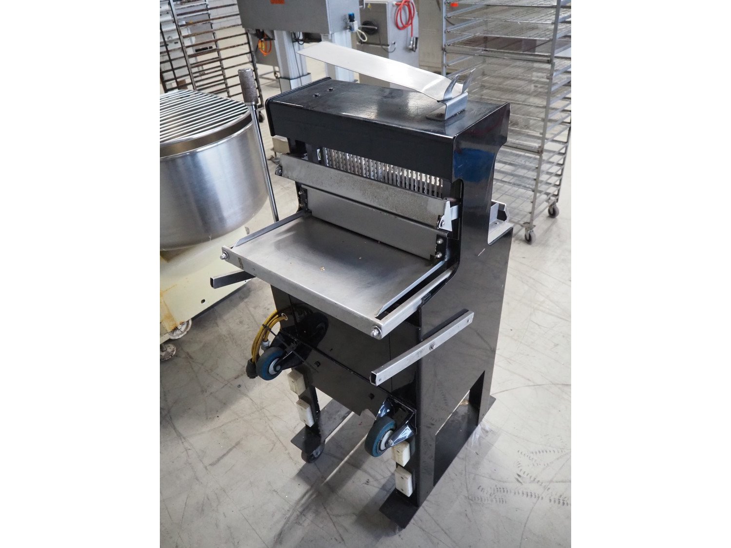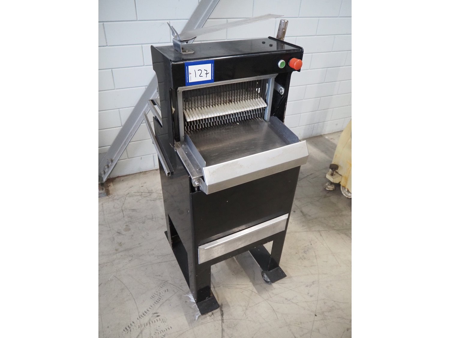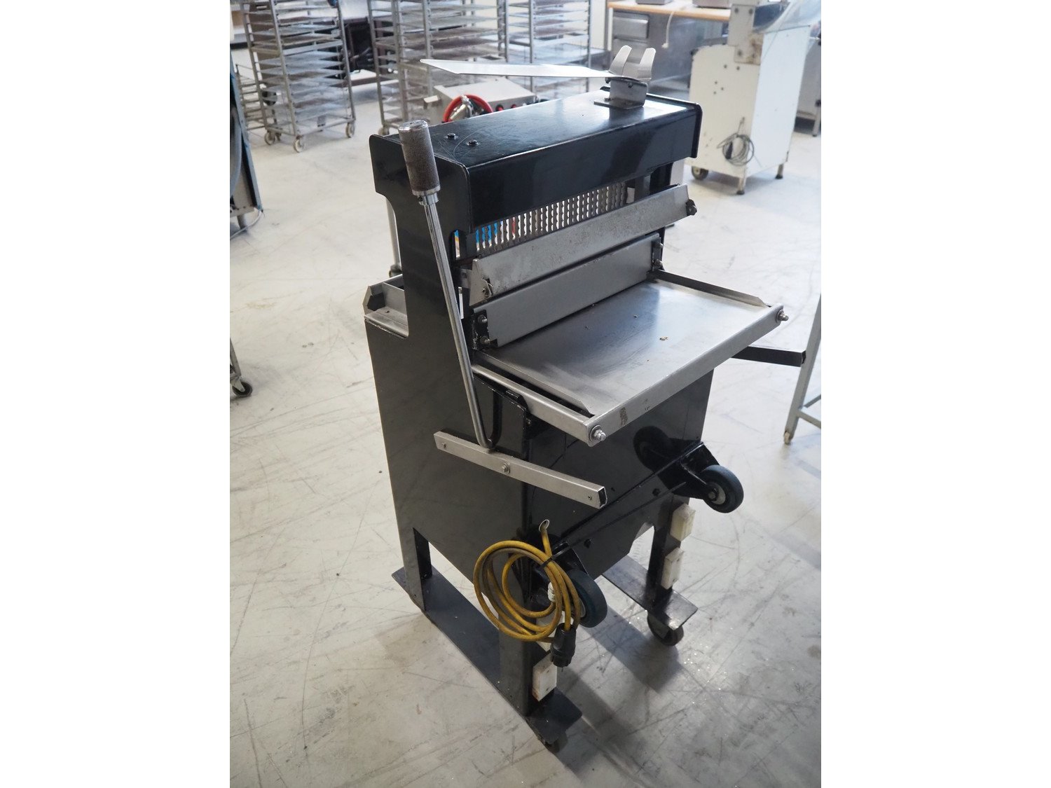 FB mobile bread slicer, 30 knives, distance between knives: 12.5 mm, total dimensions: 700 mm x 580 mm x 1460 mm. Kavel locatie: Looyenbeemd 11, 5652 BH Eindhoven, Nederland