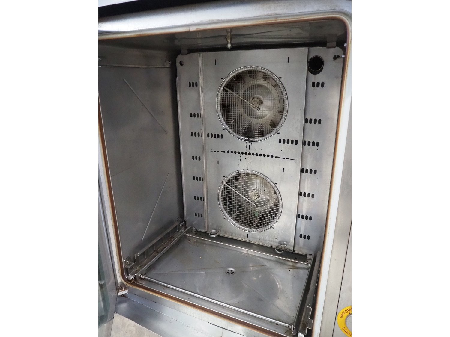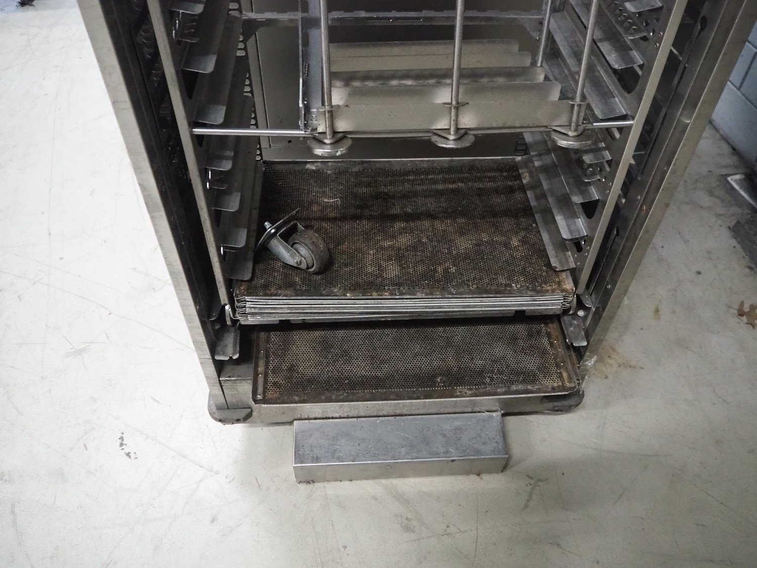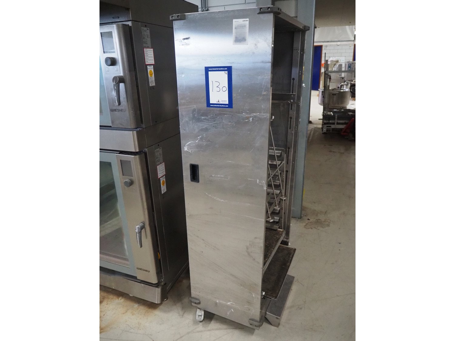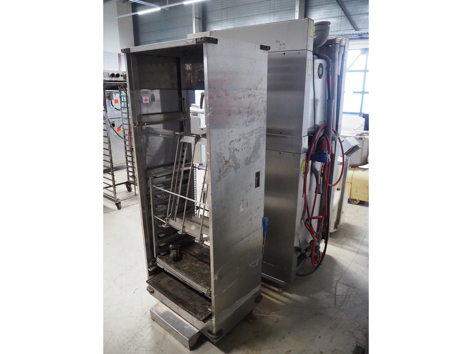 Wiesheu GmbH double stacked oven, type top oven: B4-E2, serial number: 10204883, year of construction: 2012, 400 V, 3 Ph, 50 Hz, 9.2 kW, 13 A, type bottom oven: B8-E2, serial number: 10204917, year of construction: 2012, 400 V, 50 Hz, 26.6 A, 18.4 kW, dimensions: 1100 mm x 950 mm x 2110 mm. Including WIESHEU GmbH tray loading trolley, dimensions: 500 mm x 750 mm x 1920 mm. Incomplete. Kavel locatie: Looyenbeemd 11, 5652 BH Eindhoven, Nederland
