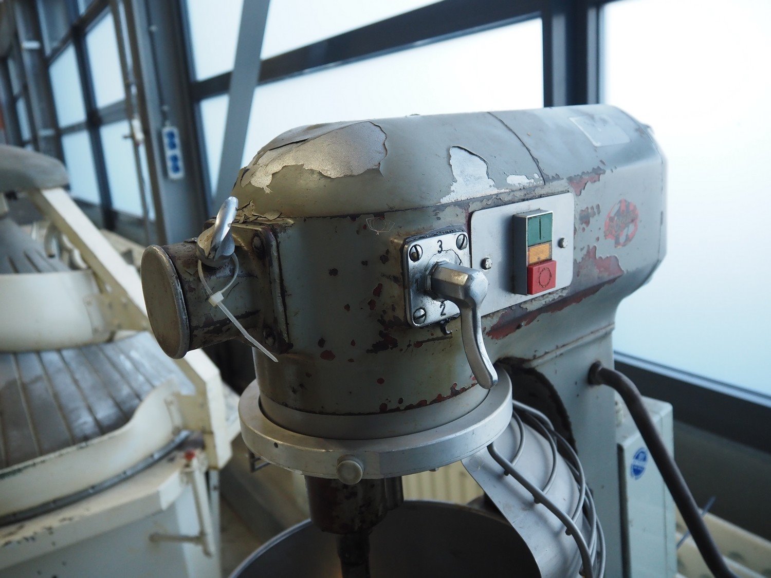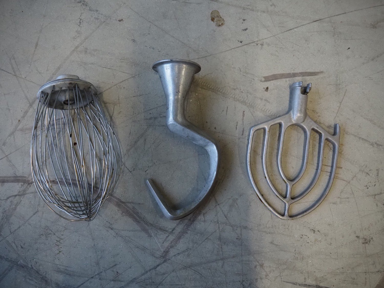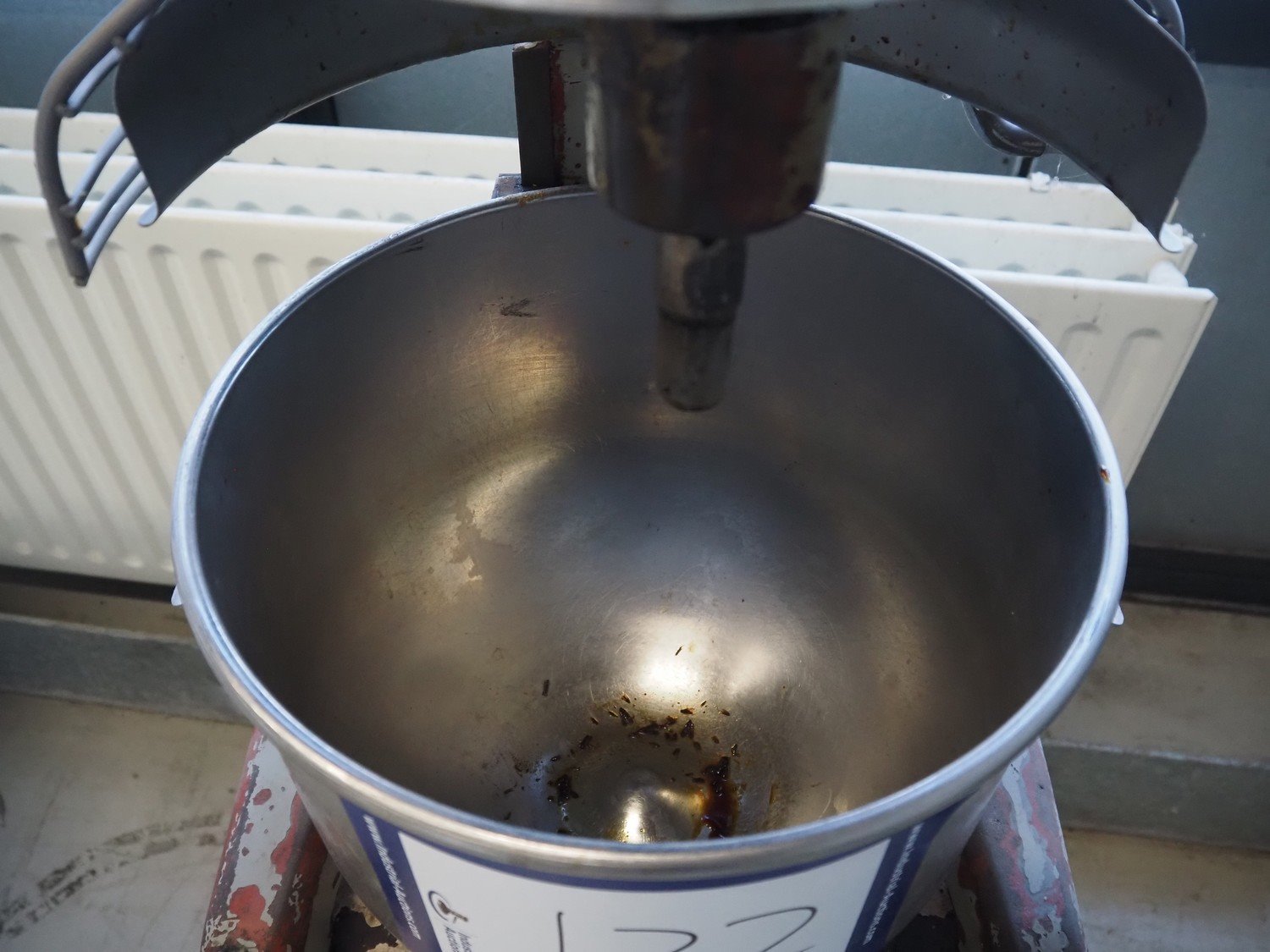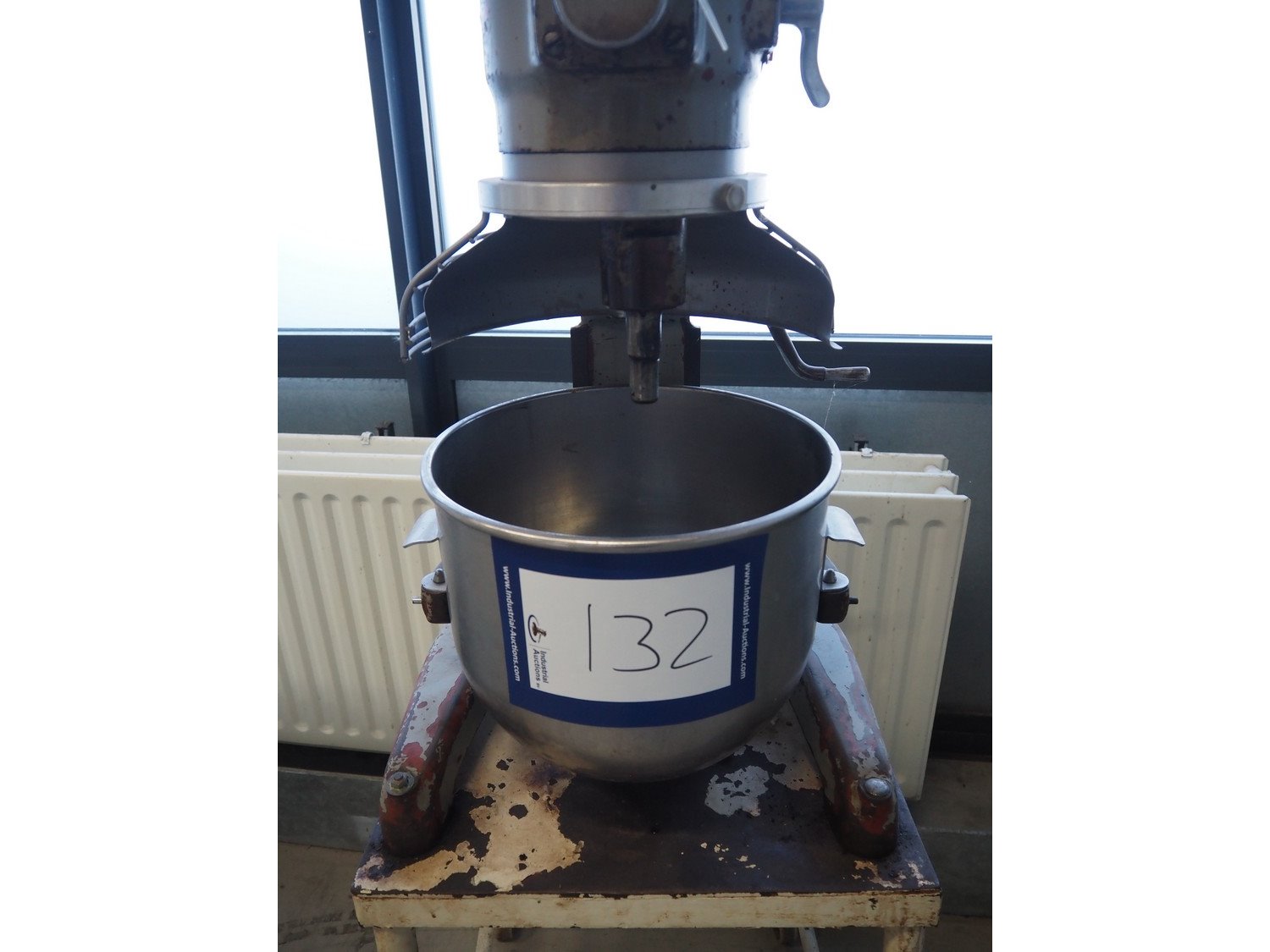 Hobart mixer on steel trolley, model: A200, number: 934682, 380 V, 3 Ph, 50 Hz, 0.98 A, 368 W, inside dimensions: Ø 320 mm x 280 mm, total dimensions: 480 mm x 520 mm x 1430 mm. Including whisk, hook and flat beater. Kavel locatie: Looyenbeemd 11, 5652 BH Eindhoven, Nederland