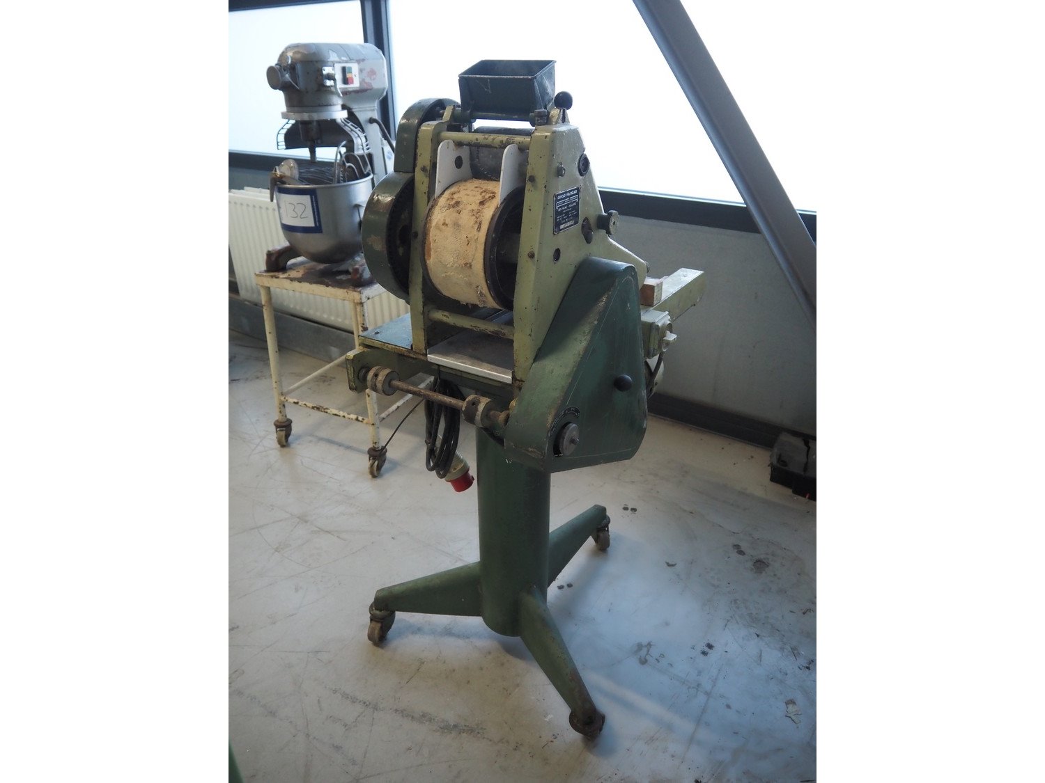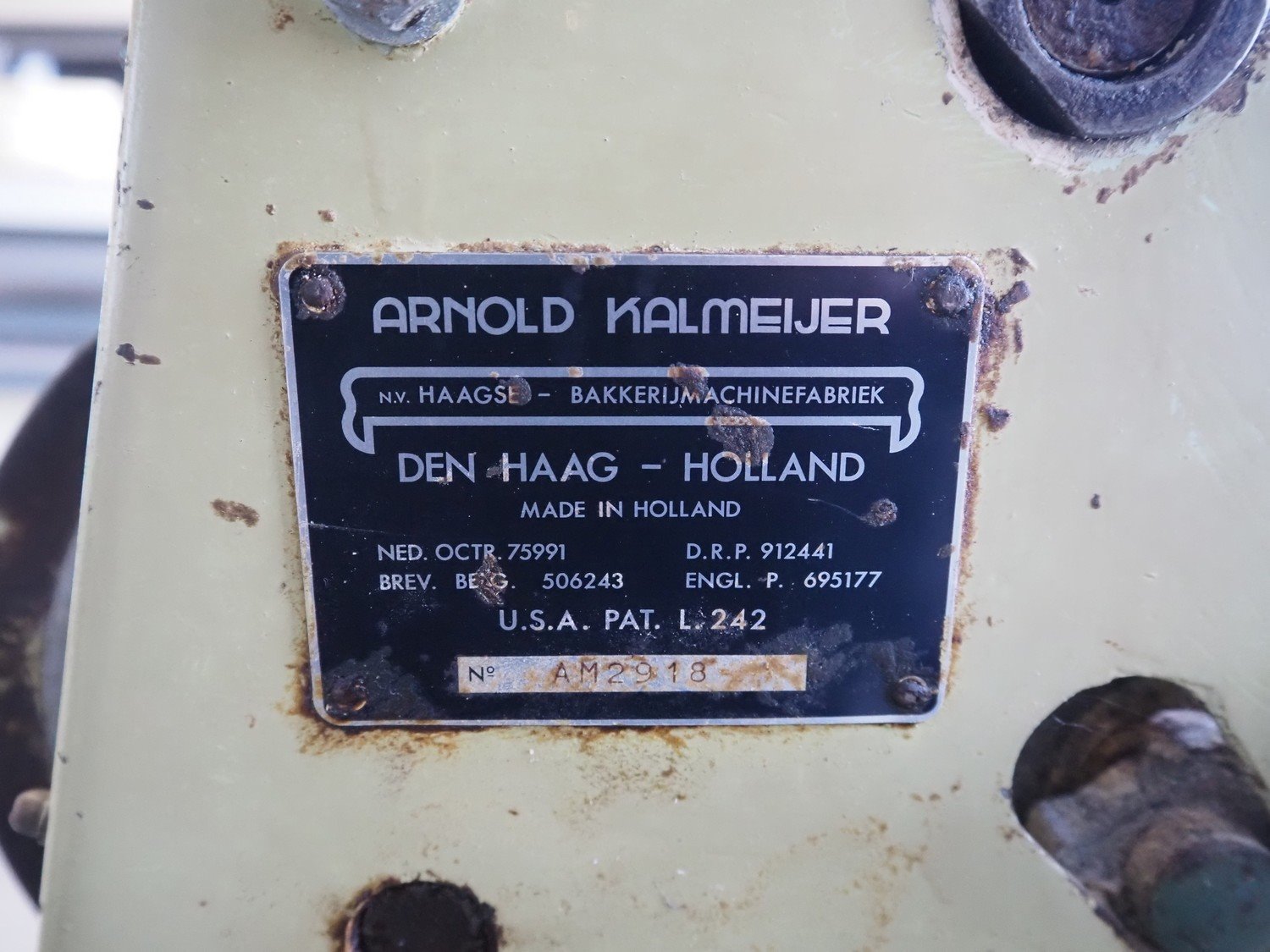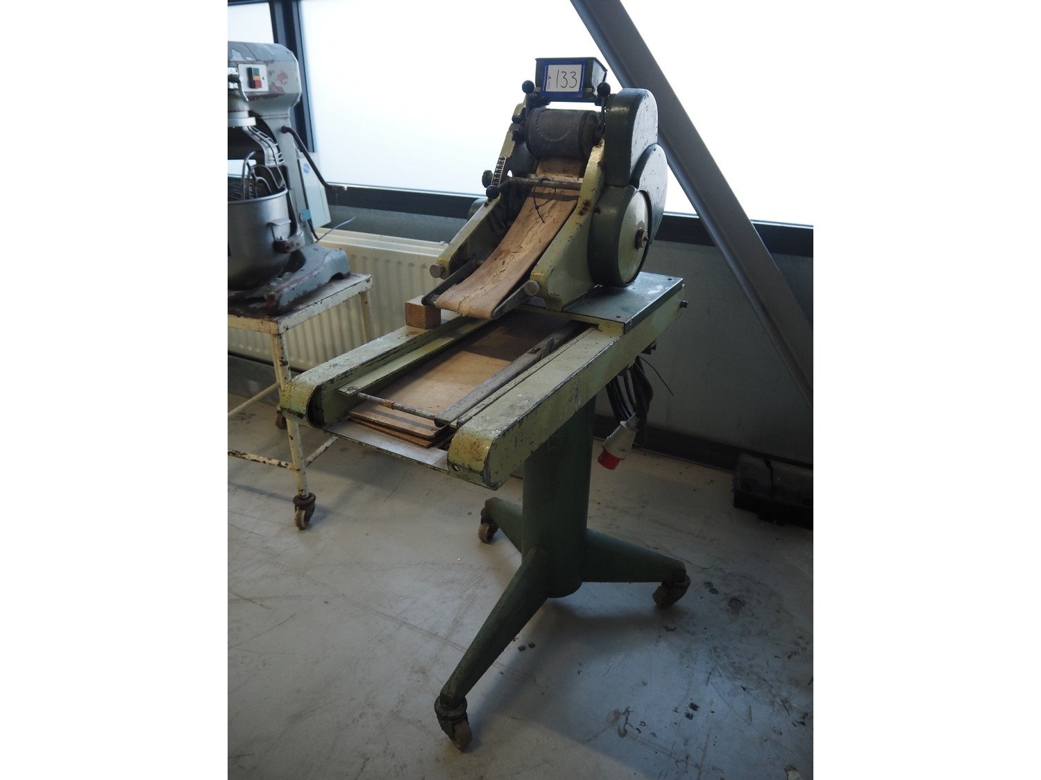 Kalmeijer mobile forming machine for spiced biscuit, number: AM2318, belt width: 125 mm, total dimensions: 970 mm x 500 mm x 1360 mm. Kavel locatie: Looyenbeemd 11, 5652 BH Eindhoven, Nederland