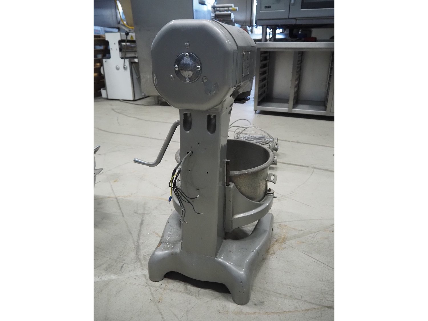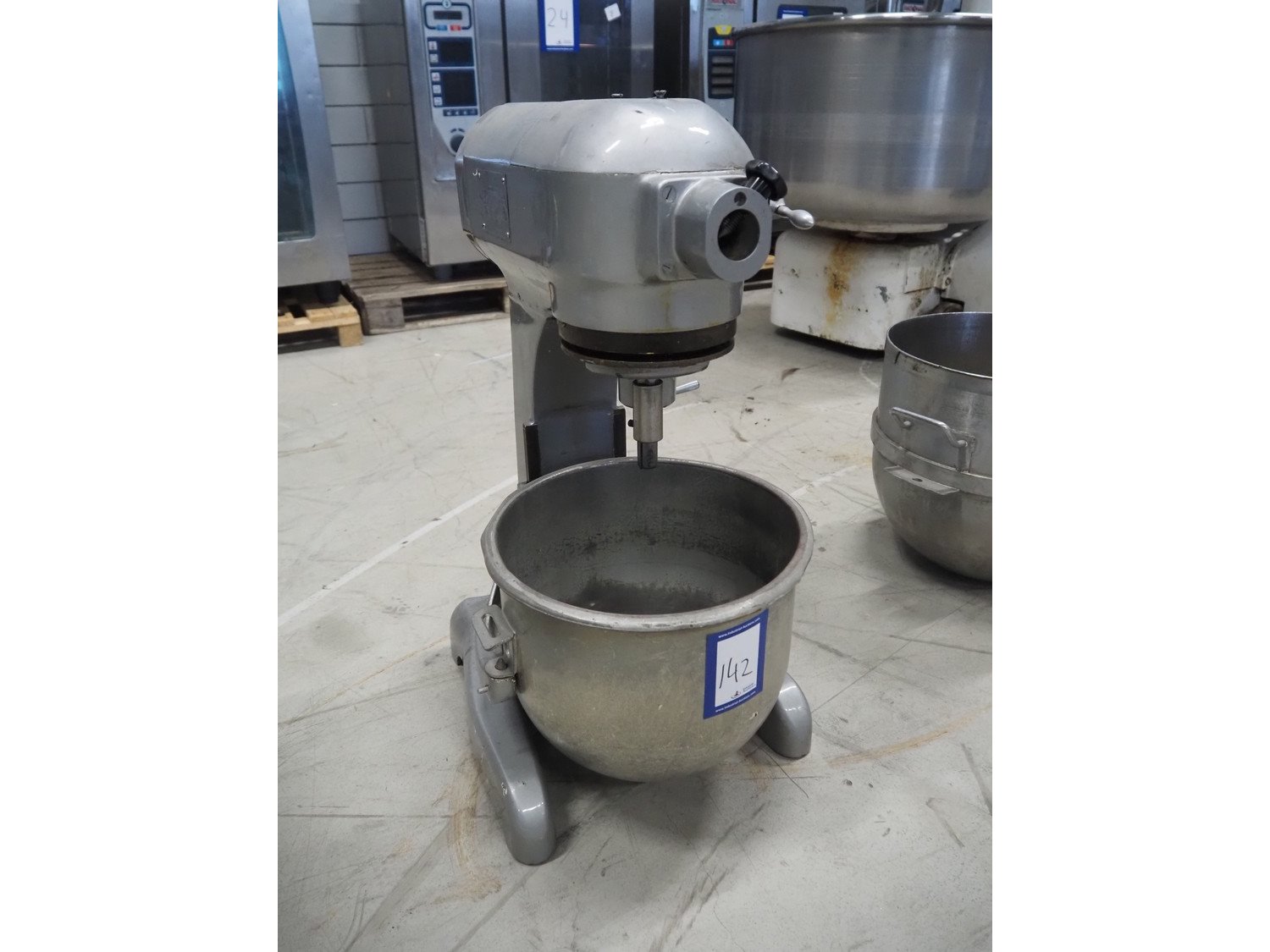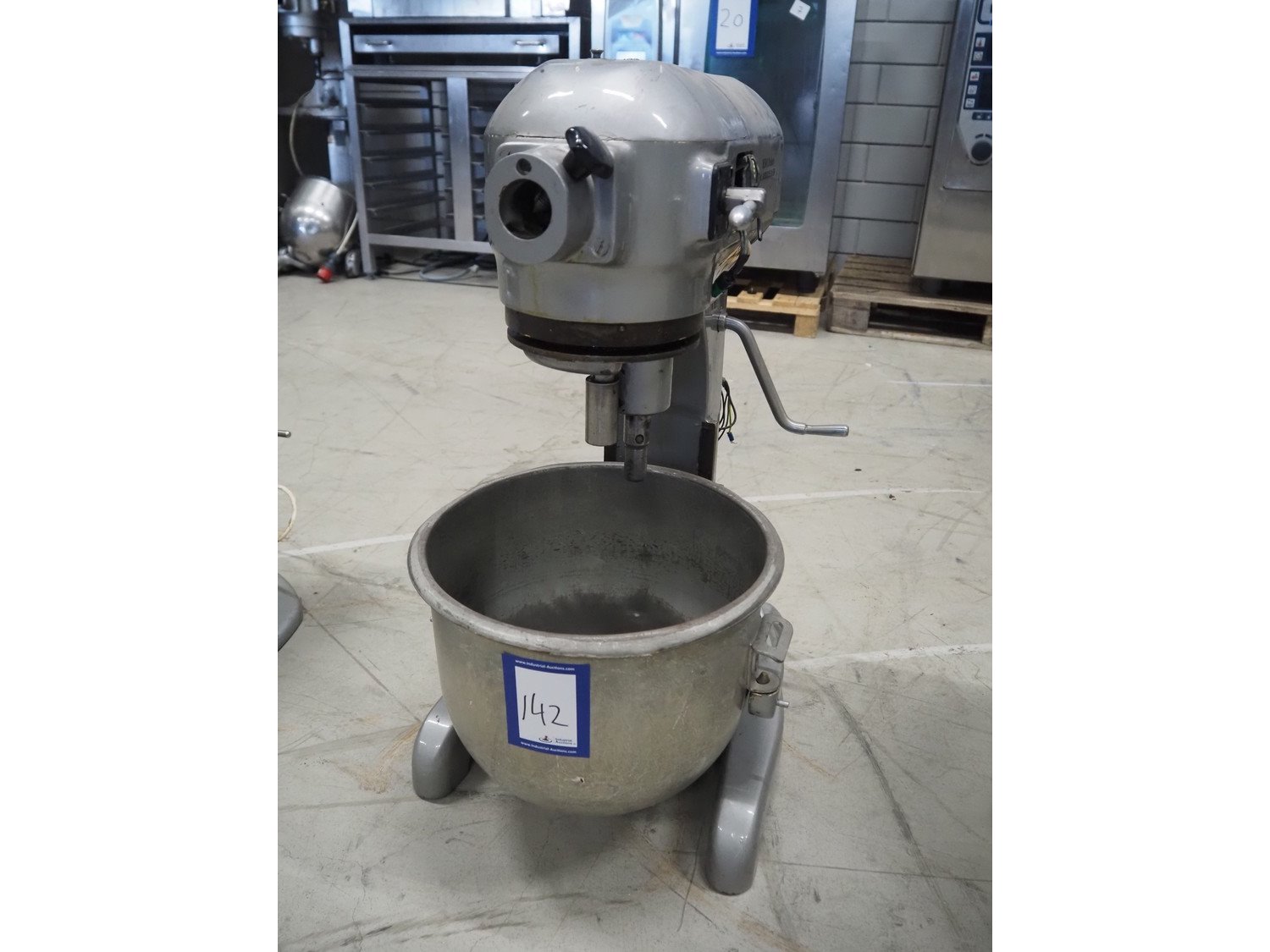 Hobart mixer, model: E200, number: 1522808, 380 V, 3 Ph, 50 Hz, 0.41 A, inside dimensions: Ø 320 mm x 310 mm, total dimensions: 390 mm x 460 mm x 750 mm. Including whisk, flat beater and hook. Kavel locatie: Looyenbeemd 11, 5652 BH Eindhoven, Nederland