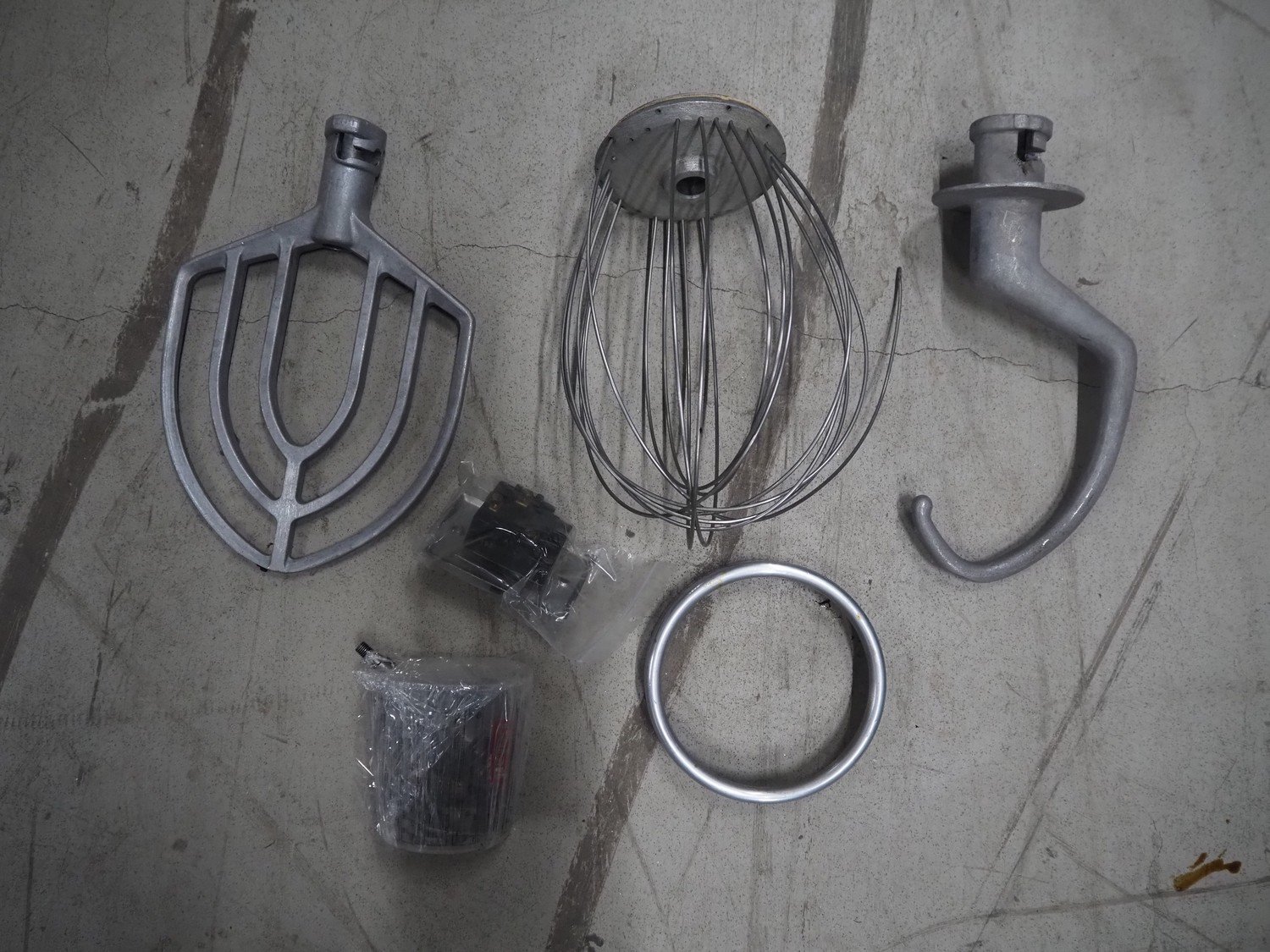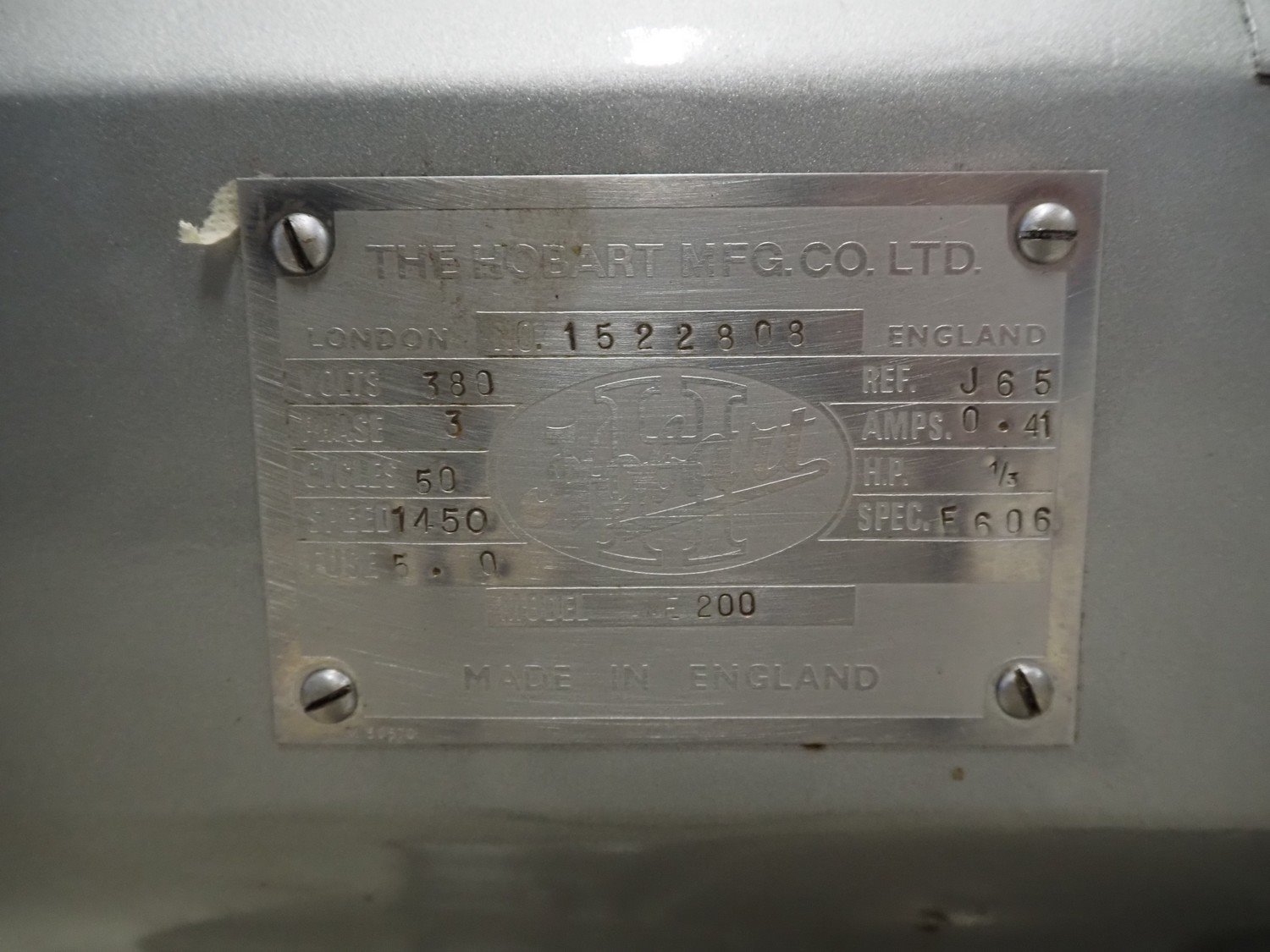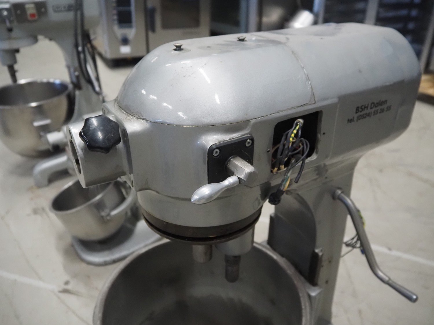 Hobart mixer, model: E200, number: 1522808, 380 V, 3 Ph, 50 Hz, 0.41 A, inside dimensions: Ø 320 mm x 310 mm, total dimensions: 390 mm x 460 mm x 750 mm. Including whisk, flat beater and hook. Kavel locatie: Looyenbeemd 11, 5652 BH Eindhoven, Nederland