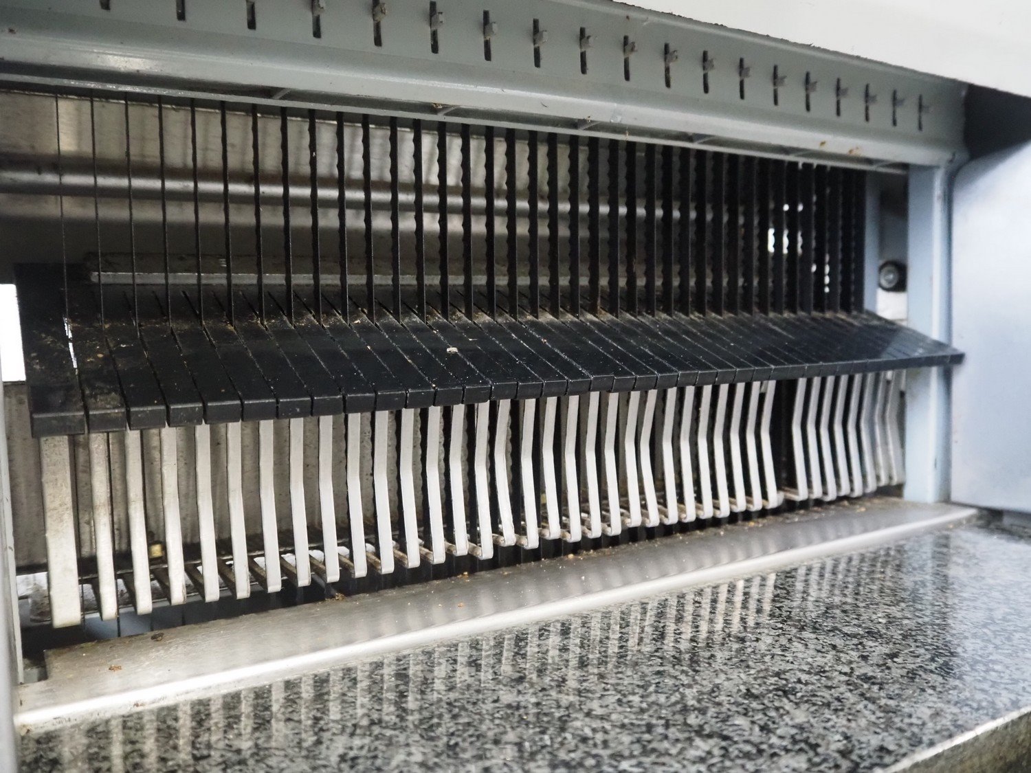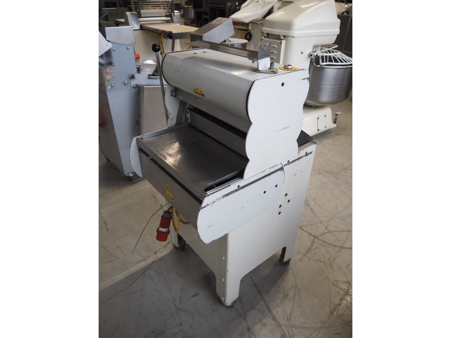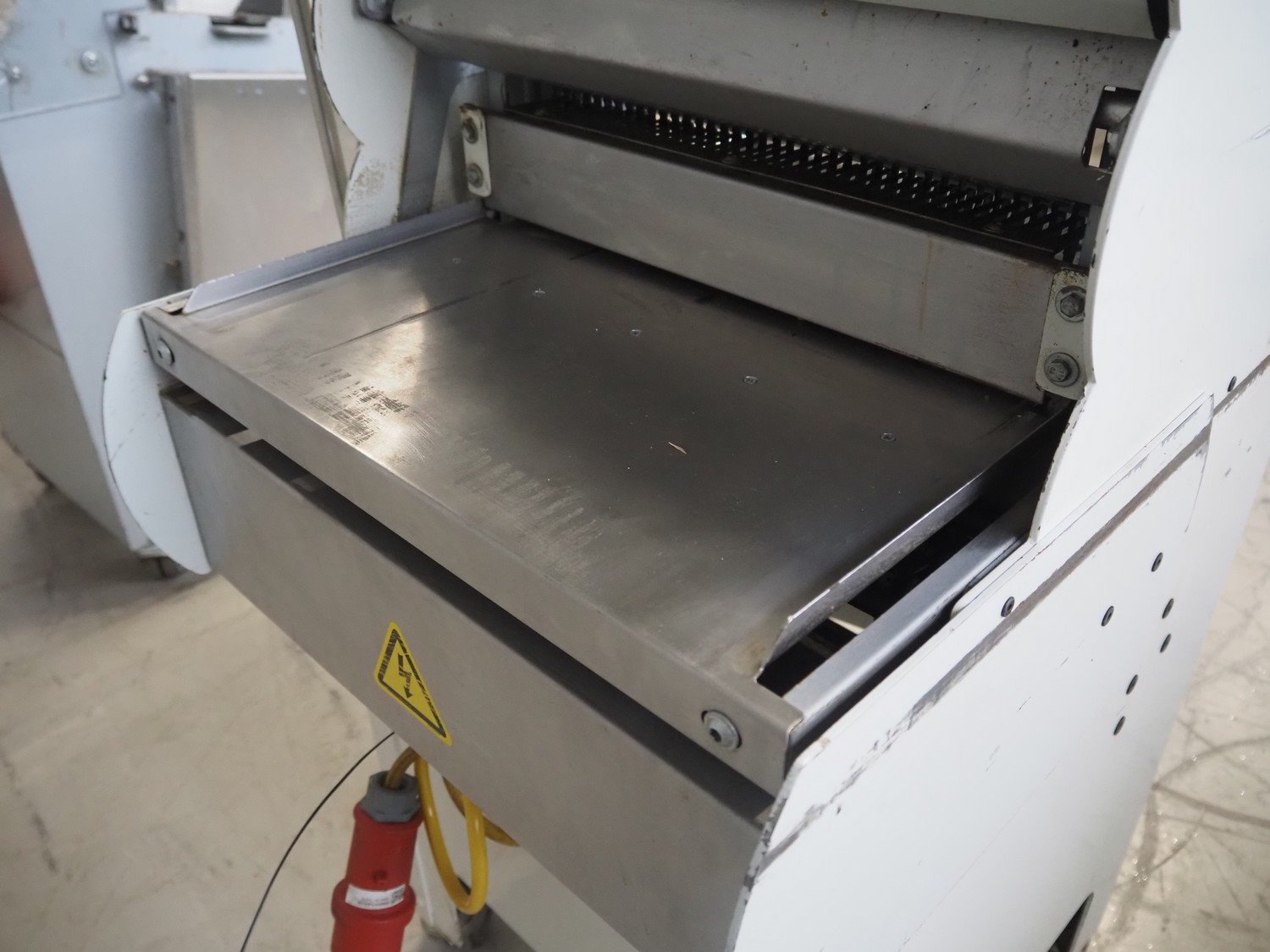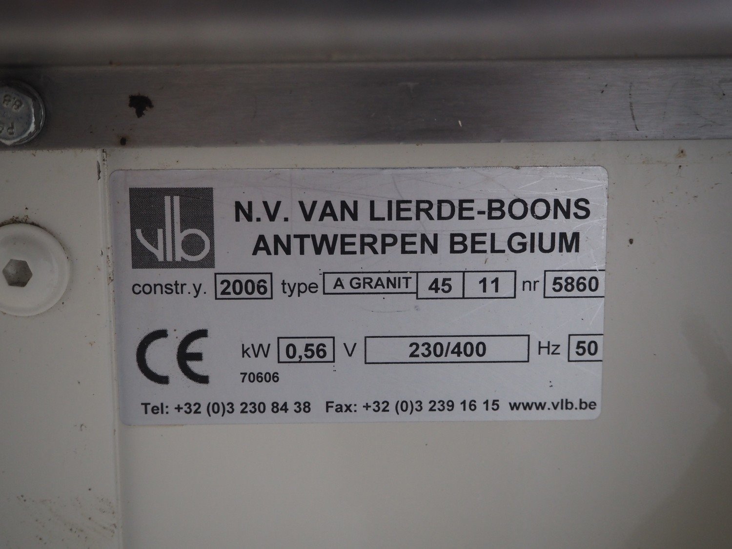 VLB mobile bread slicer, type: A Granit 45 11, number: 5860, year of construction: 2006, 230/400 V, 50 Hz, 0.56 kW, 38 knives, distance between knives: 11 mm, working width: 420 mm, total dimensions: 750 mm x 660 mm x 1270 mm. Kavel locatie: Looyenbeemd 11, 5652 BH Eindhoven, Nederland