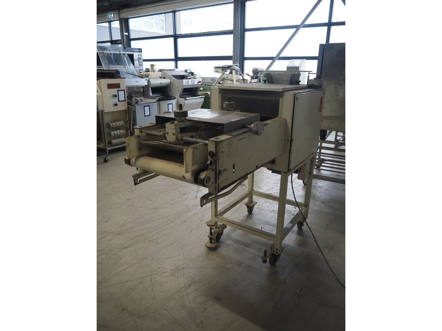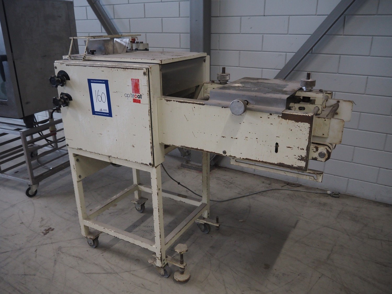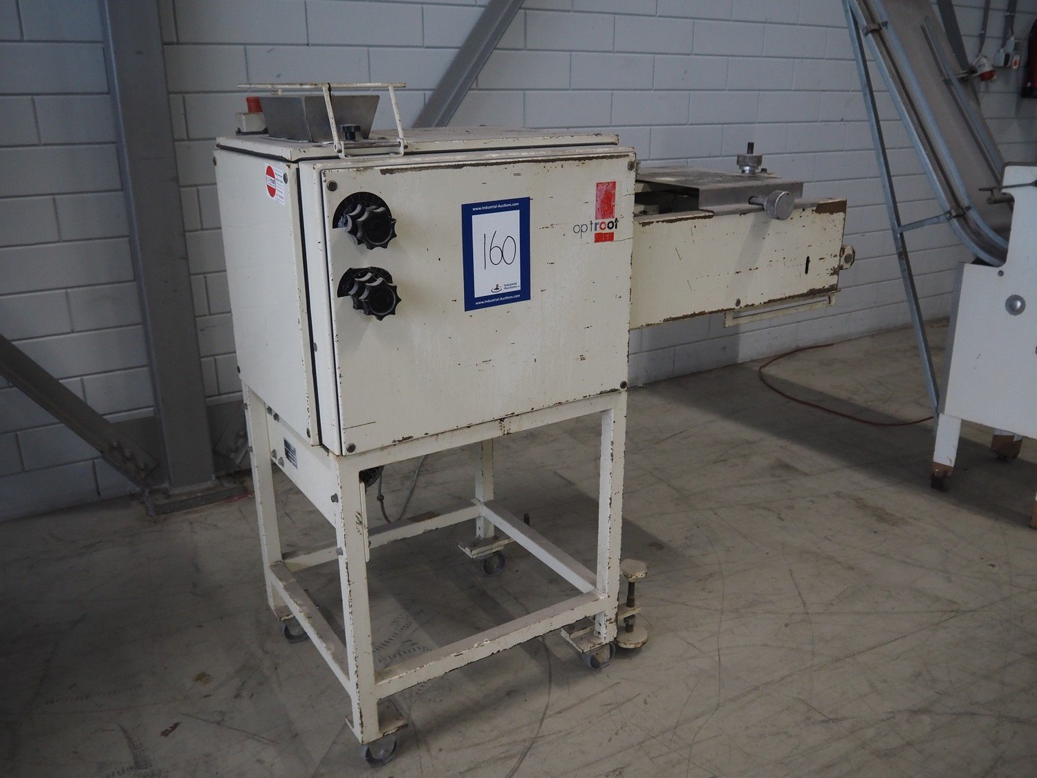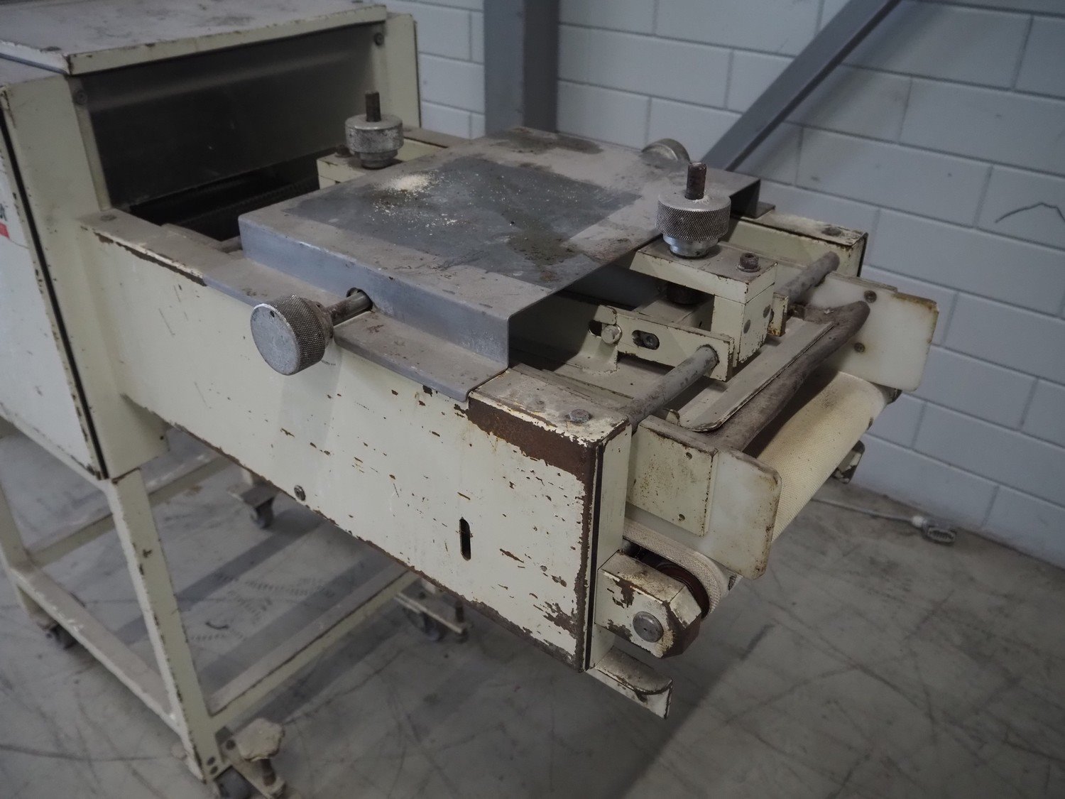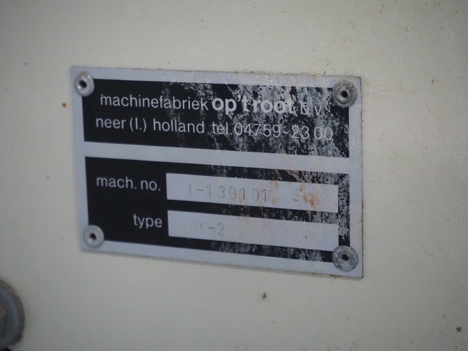 Op 't root mobile long moulder, type: MK-2, machine number: I-130101, plastic belt, belt width: 400 mm, working width: 340 mm, total dimensions: 1540 mm x 670 mm x 1380 mm. Kavel locatie: Looyenbeemd 11, 5652 BH Eindhoven, Nederland