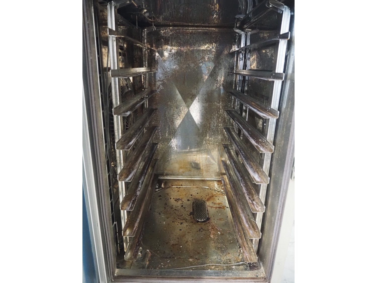 Rational mobile combi steamer, serial number: E11MH12012287703, 8 floors, floor dimensions: (8x) 600 mm x 400 mm, total dimensions: 850 mm x 850 mm x 1700 mm. Kavel locatie: Looyenbeemd 11, 5652 BH Eindhoven, Nederland