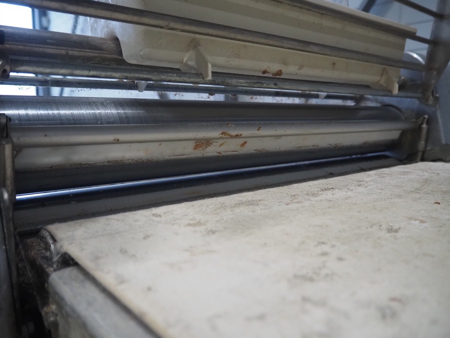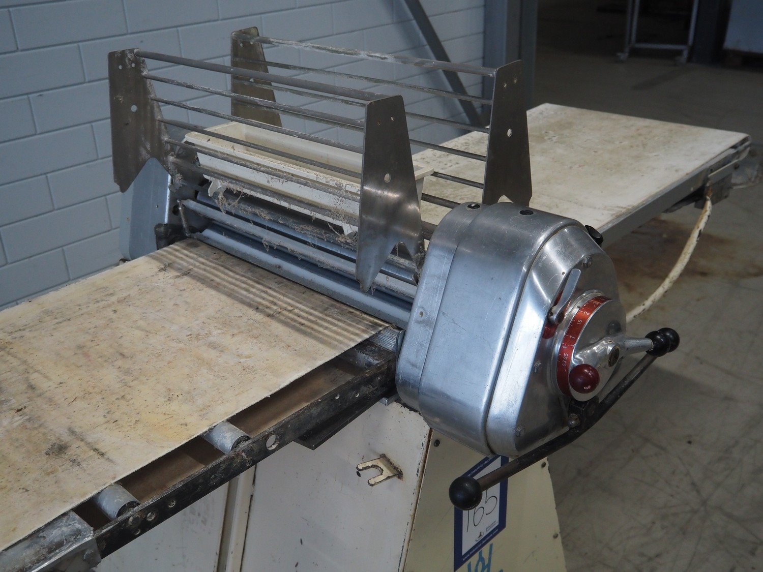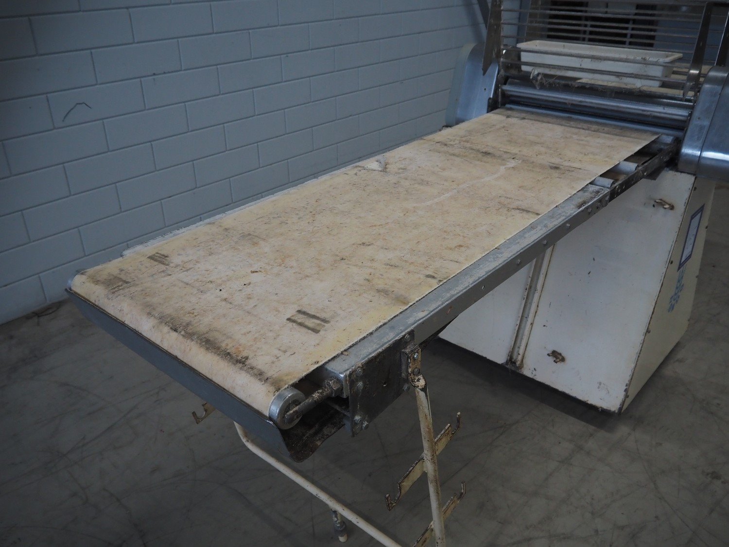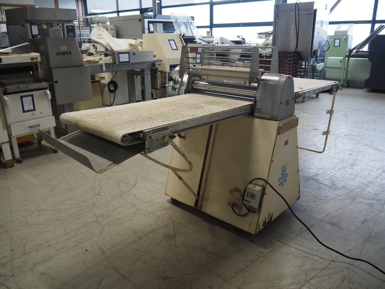 Seewer Rondo mobile dough sheeter, type: AUT 604, model: S, serie: 70184, machine number: 2782, cloth belt, belt width: 550 mm, total dimensions: 3000 mm x 1150 mm x 1290 mm. Kavel locatie: Looyenbeemd 11, 5652 BH Eindhoven, Nederland