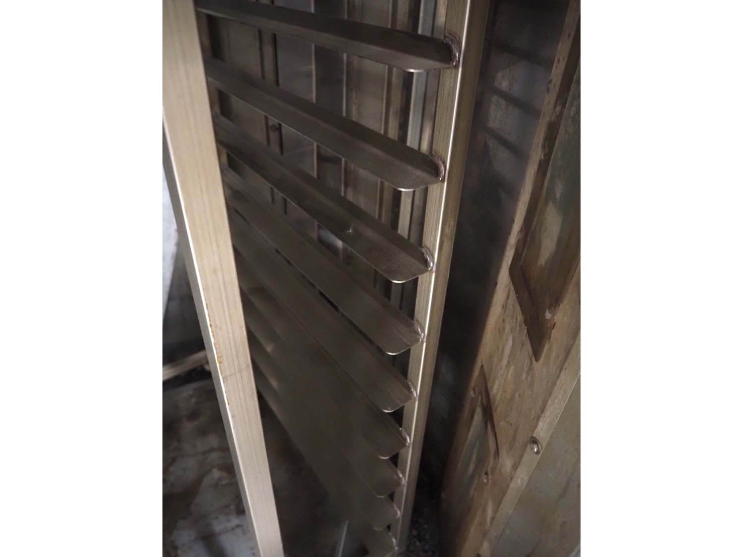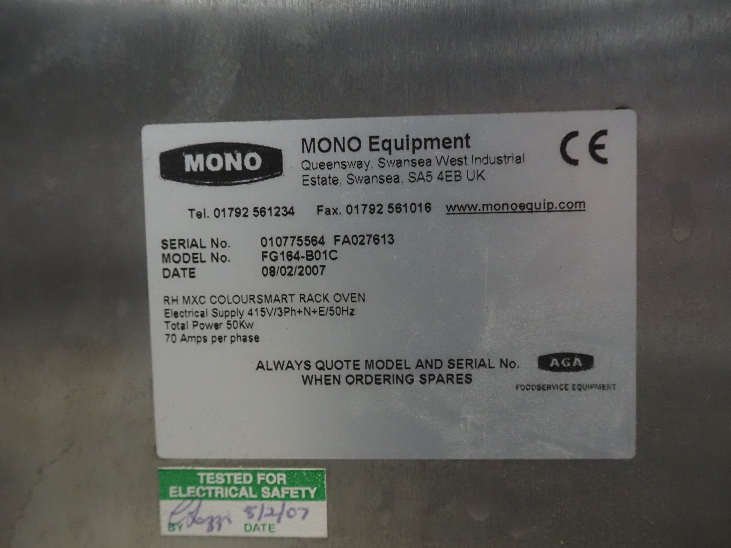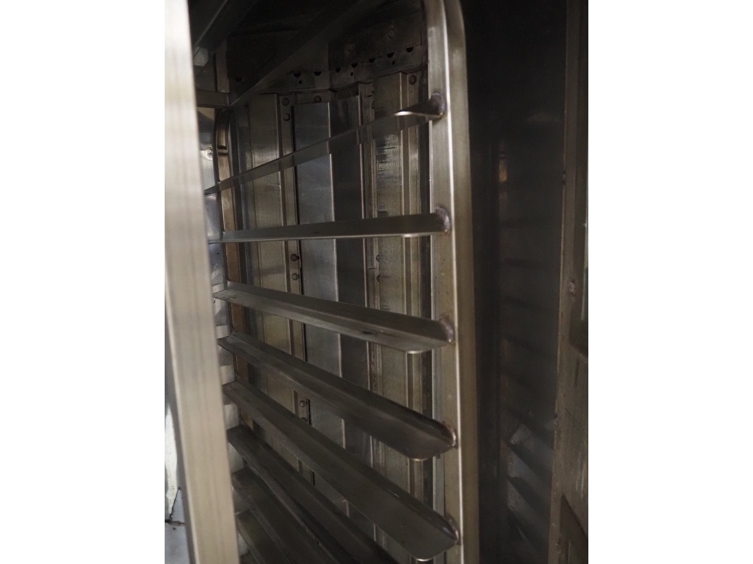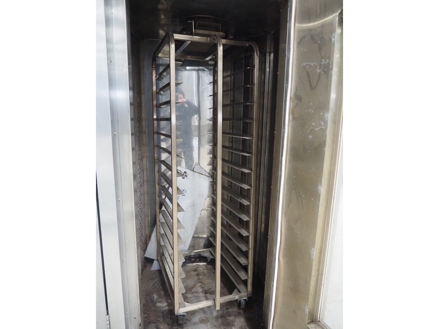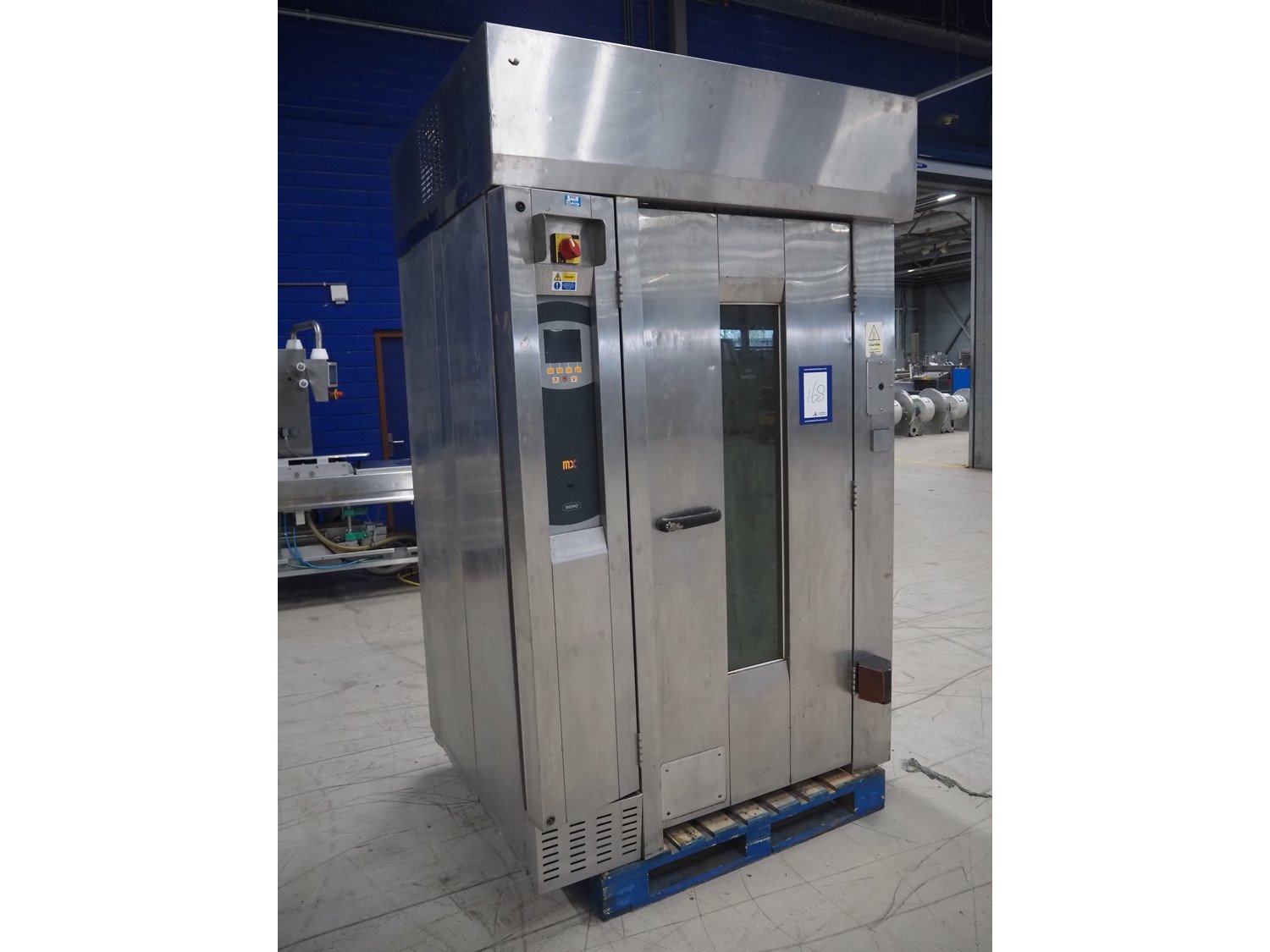 Mono Equipment rotation oven for 1 trolley, model: FG-164-B01C, serial number: 010775564 FA027613, year of construction: 08/02/2007, 415 V, 3 Ph, 50 Hz, 70 A, 50 kW, s/s trolley, 15 floors, floor dimensions: 700 mm x 470 mm, trolley dimensions: 750 mm x 530 mm x 1900 mm, total dimensions 1500 mm x 1350 mm x 2750 mm. Kavel locatie: Looyenbeemd 11, 5652 BH Eindhoven, Nederland