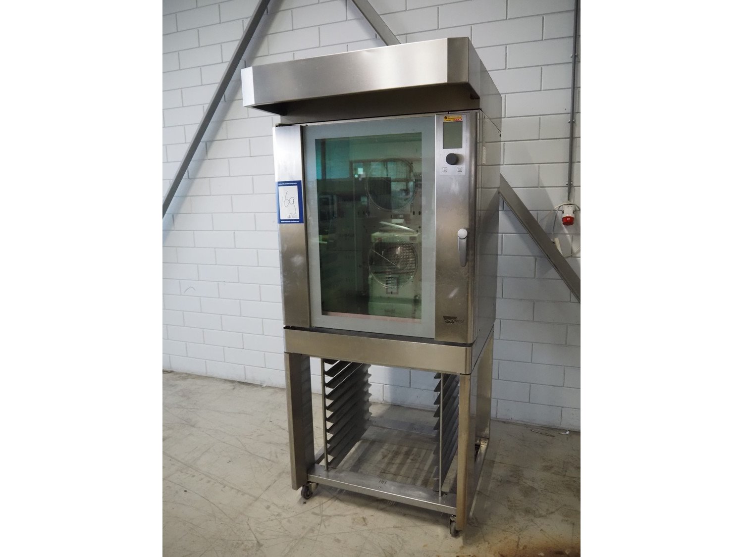 Wiesheu GmbH mobile oven, model: B8-E2, serial number: 10143070, year of construction: 03/2010, 400 V, 3 Ph, 50 Hz, 26.6 A, 18.4 kW, 10 floors, floor dimensions: (10x) 340 mm x 600 mm, total dimensions: 950 mm x 1100 mm x 2170 mm. Kavel locatie: Looyenbeemd 11, 5652 BH Eindhoven, Nederland