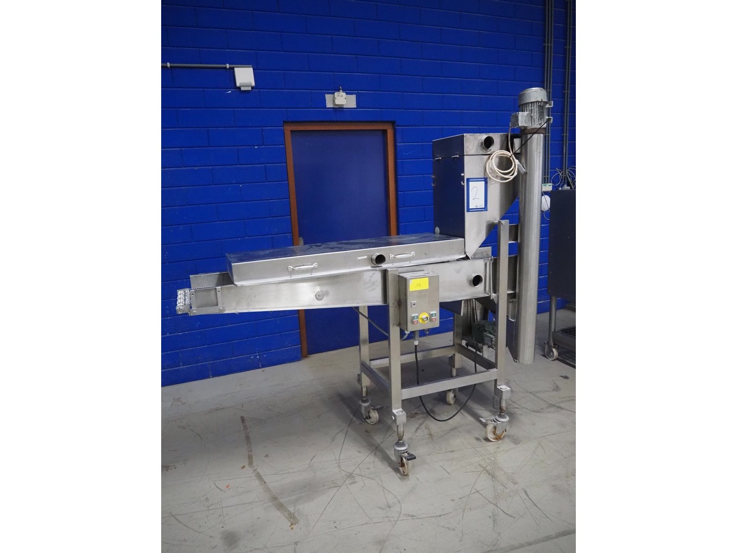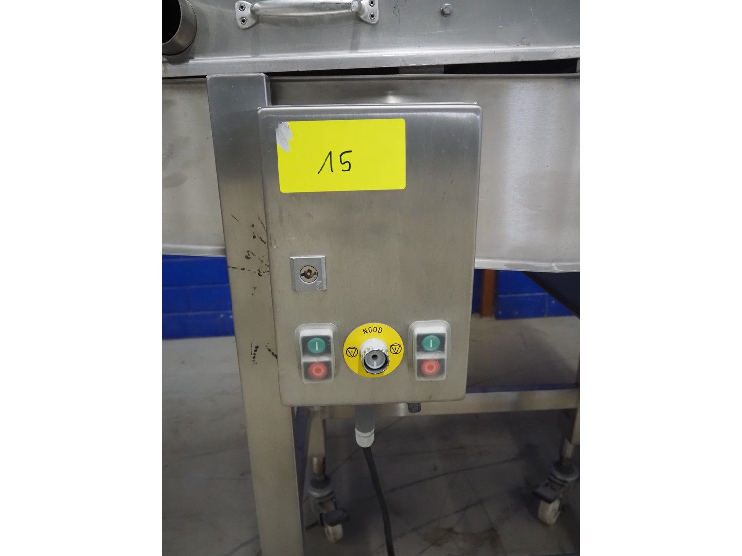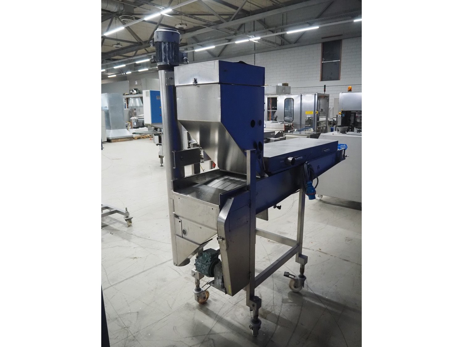 Koppens mobile battering machine, type: EPR 400, machine number: PR 400/438, 380 V, 3 Ph, 50 Hz, 4 A, 0.9 kW, weight: 185 kg, s/s mesh belt, belt width: 400 mm, total dimensions: 2100 mm x 700 mm x 1900 mm. Kavel locatie: Looyenbeemd 11, 5652 BH Eindhoven, Nederland