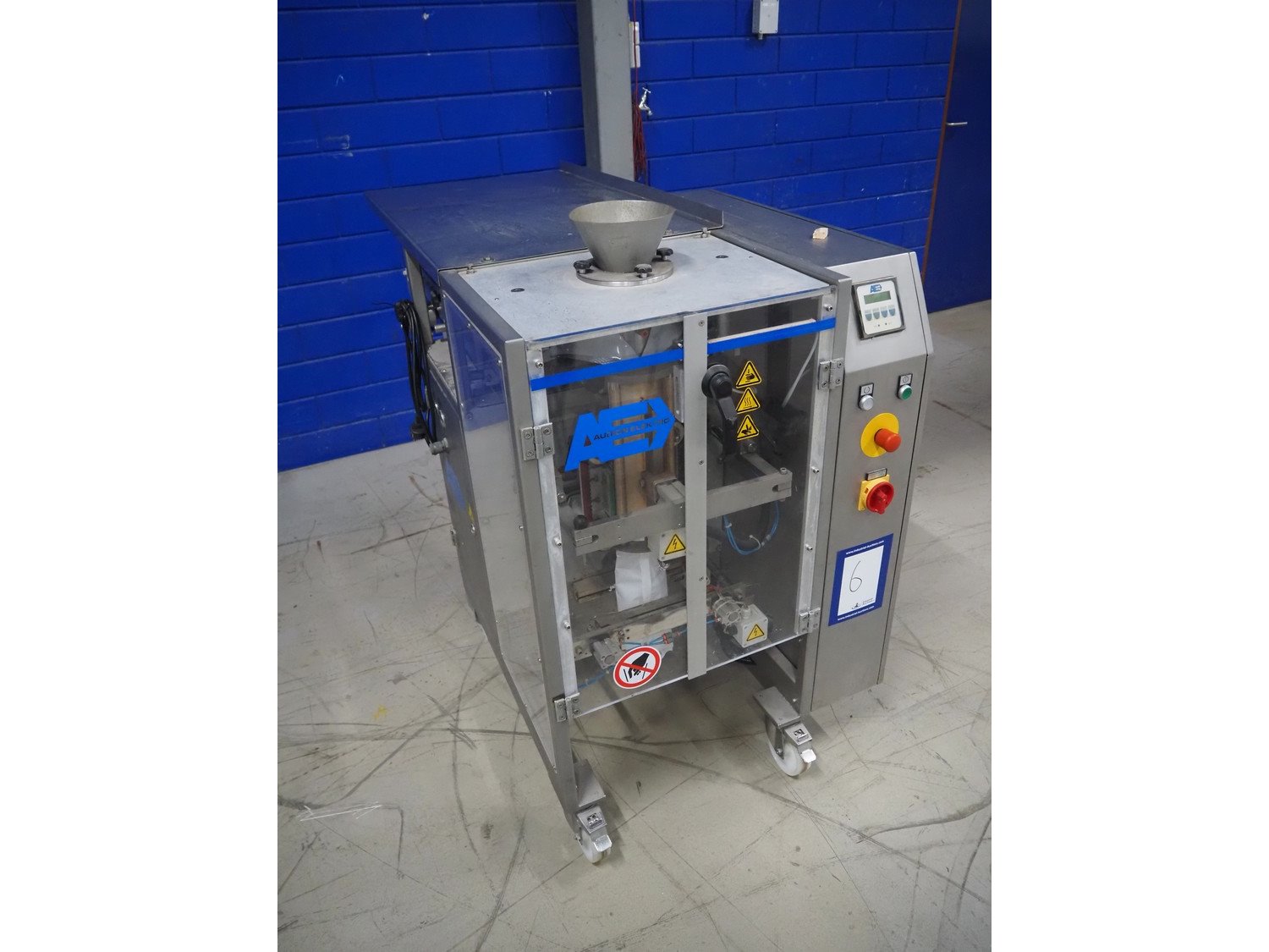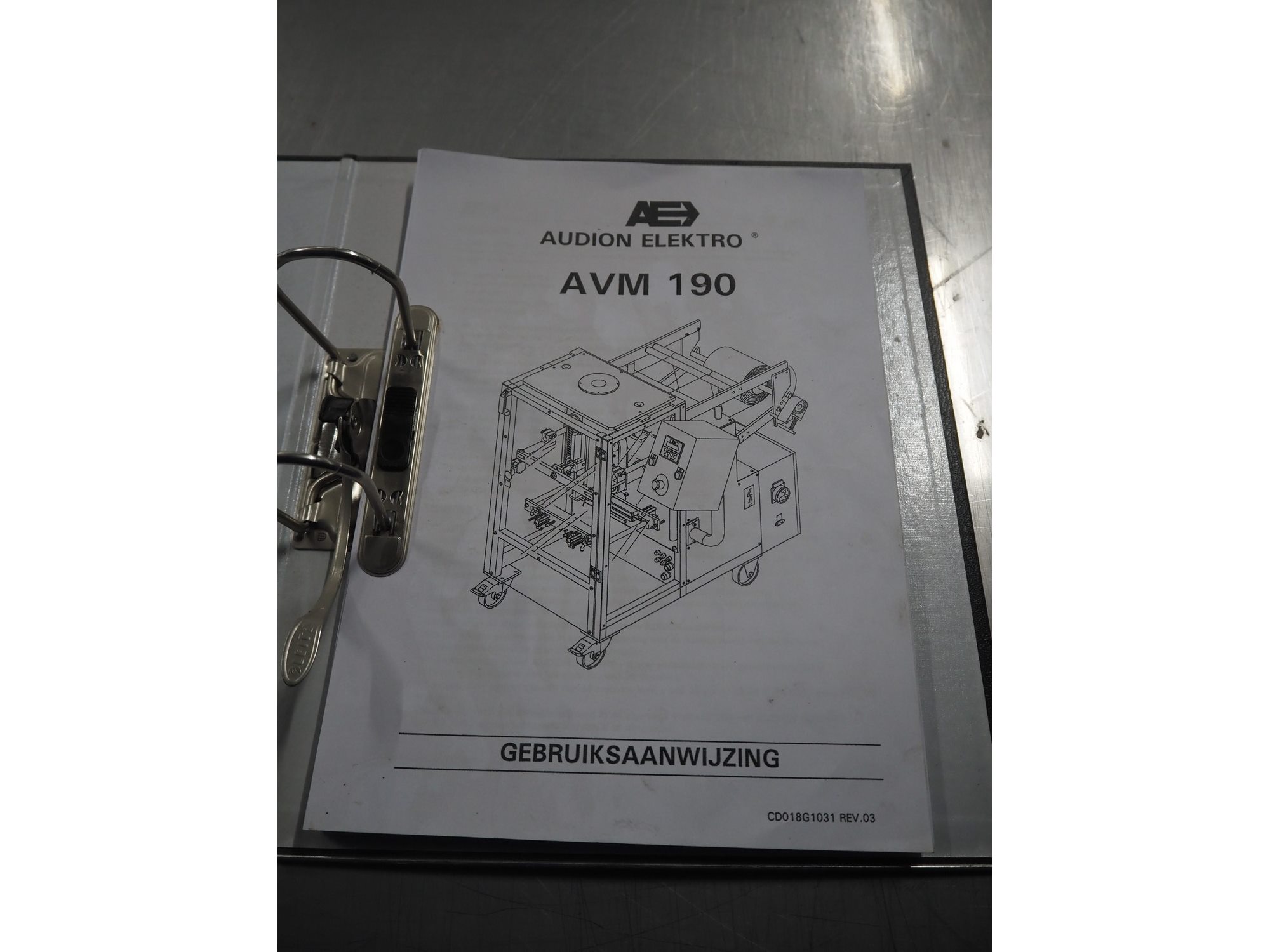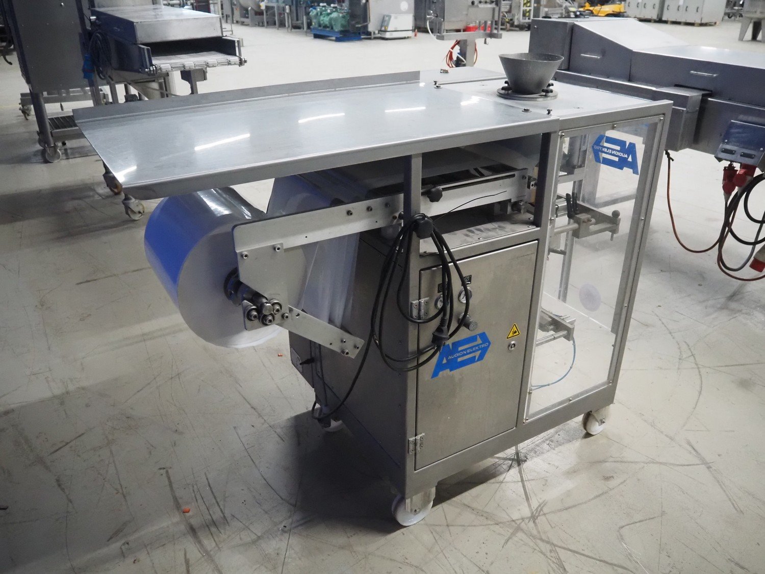 Audion Elektro vertical bag form, fill and sealing machine, type: AVMS 190-2, serial number: 179/002-02, year of construction: 2004, 230 V, 1 Ph, 50/60 Hz, 2300 W, 6 bar, film width: 310 mm, vertical seal length: 315 mm, horizontal seal length: 260 mm, total dimensions: 1450 mm x 850 mm x 1300 mm. Kavel locatie: Looyenbeemd 11, 5652 BH Eindhoven, Nederland