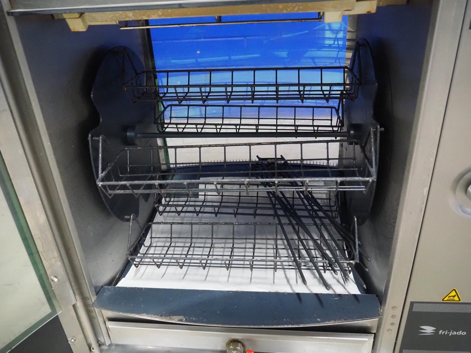 Fri-Jado BV rotisserie grill, model: STG5-P, number: 100057084, 400/230 V, 50/60 Hz, 9 A, 6100 W, dimensions: 840 mm x 700 mm x 900 mm. Kavel locatie: Looyenbeemd 11, 5652 BH Eindhoven, Nederland