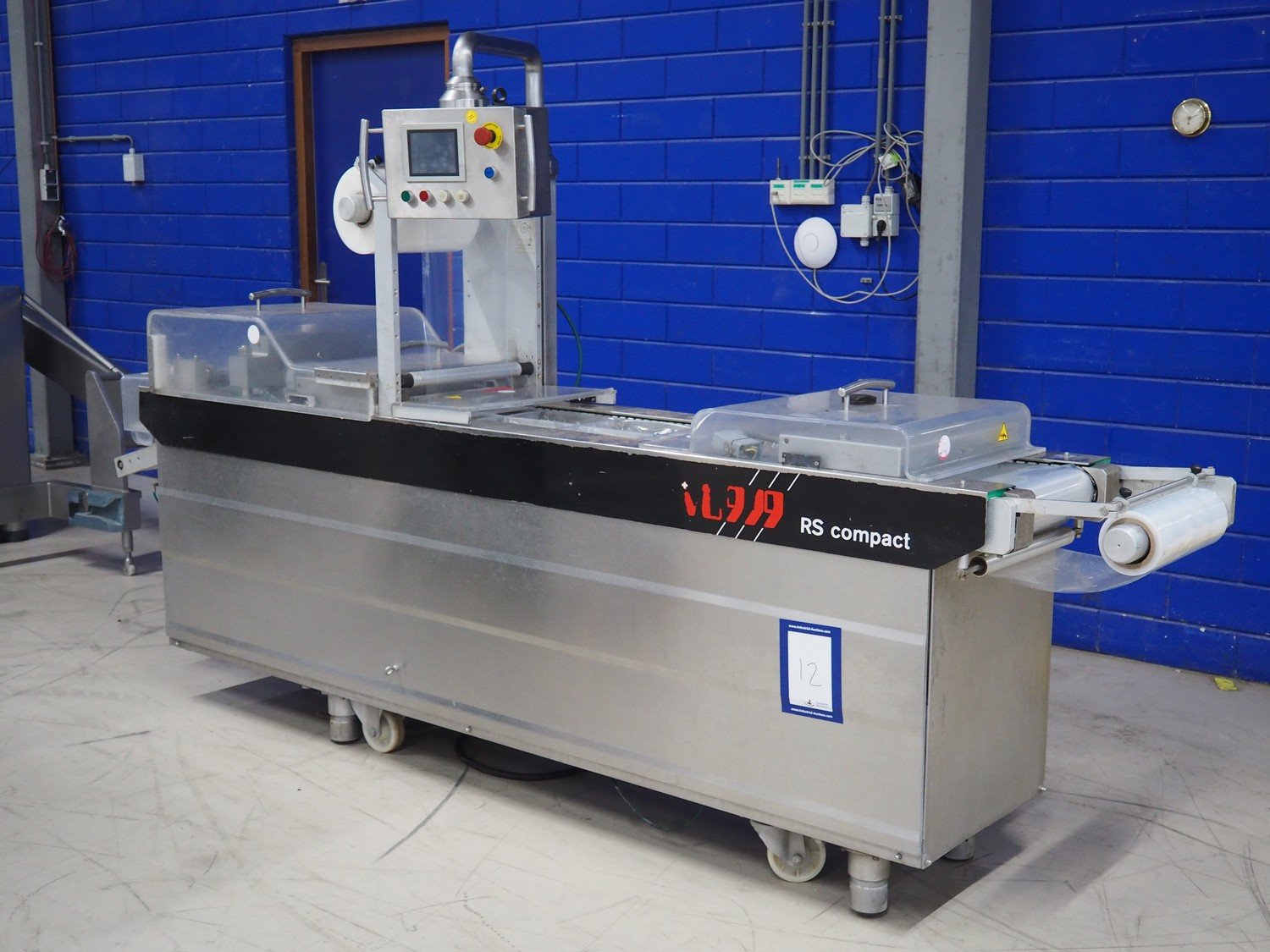 Inauen Maschinen AG thermoformer, type: VC 999/RS compact, machine number: 4405013, 400 V, 3 Ph, 50 Hz, 7 kW, 6/8 bar, film width: 320 mm, dye: (2x) 135 mm x 235 mm, plastic outfeed belt, belt width: 260 mm, total dimensions: 3280 mm x 740 mm x 1830 mm. Including box with parts. Without vacuum pump. Kavel locatie: Looyenbeemd 11, 5652 BH Eindhoven, Nederland