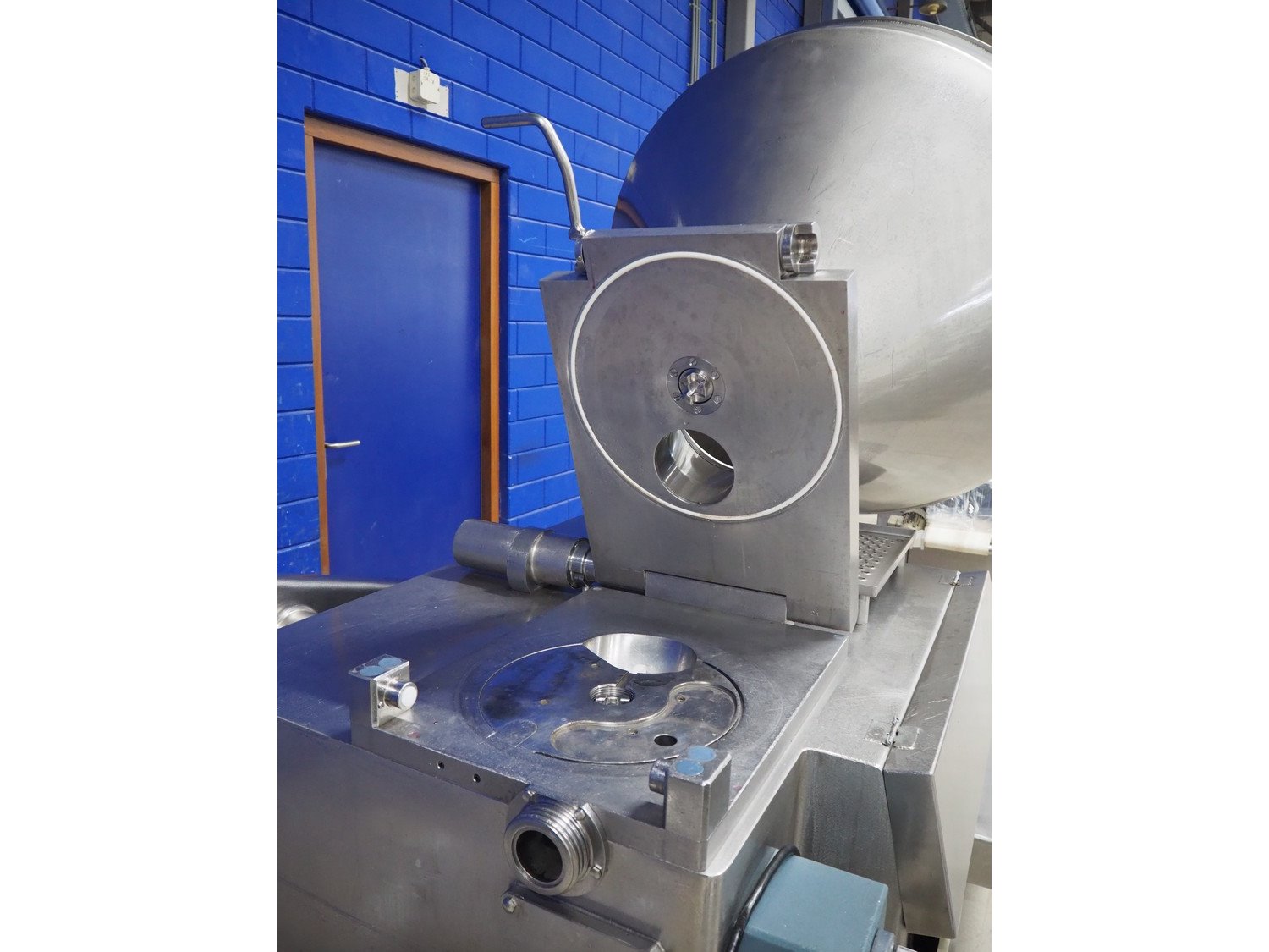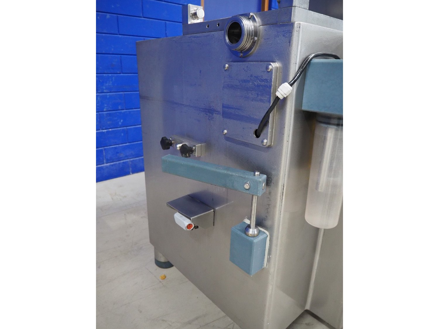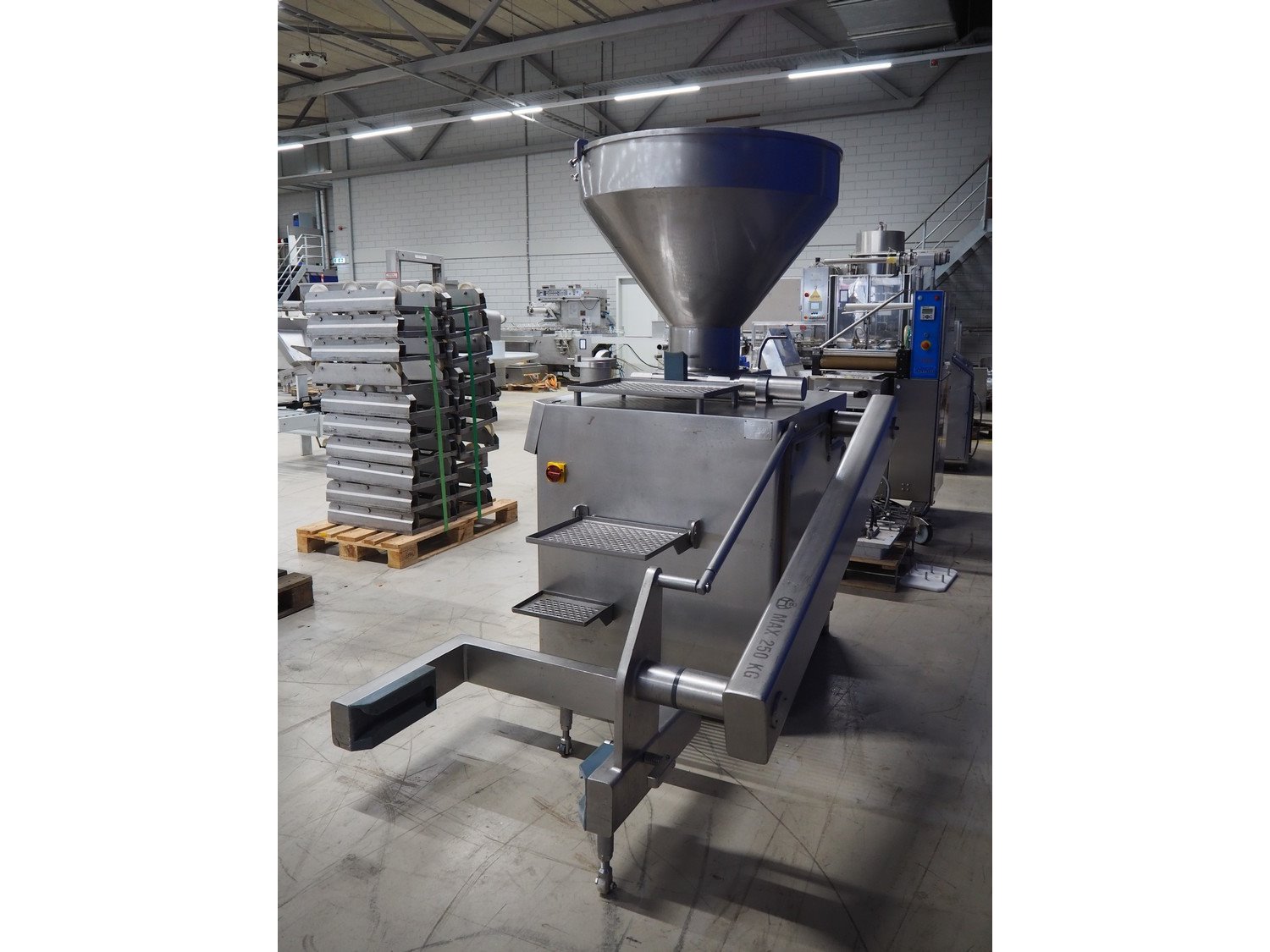 Risco S.p.a. vacuum filling machine with lifter for 200 liter meat bins, model: RS 5001, serial number: C100005, year of construction: 2000, 575 V, 3 Ph, 60 Hz, 12.5 kW, weight: 1210 kg, dimensions: 2100 mm x 1200 mm x 2070 mm. Without vacuum pump. Kavel locatie: Looyenbeemd 11, 5652 BH Eindhoven, Nederland