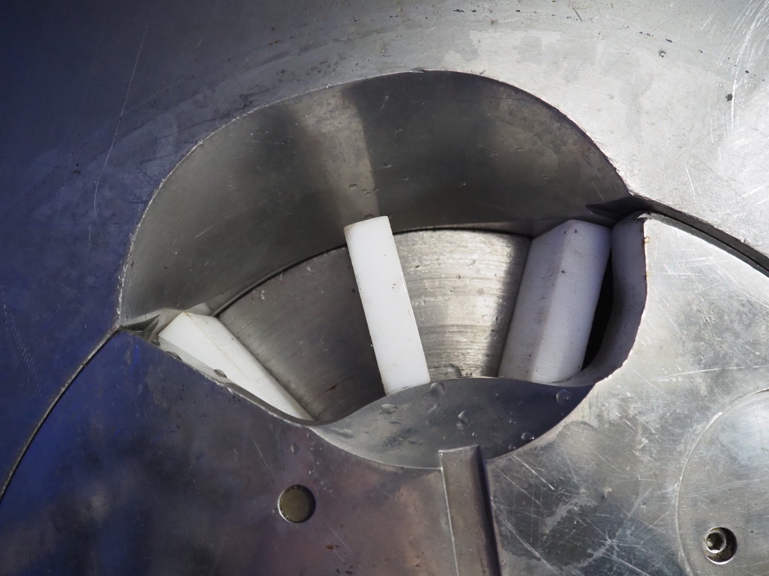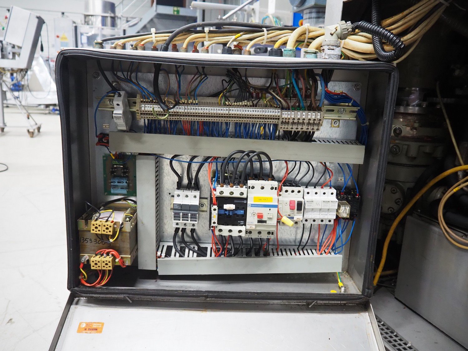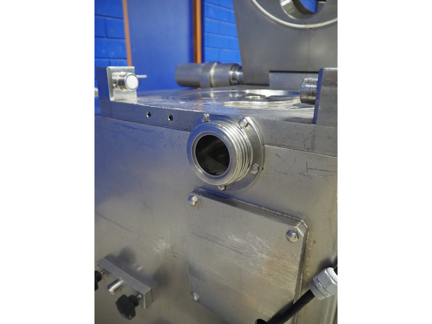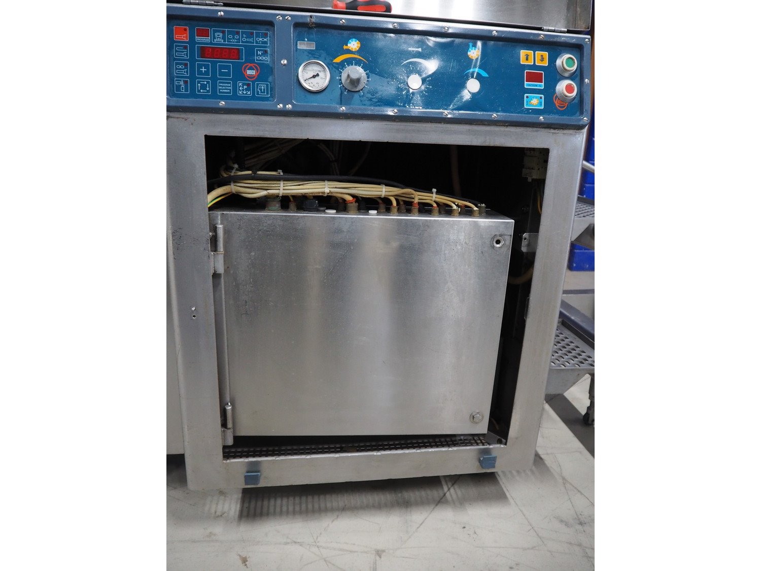 Risco S.p.a. vacuum filling machine with lifter for 200 liter meat bins, model: RS 5001, serial number: C100005, year of construction: 2000, 575 V, 3 Ph, 60 Hz, 12.5 kW, weight: 1210 kg, dimensions: 2100 mm x 1200 mm x 2070 mm. Without vacuum pump. Kavel locatie: Looyenbeemd 11, 5652 BH Eindhoven, Nederland