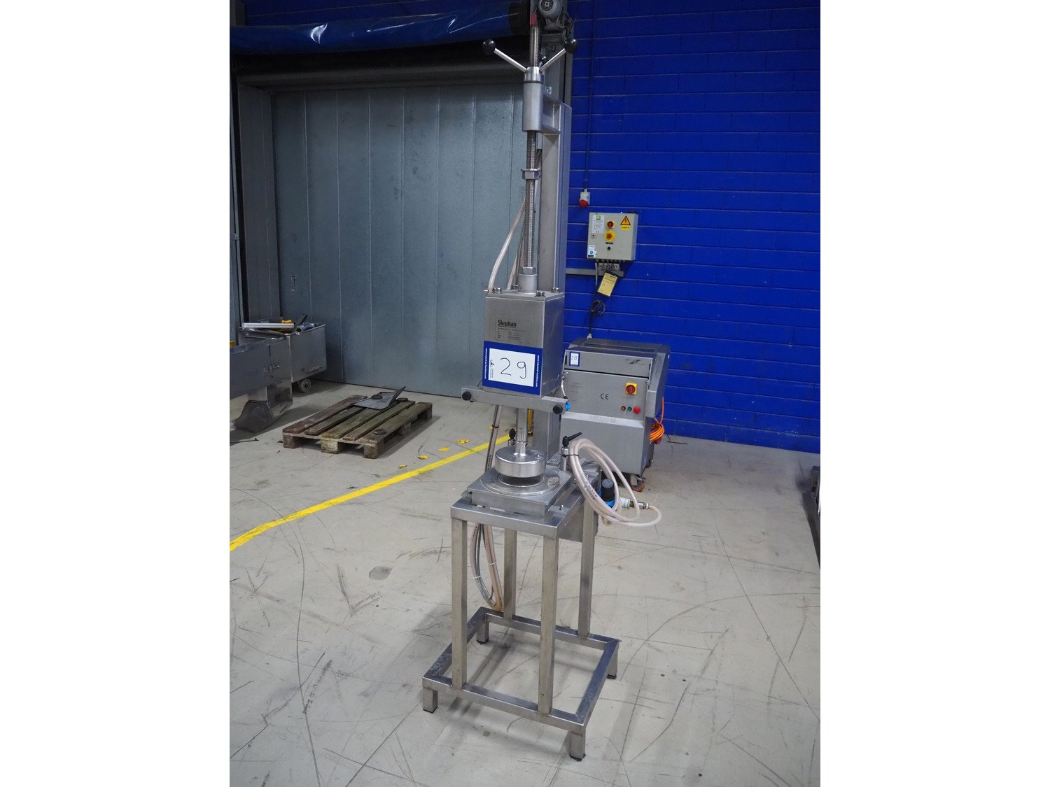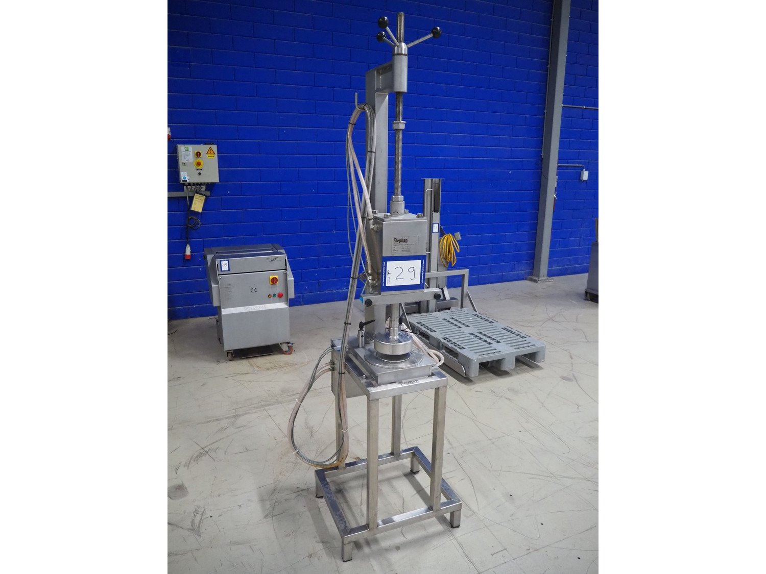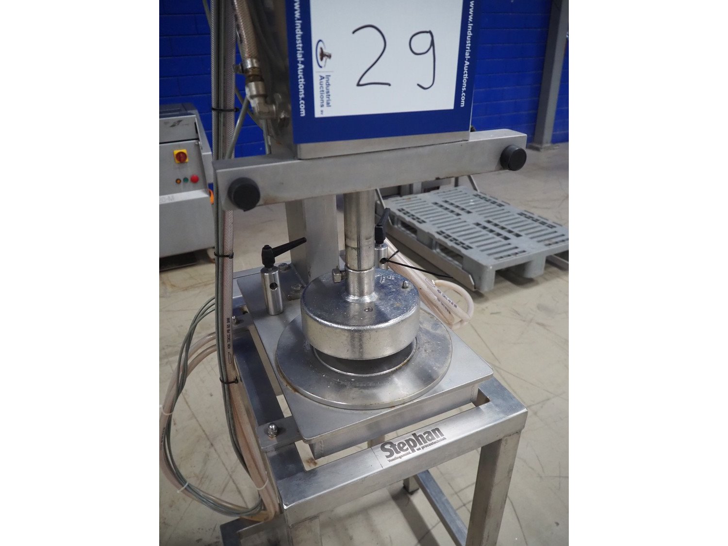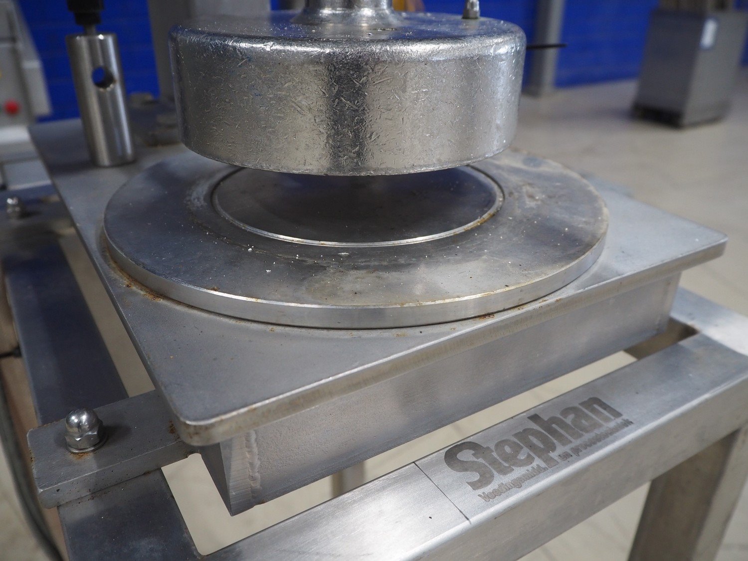Stephan can opener, working diameter: 160 mm, total dimensions: 800 mm x 600 mm x 2250 mm. Including 3 extra openers, diameter: 155 mm, 148 mm and 69 mm. Kavel locatie: Looyenbeemd 11, 5652 BH Eindhoven, Nederland