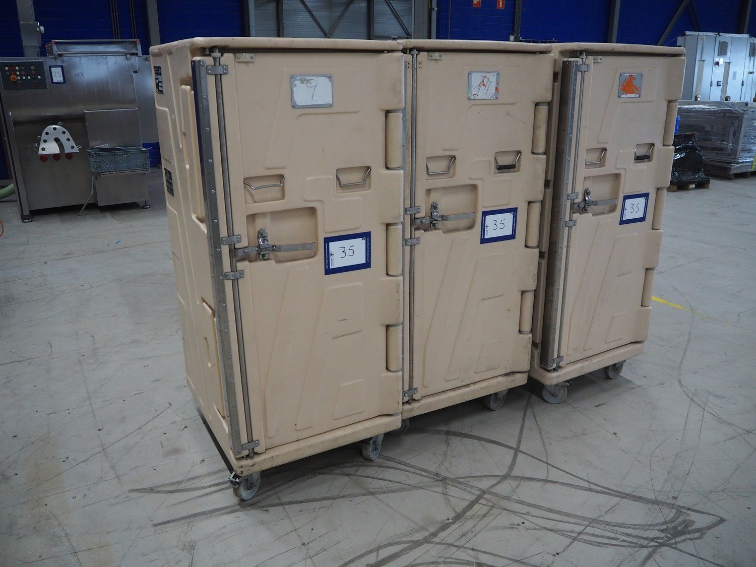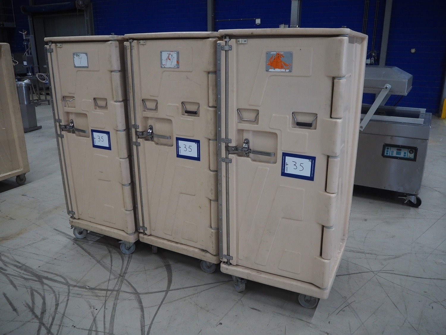 Monetti S.p.A. 3 mobile thermoboxes, model: Thermax 550, year of construction: 07/98, inside dimensions: (3x) 710 mm x 565 mm x 1300 mm, total dimensions: (3x) 850 mm x 750 mm x 1750 mm. Kavel locatie: Looyenbeemd 11, 5652 BH Eindhoven, Nederland
