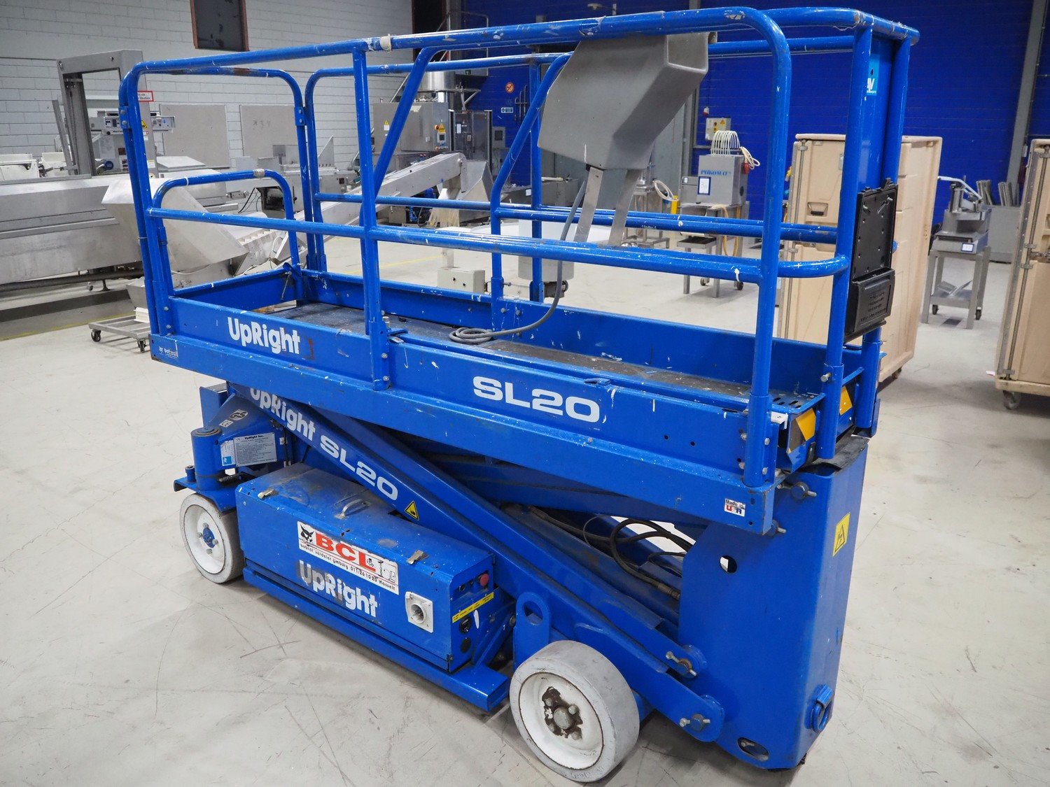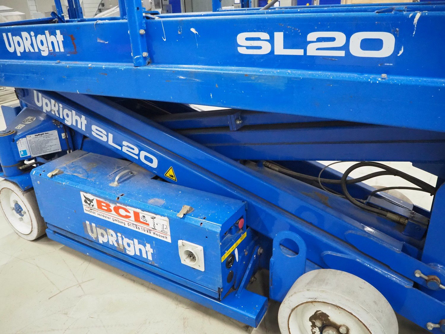 UpRight Inc. mobile scissor lift, type: SL20, model: 101000-011, serial number: 8899, maximum capacity: 351 kg, maximum platform height: 6110 mm, dimensions: 2700 mm x 850 mm x 2000 mm. Kavel locatie: Looyenbeemd 11, 5652 BH Eindhoven, Nederland