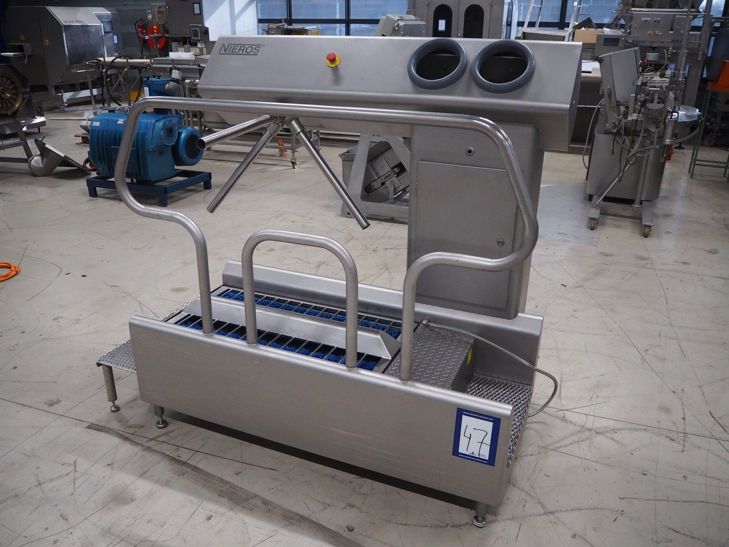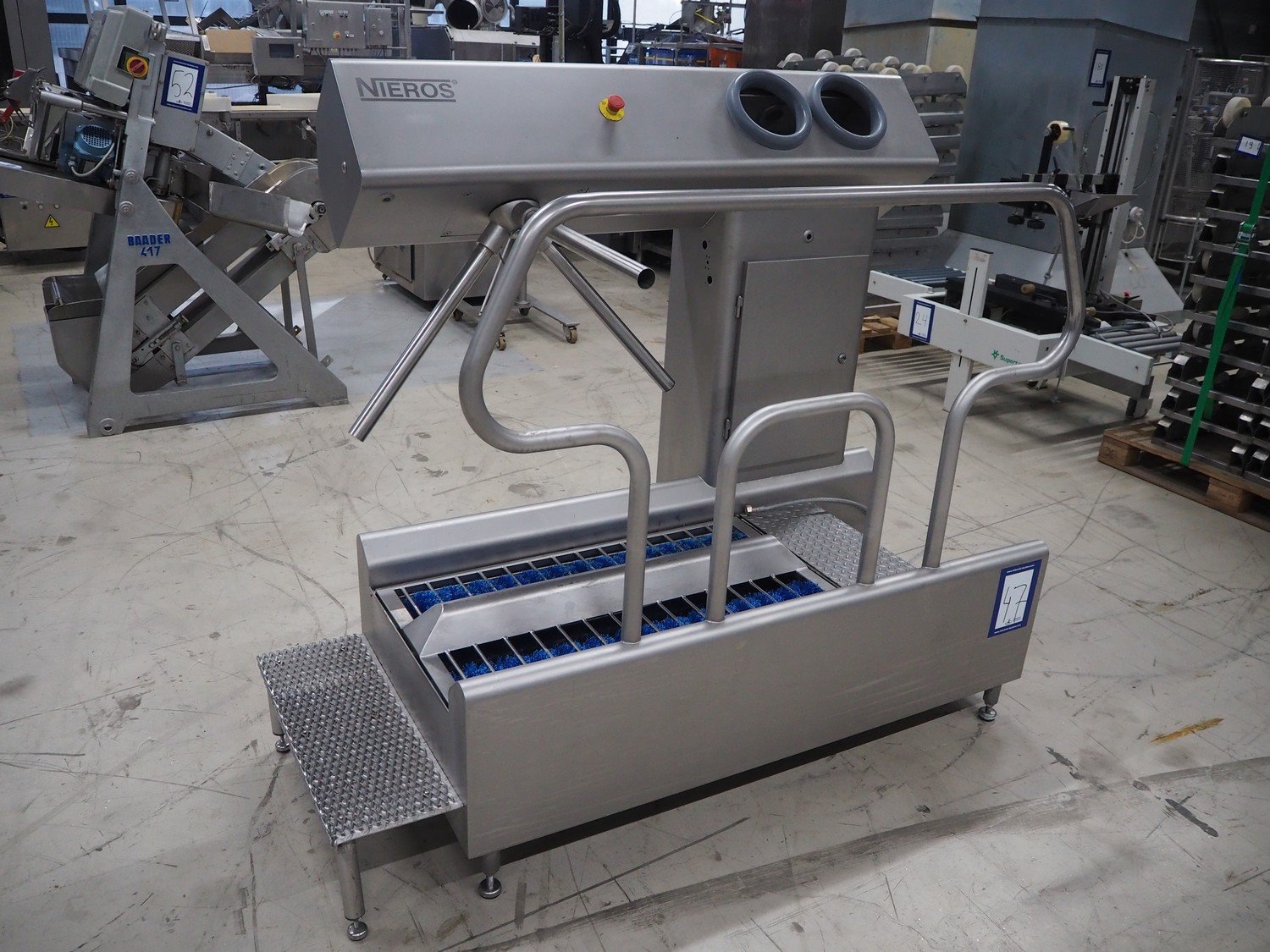 Nieros hygiene station with sole cleaner, hand disinfection unit and tourniquet, brush length: (2x) 1000 mm, total dimensions: 1900 mm x 950 mm x 1630 mm. Kavel locatie: Looyenbeemd 11, 5652 BH Eindhoven, Nederland