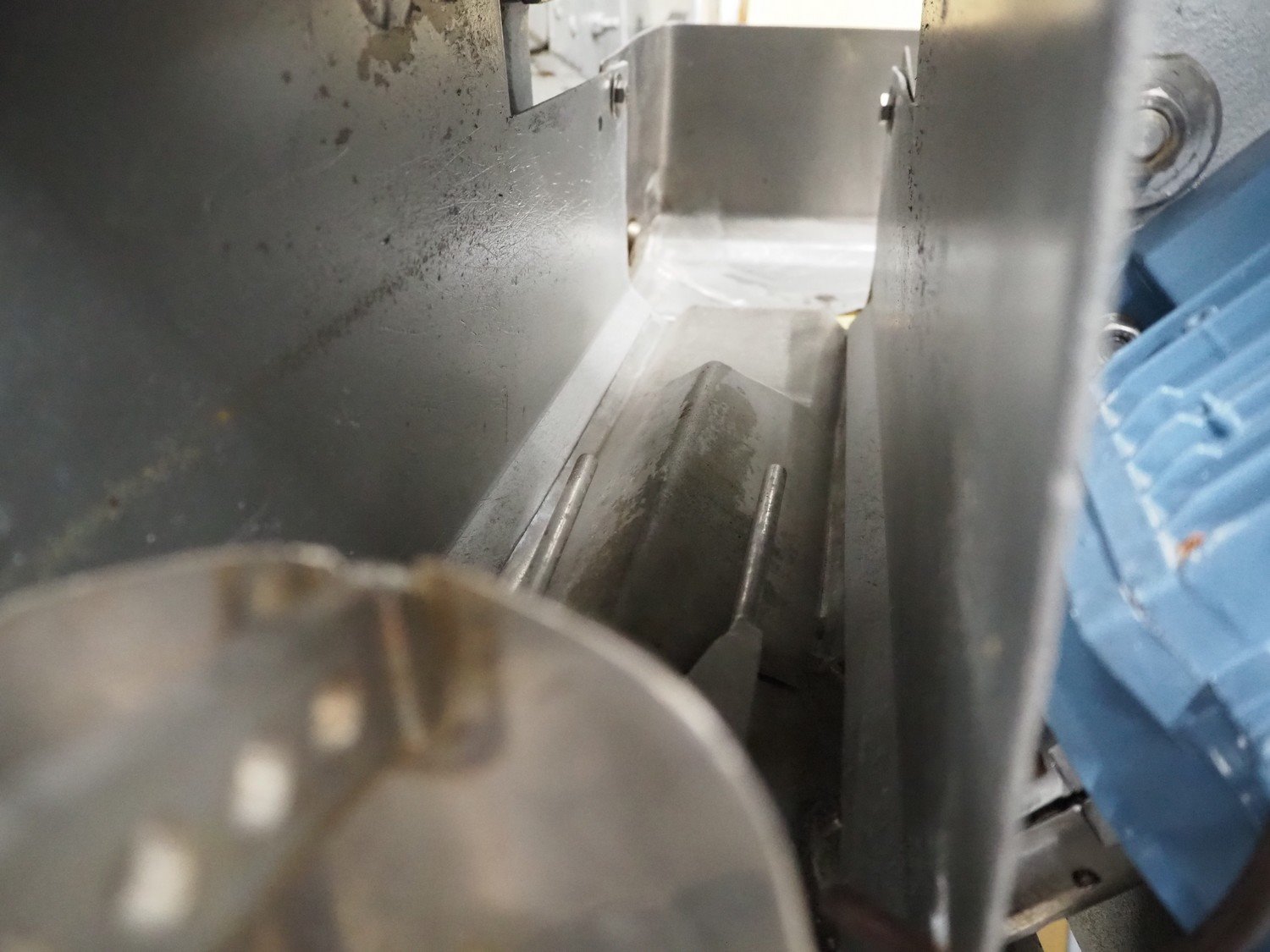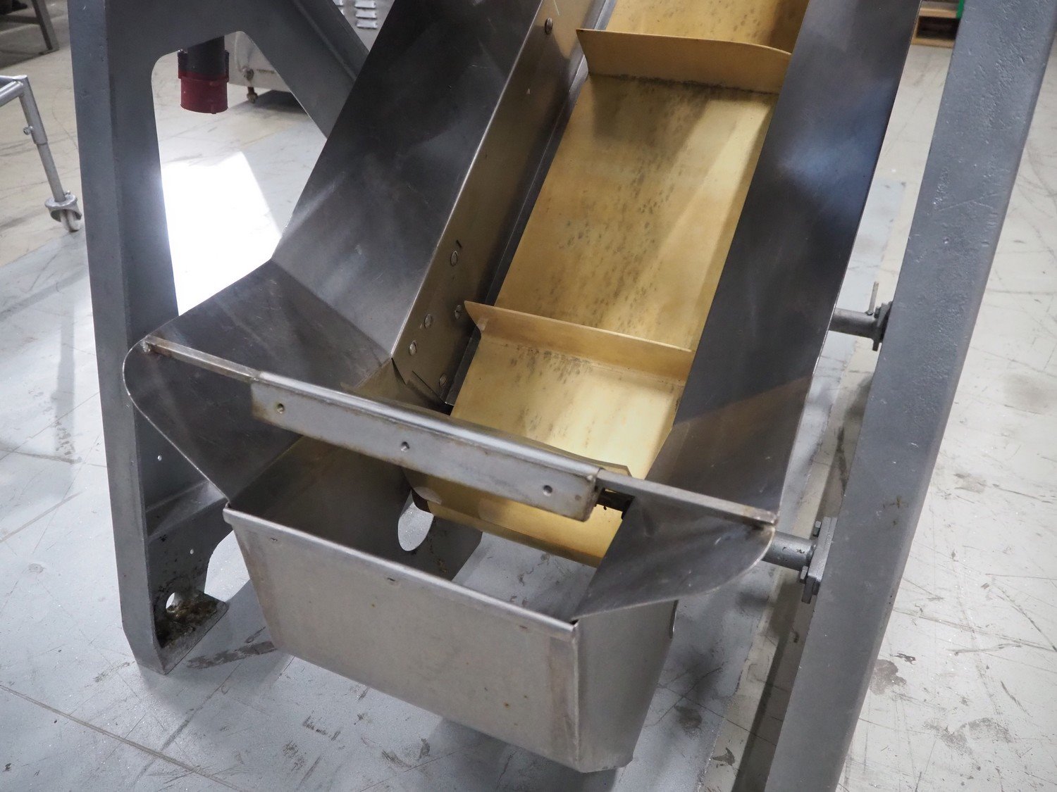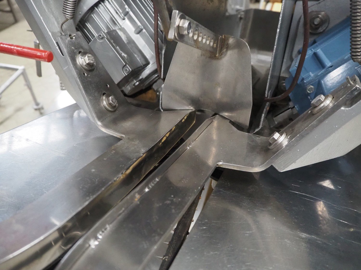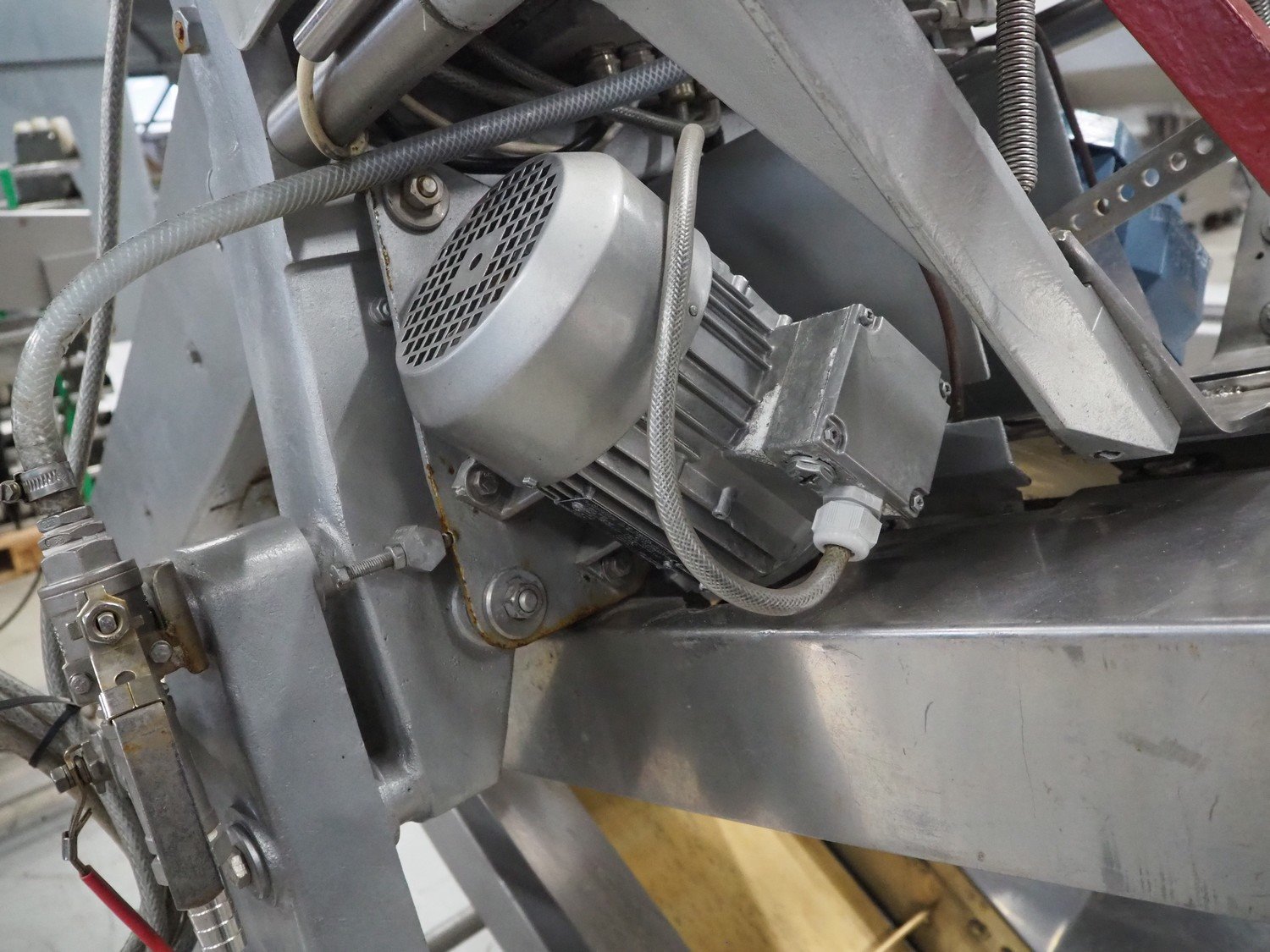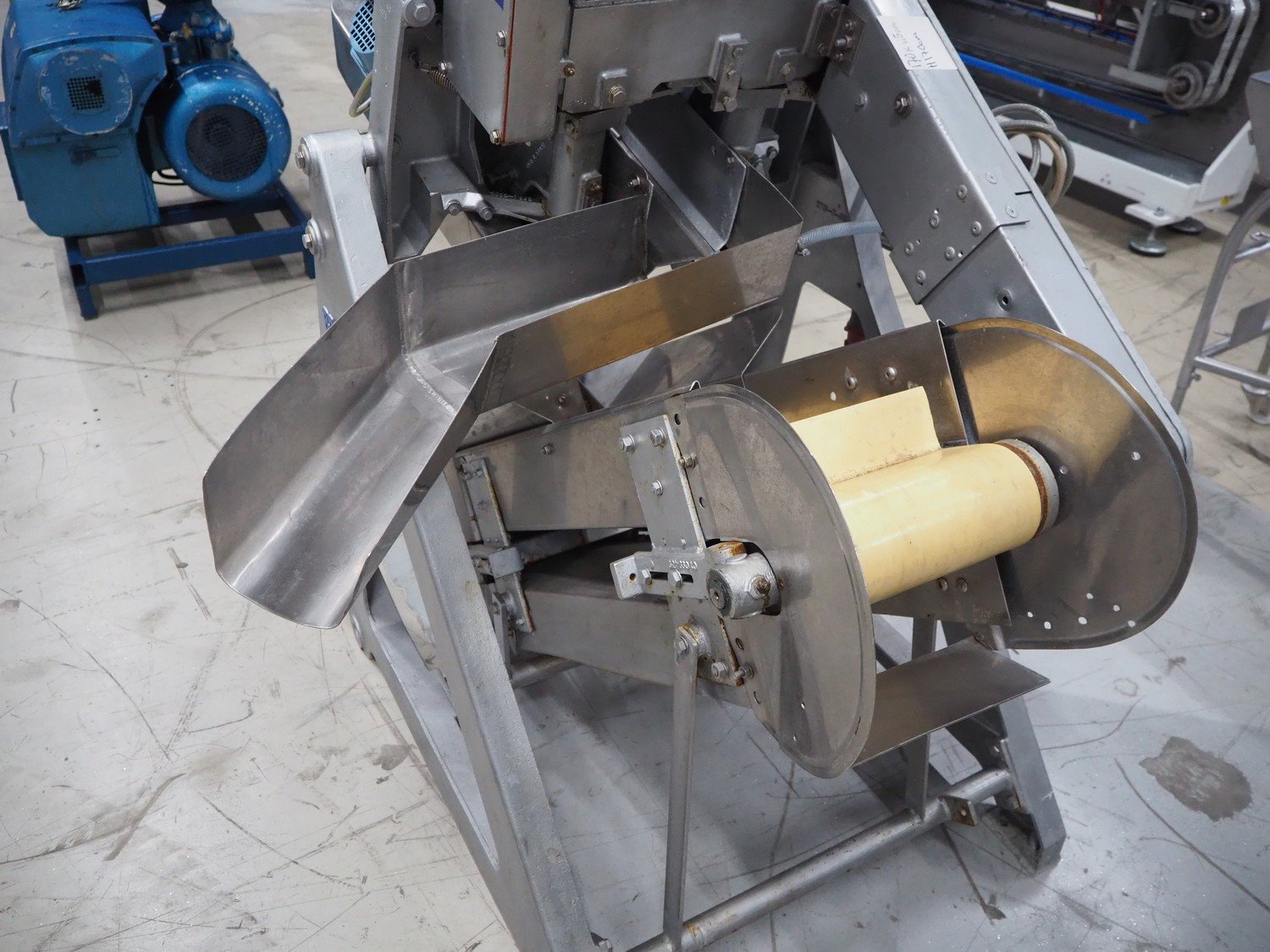 Baader V-cut deheader, type: 417, knife diameter: (2x) 200 mm, plastic belt, belt width: 280 mm, divider height: 70 mm, distance between dividers: 900 mm, elevating height: 1200 mm, total dimensions: 1700 mm x 1100 mm x 1900 mm. Kavel locatie: Looyenbeemd 11, 5652 BH Eindhoven, Nederland