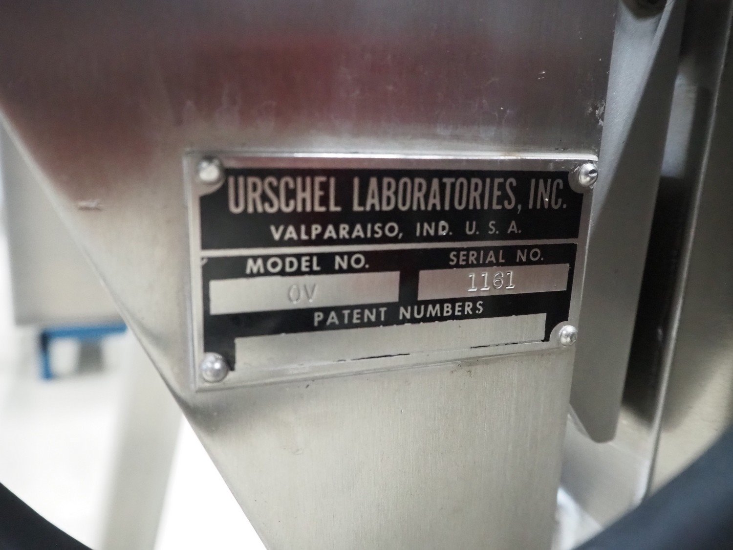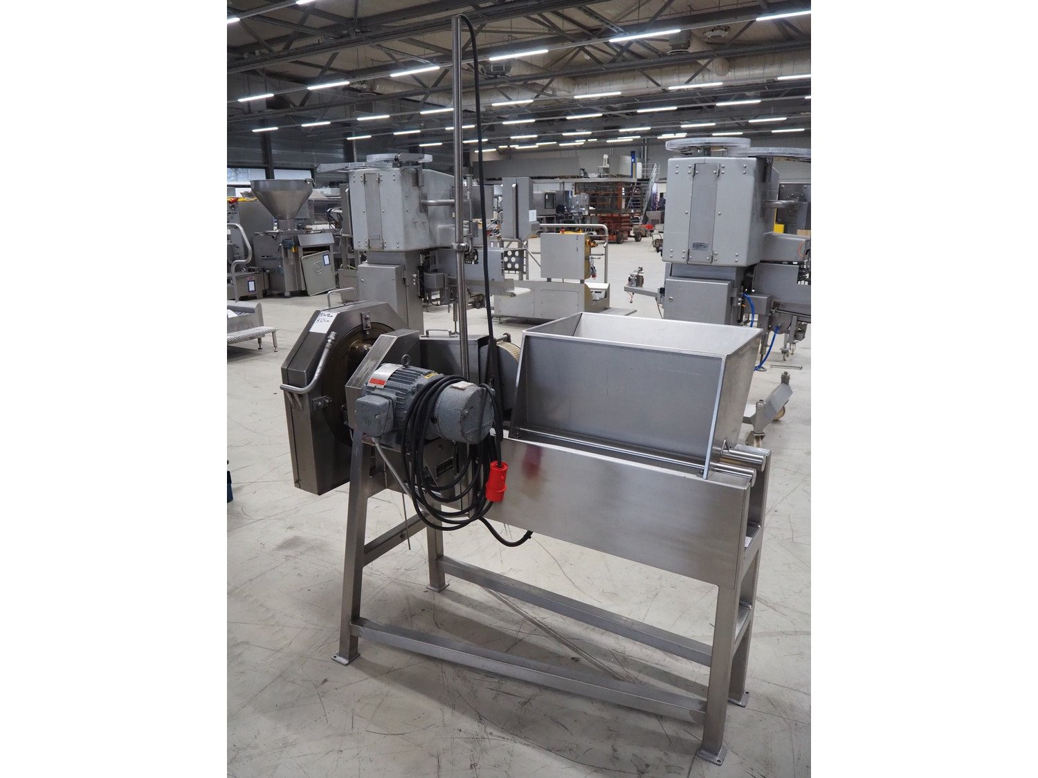 Urschel Labaratories, Inc. slicer, model: OV, serial number: 1161, plastic belts, belt width: (3x) 70 mm, knife diameter: 480 mm, total dimensions: 1600 mm x 950 mm x 1200 mm. Including crate with spare parts. Kavel locatie: Looyenbeemd 11, 5652 BH Eindhoven, Nederland