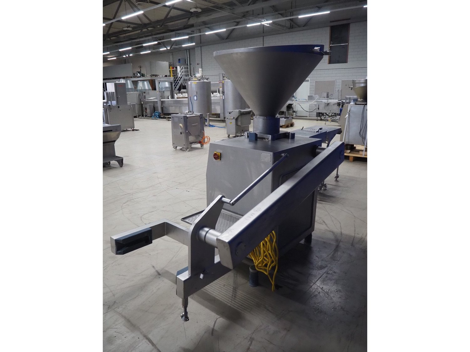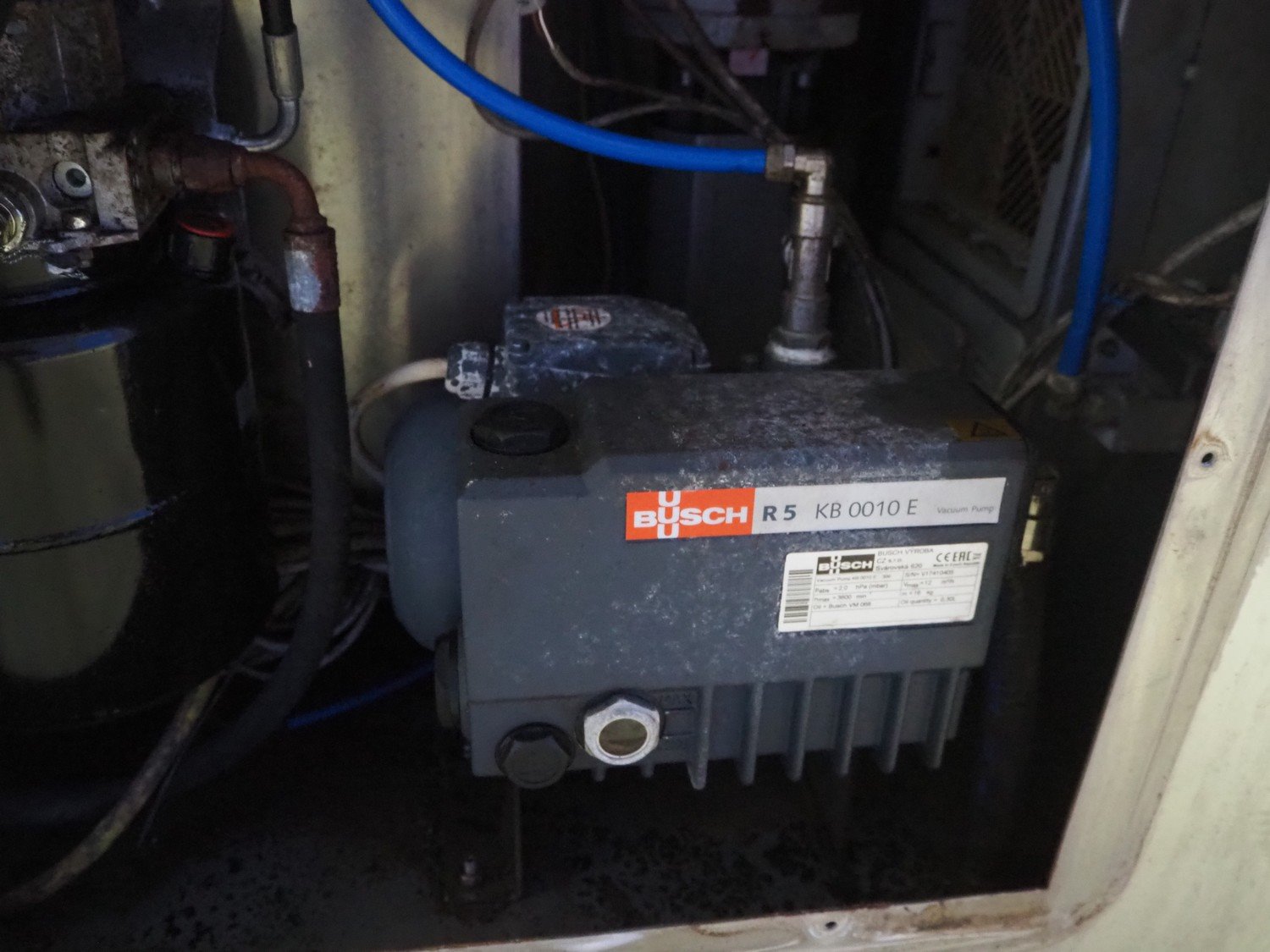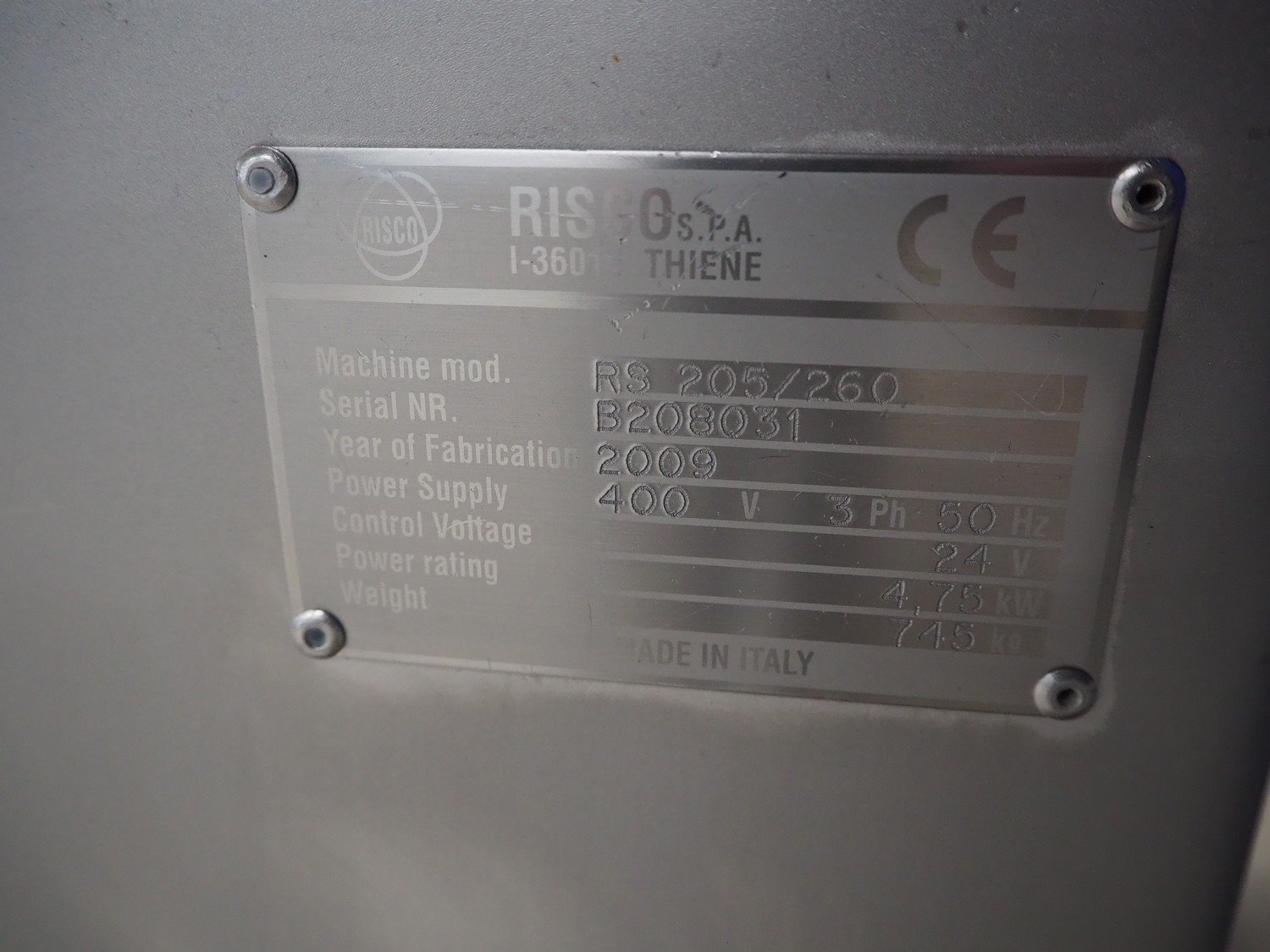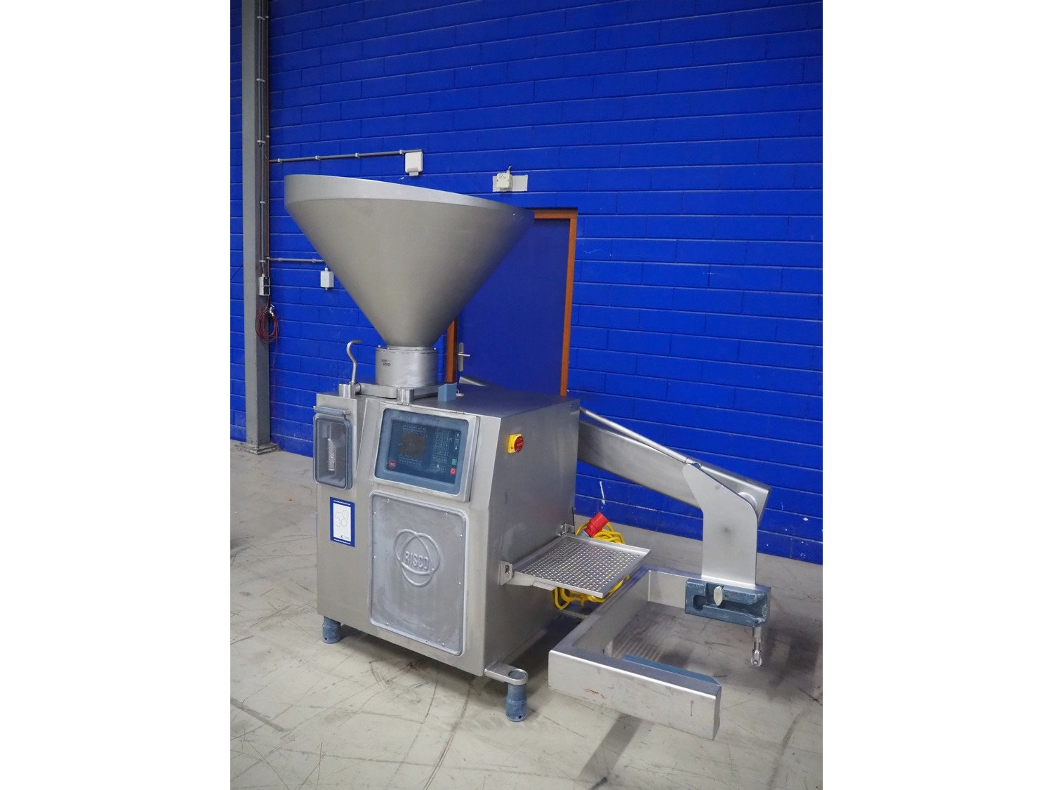 Risco S.p.a. vacuum filling machine with lifter for 200 liter meat bins, model: RS 205/260, serial number: B208031, year of construction: 2009, 400 V, 3 Ph, 50 Hz, 4.75 kW, weight: 715 kg, Busch vacuum pump, type: KB 0010 E 300, capacity: 12 m³ per hour, dimensions: 2000 mm x 1300 mm x 2050 mm. Kavel locatie: Looyenbeemd 11, 5652 BH Eindhoven, Nederland
