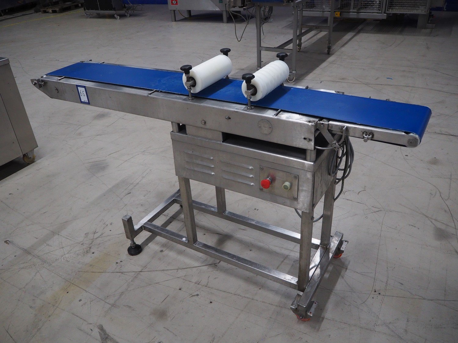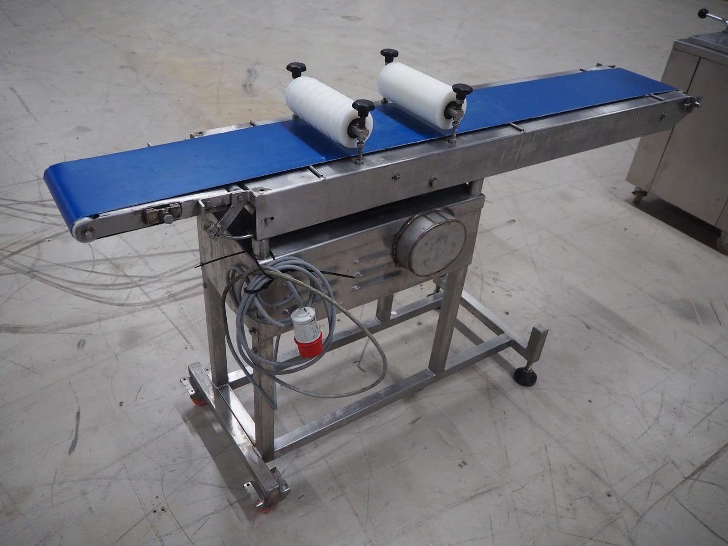Mobile flattening belt, plastic belt, belt width: 240 mm, total dimensions: 2000 mm x 550 mm x 1100 mm. Kavel locatie: Looyenbeemd 11, 5652 BH Eindhoven, Nederland