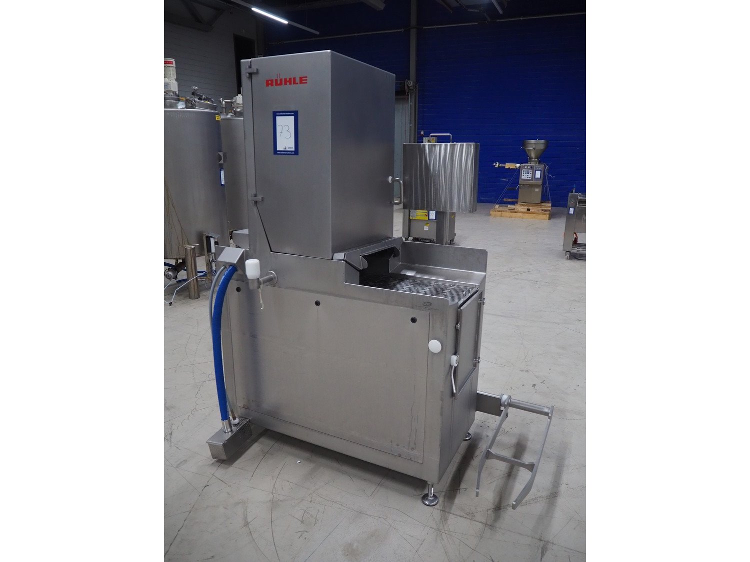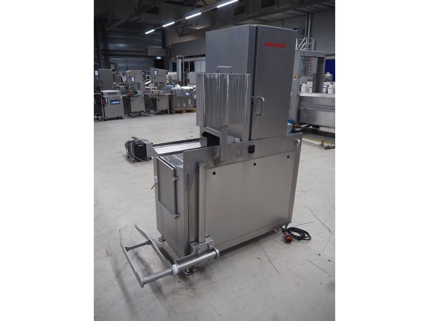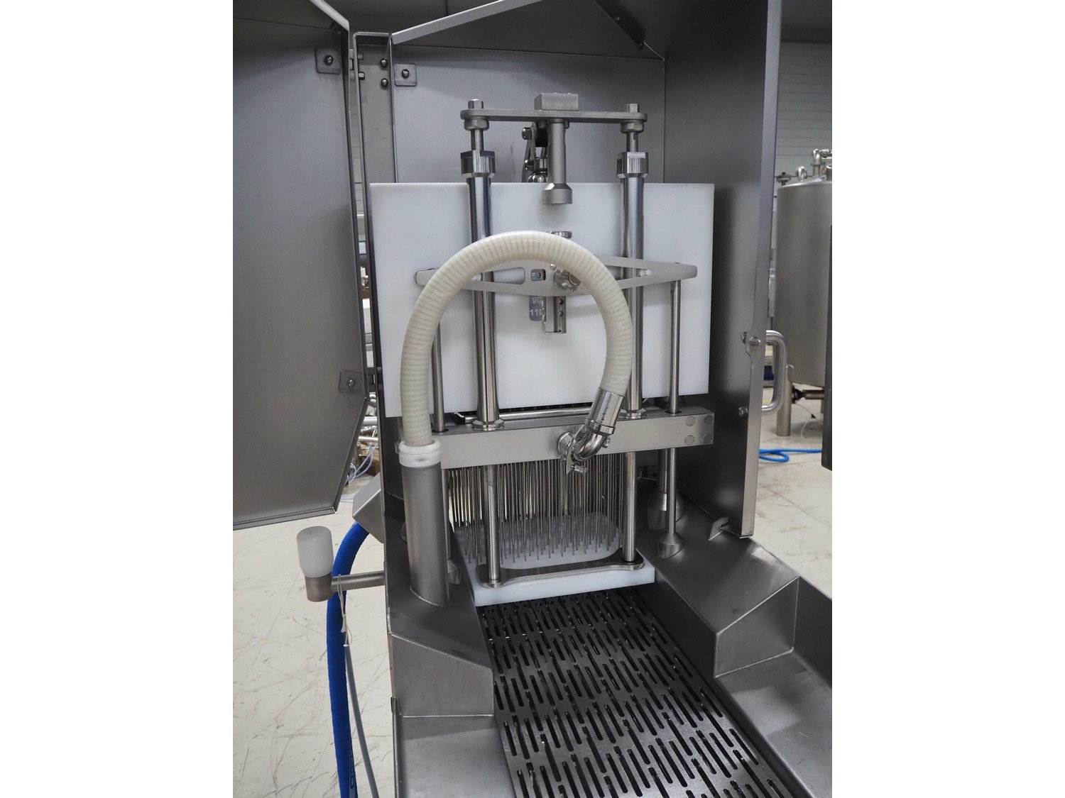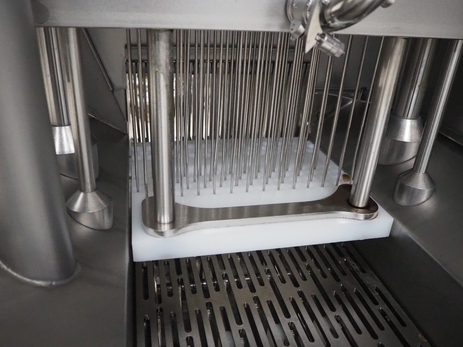 Rühle injector with lifter for crates, model: IR 28/56, serial number: 0430, year of construction: 2007, 400 V, 3 Ph, 50 Hz, 56 needles, s/s walking beam, beam width: 350 mm, total dimensions: 1800 mm x 900 mm x 2050 mm. Kavel locatie: Looyenbeemd 11, 5652 BH Eindhoven, Nederland