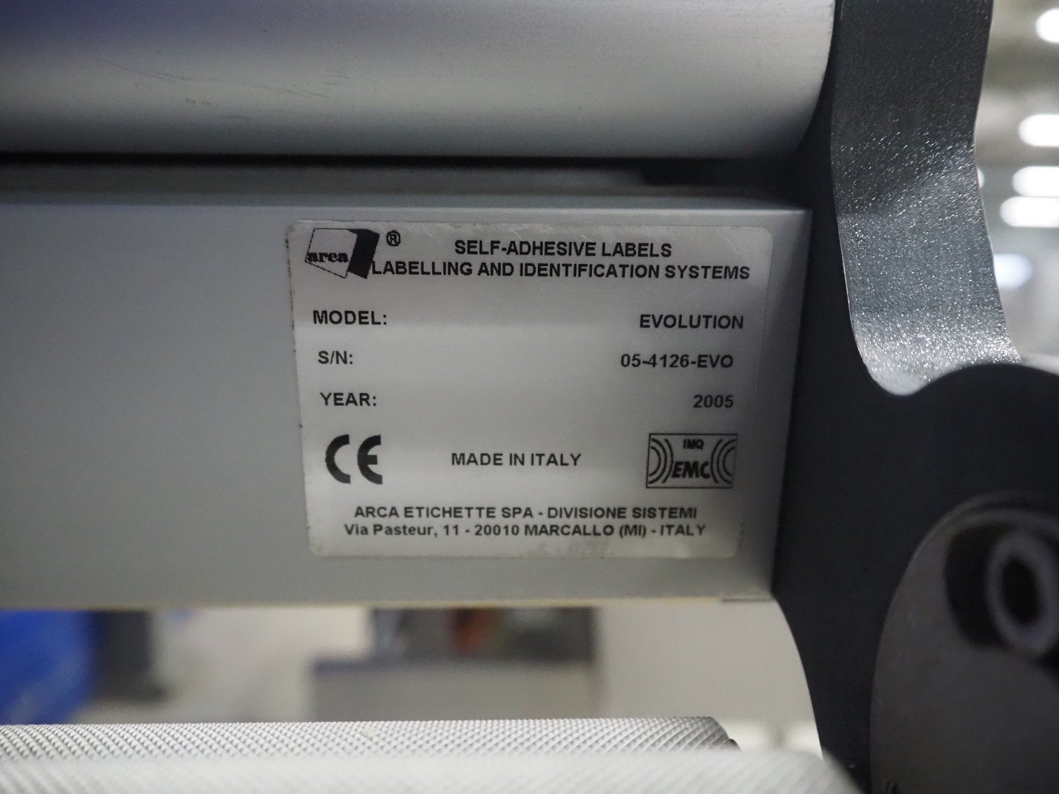 Arca labelling machine, model: Evolution, serial number: 05-4126-EVO, year of construction: 2005, dimensions: 1000 mm x 950 mm x 1800 mm. Kavel locatie: Looyenbeemd 11, 5652 BH Eindhoven, Nederland
