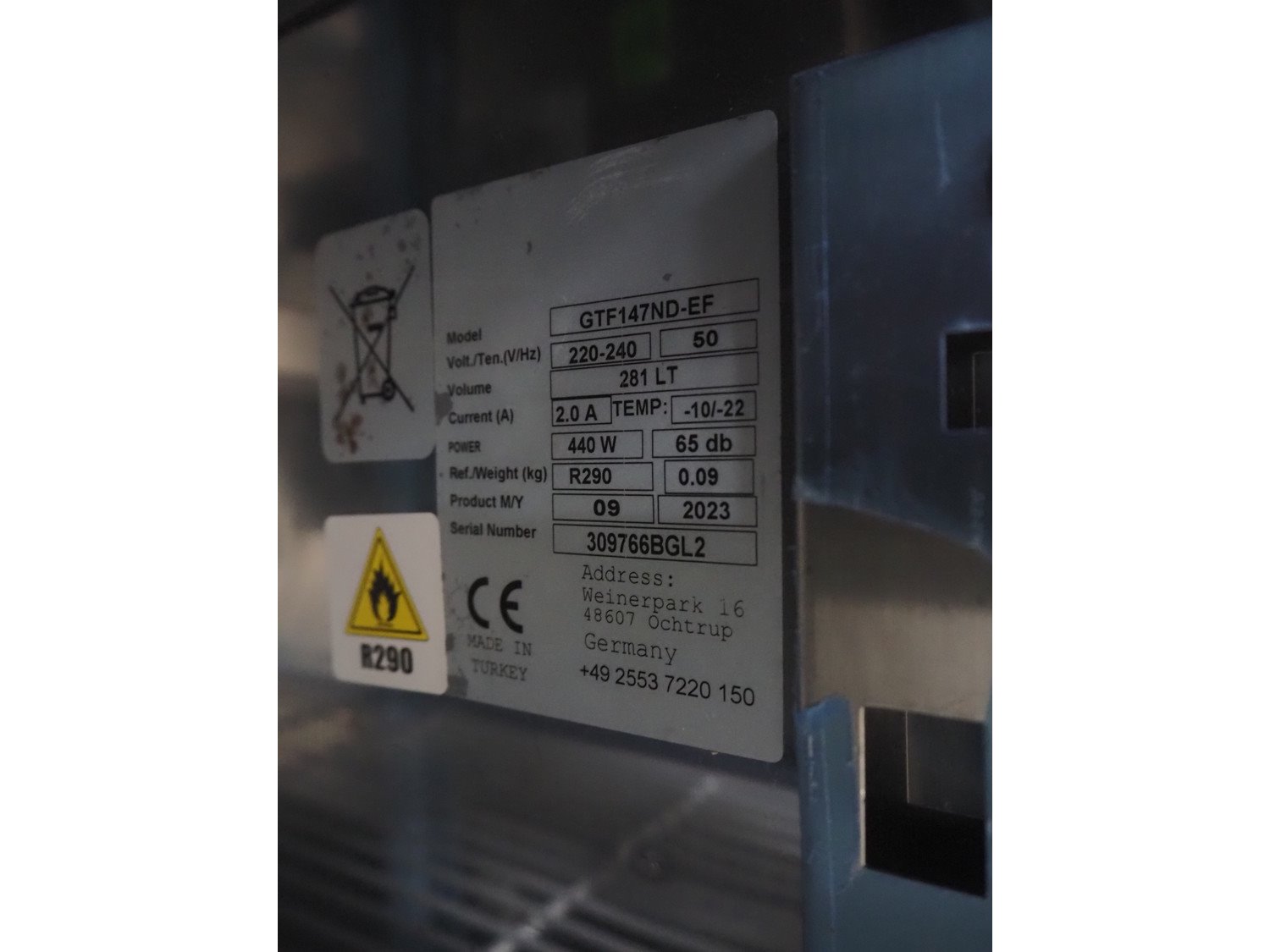 Negative refrigerated counter, model: GTF147ND-EF, 309766BGL2, year of construction: 2023, 220/240 V, 50 Hz, 2.0 A, 440 W, volume: 281 liter, dimensions: 1400 mm x 700 mm x 870 mm. Kavel locatie: Looyenbeemd 11, 5652 BH Eindhoven, Nederland