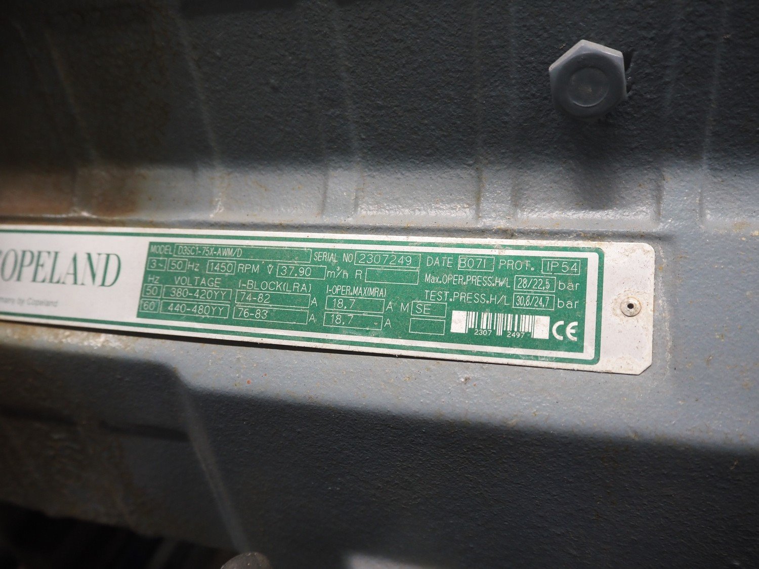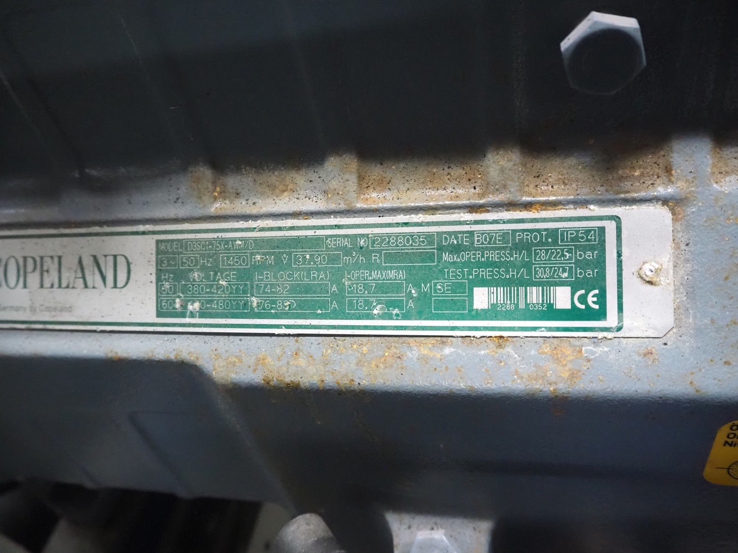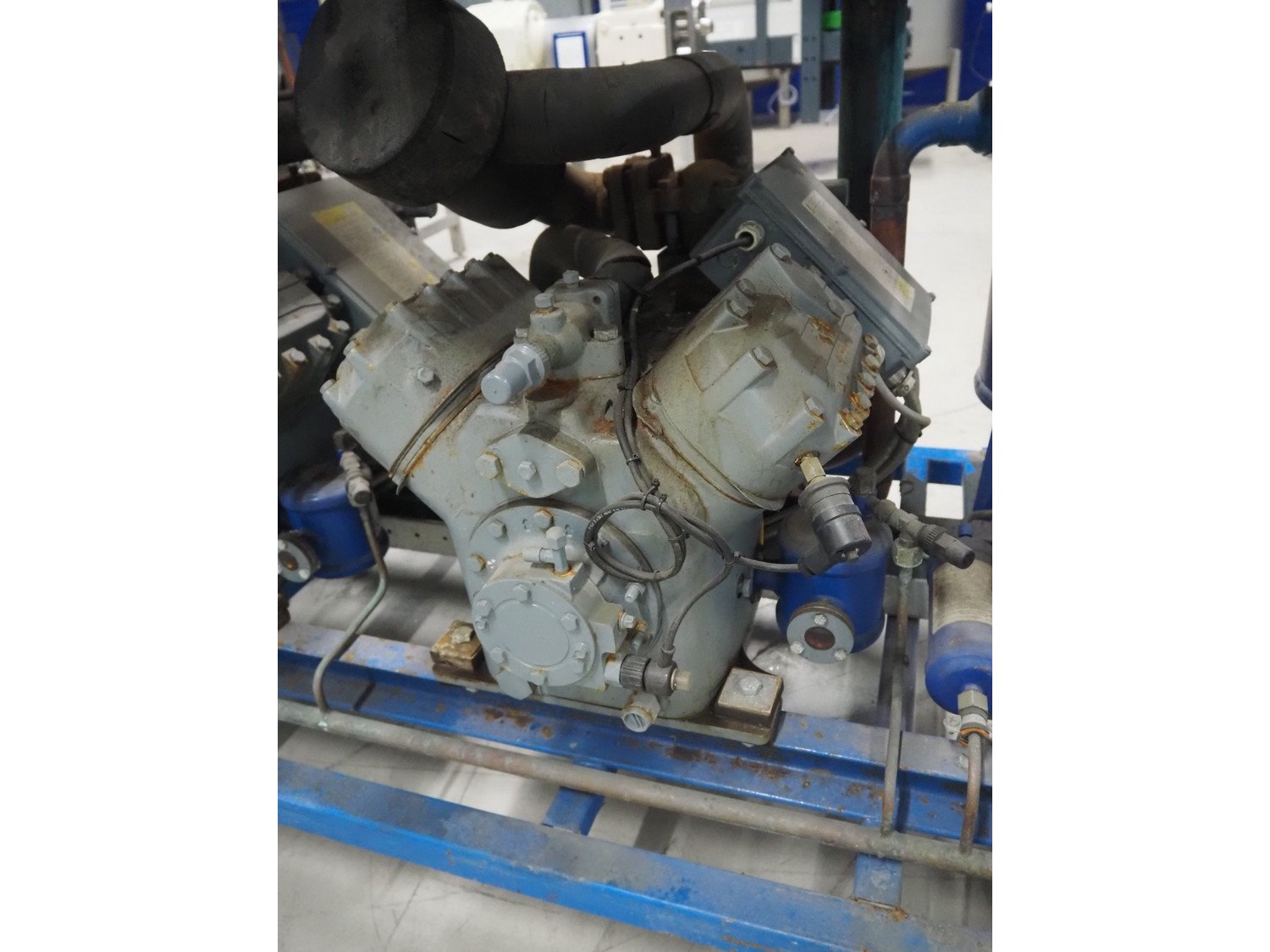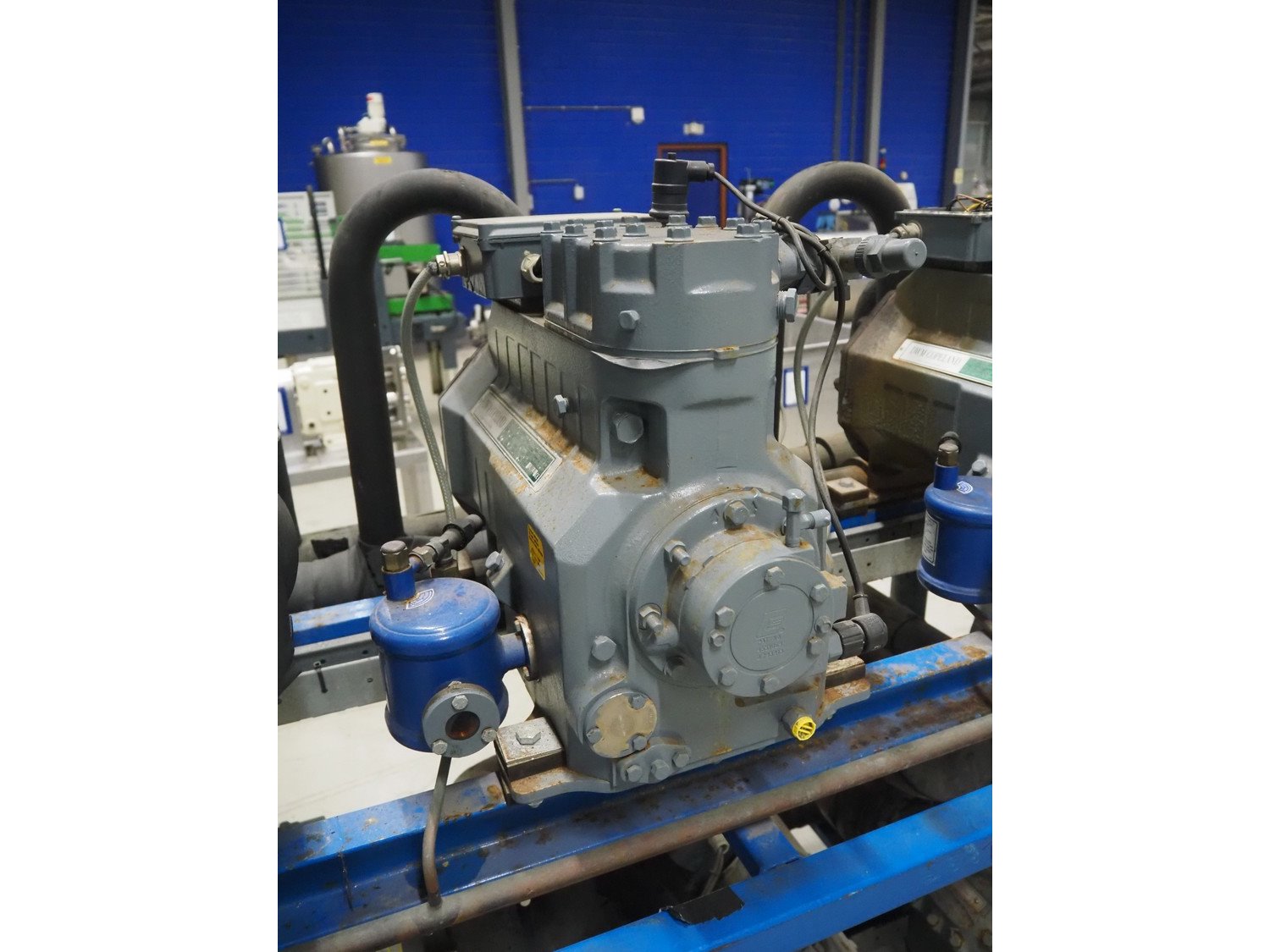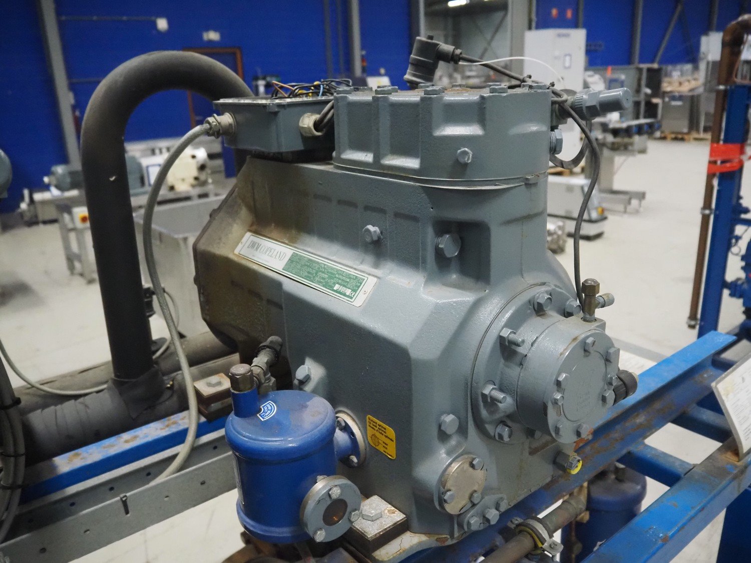DMW Copeland compressor rack with 5 cooling compressors, type: (2x) D3SC1-75X-AWM/D, capacity: 37.90 m³ per hour, total dimensions: 2200 mm x 900 mm x 1800 mm. Kavel locatie: Looyenbeemd 11, 5652 BH Eindhoven, Nederland