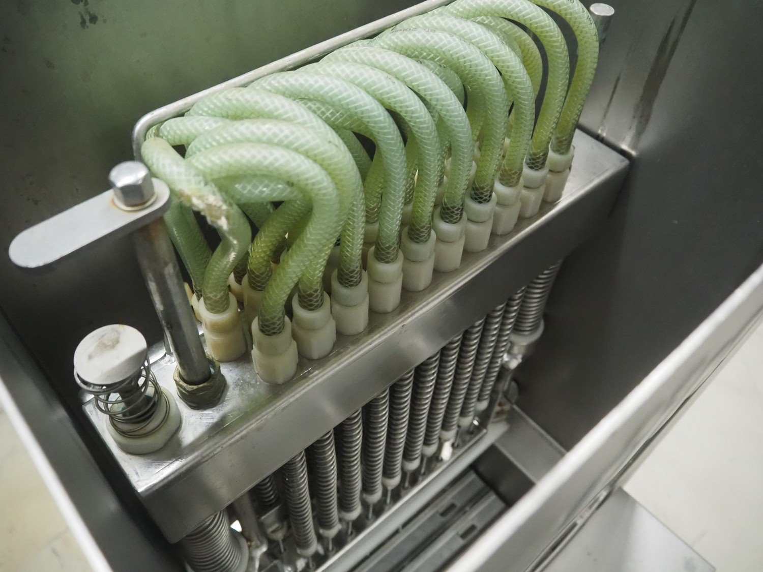 Rühle mobile injector, 21 needles, s/s belt, belt width: 290 mm, total dimensions: 1500 mm x 500 mm x 1600 mm. Kavel locatie: Looyenbeemd 11, 5652 BH Eindhoven, Nederland