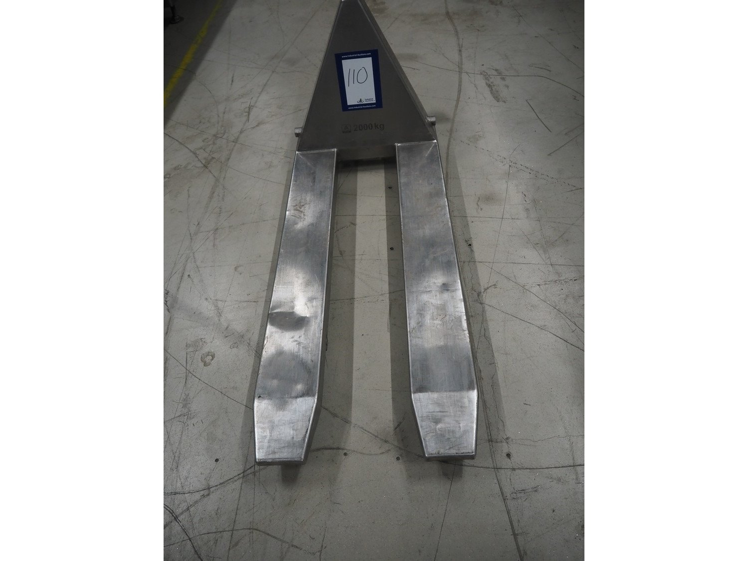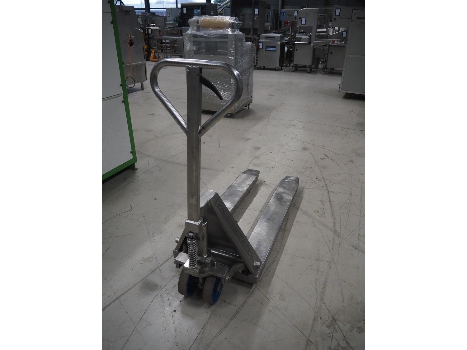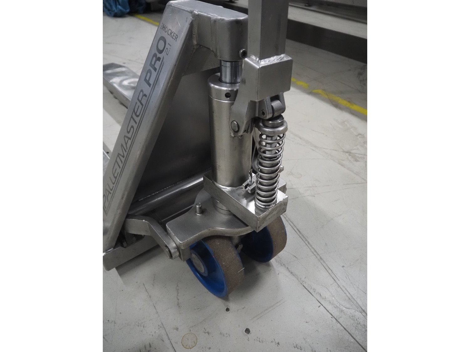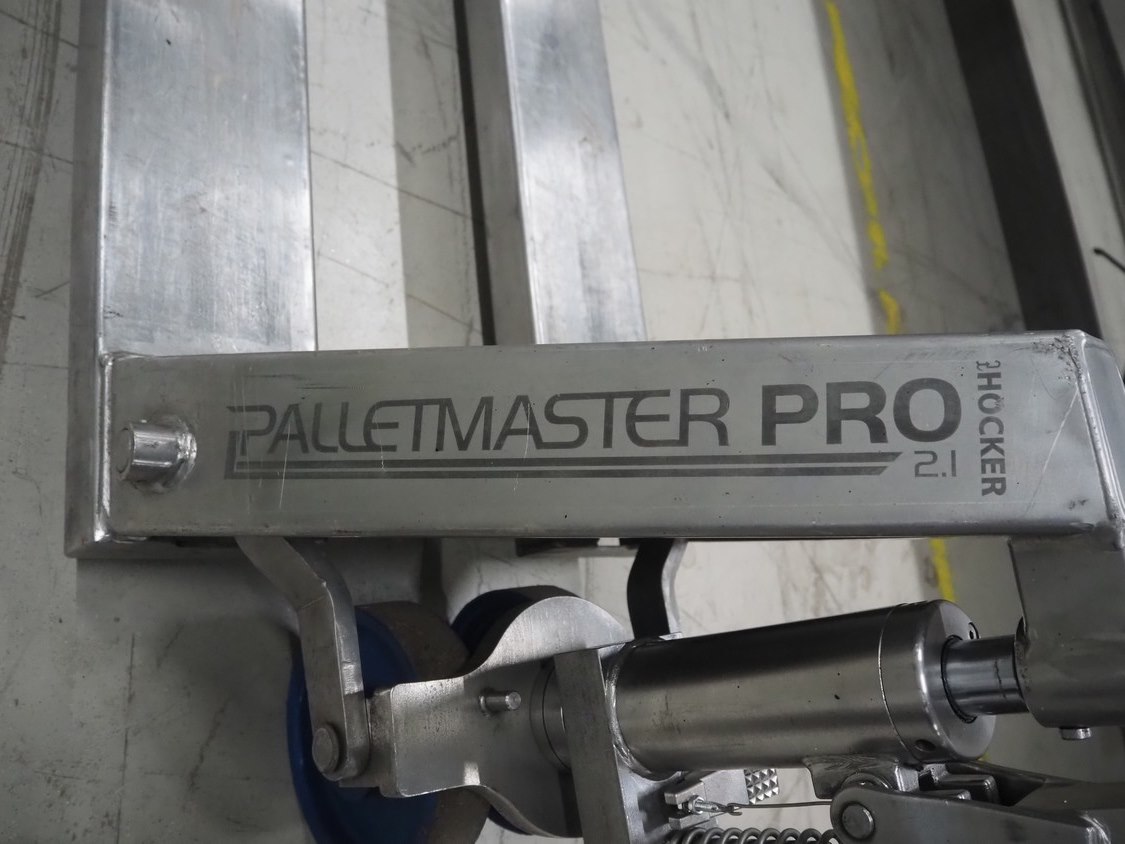 Hocker s/s pallet lifter, model: Palletmaster Pro 2.1, maximum capacity: 2000 kg, fork length: 1160 mm, total dimensions: 1500 mm x 550 mm x 1220 mm. Kavel locatie: Looyenbeemd 11, 5652 BH Eindhoven, Nederland