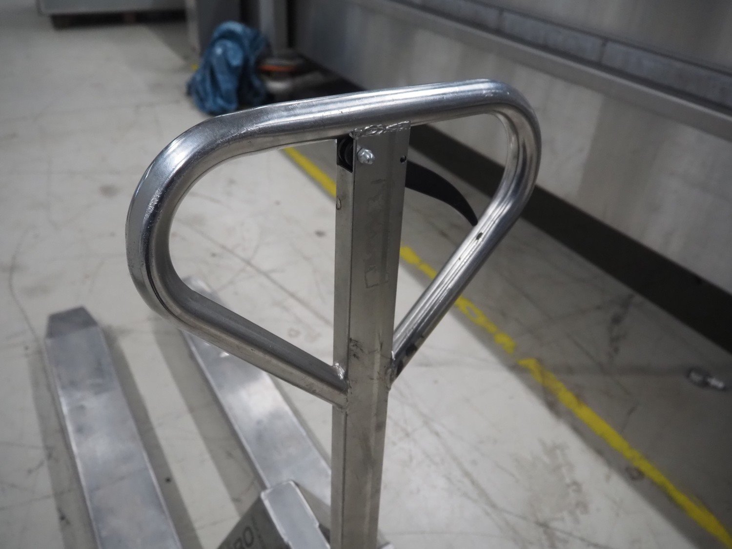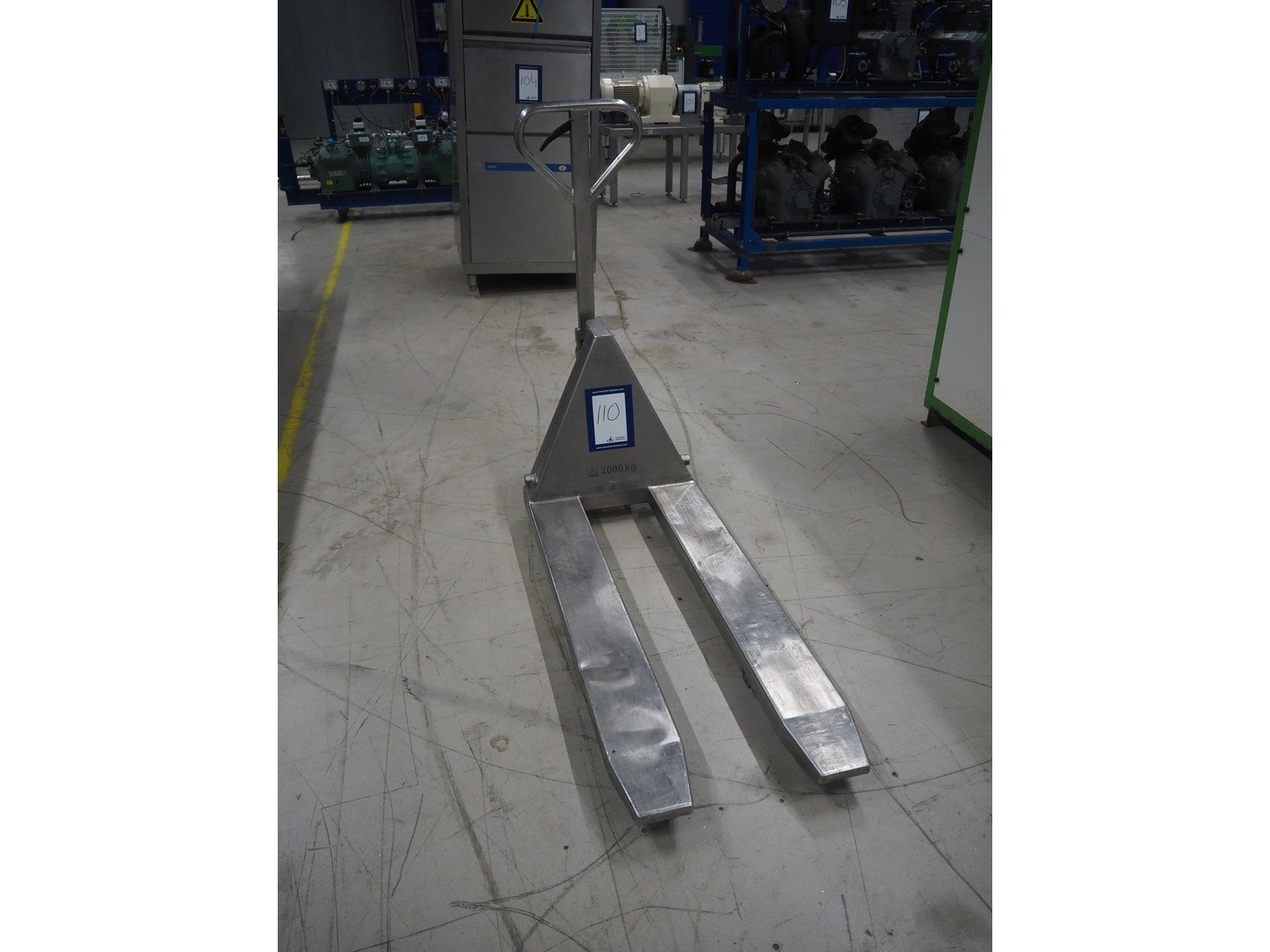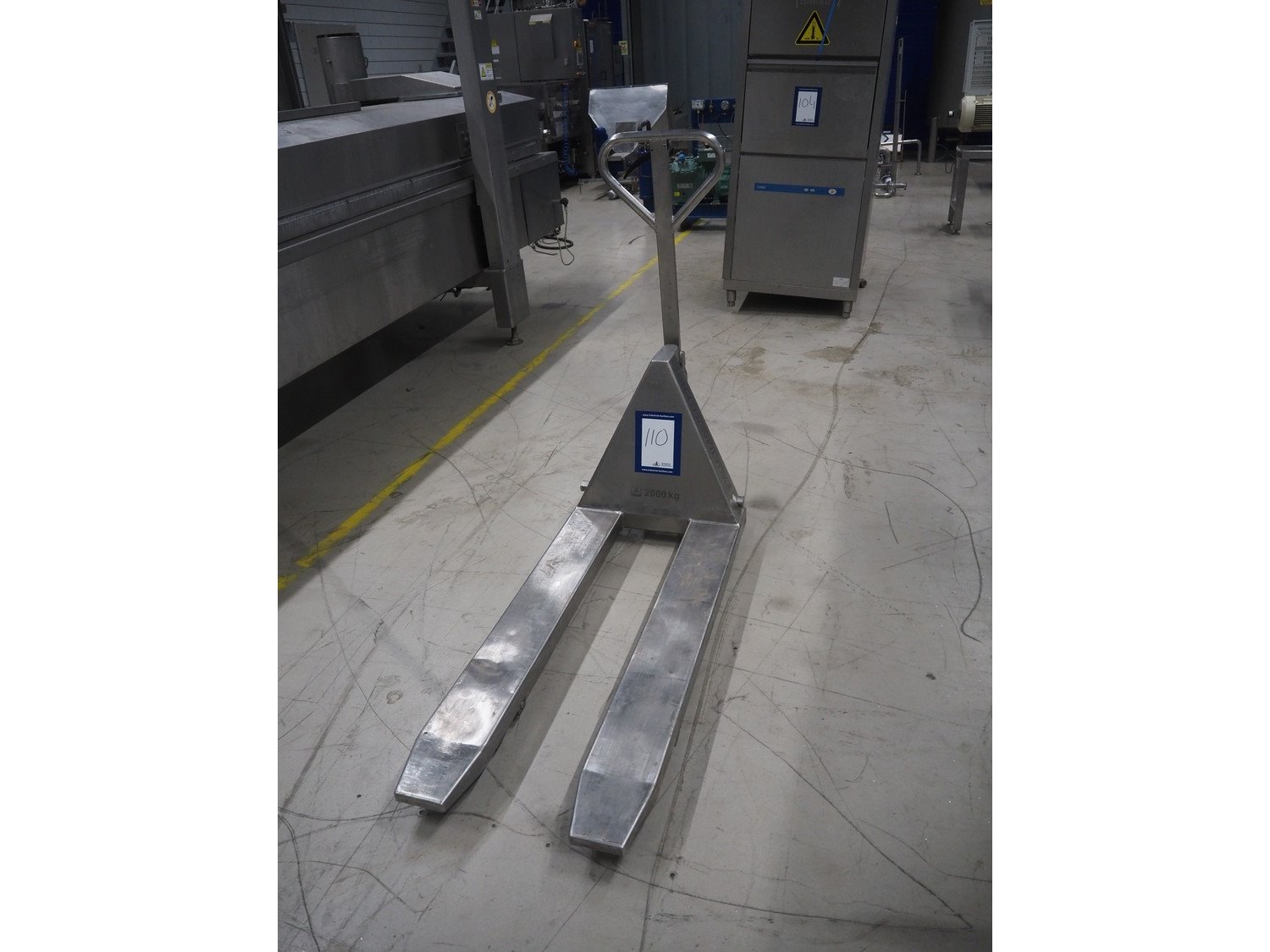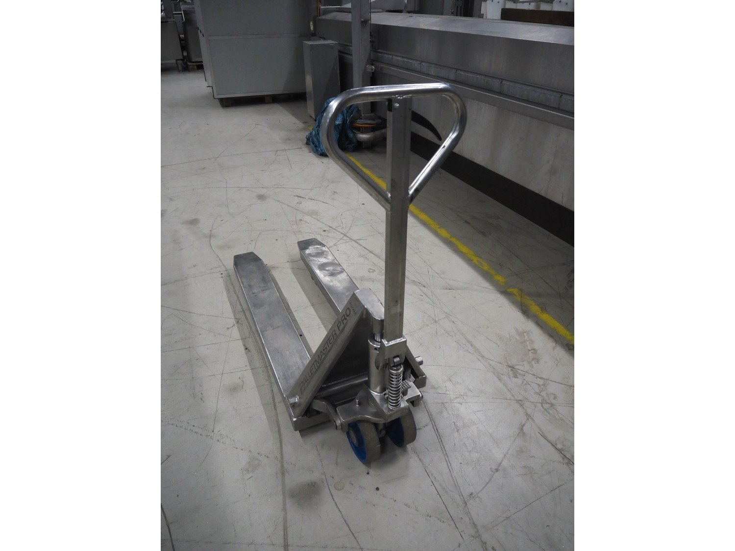 Hocker s/s pallet lifter, model: Palletmaster Pro 2.1, maximum capacity: 2000 kg, fork length: 1160 mm, total dimensions: 1500 mm x 550 mm x 1220 mm. Kavel locatie: Looyenbeemd 11, 5652 BH Eindhoven, Nederland