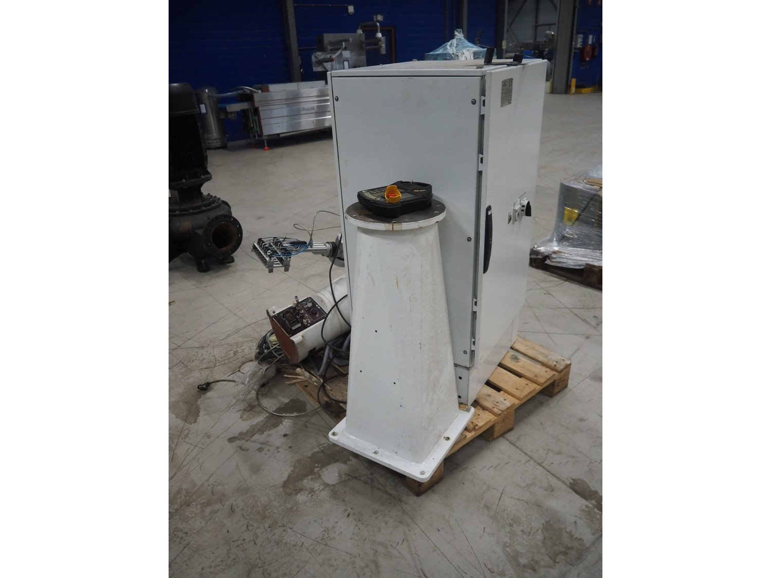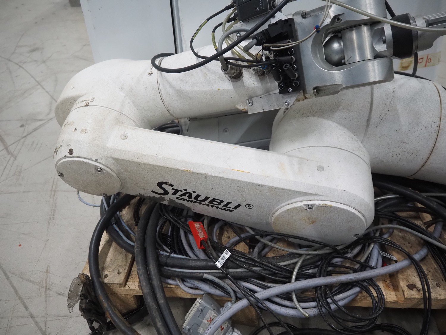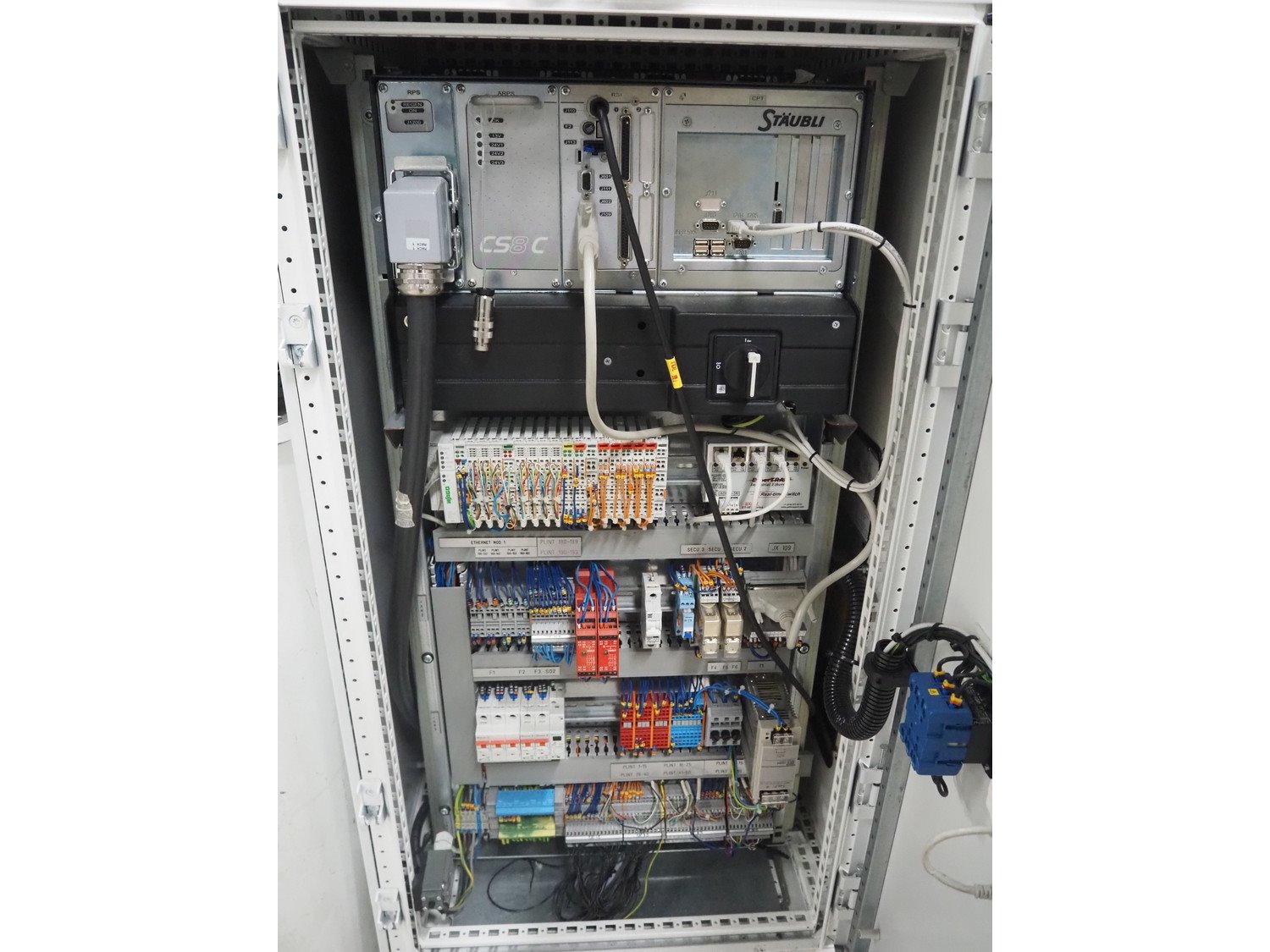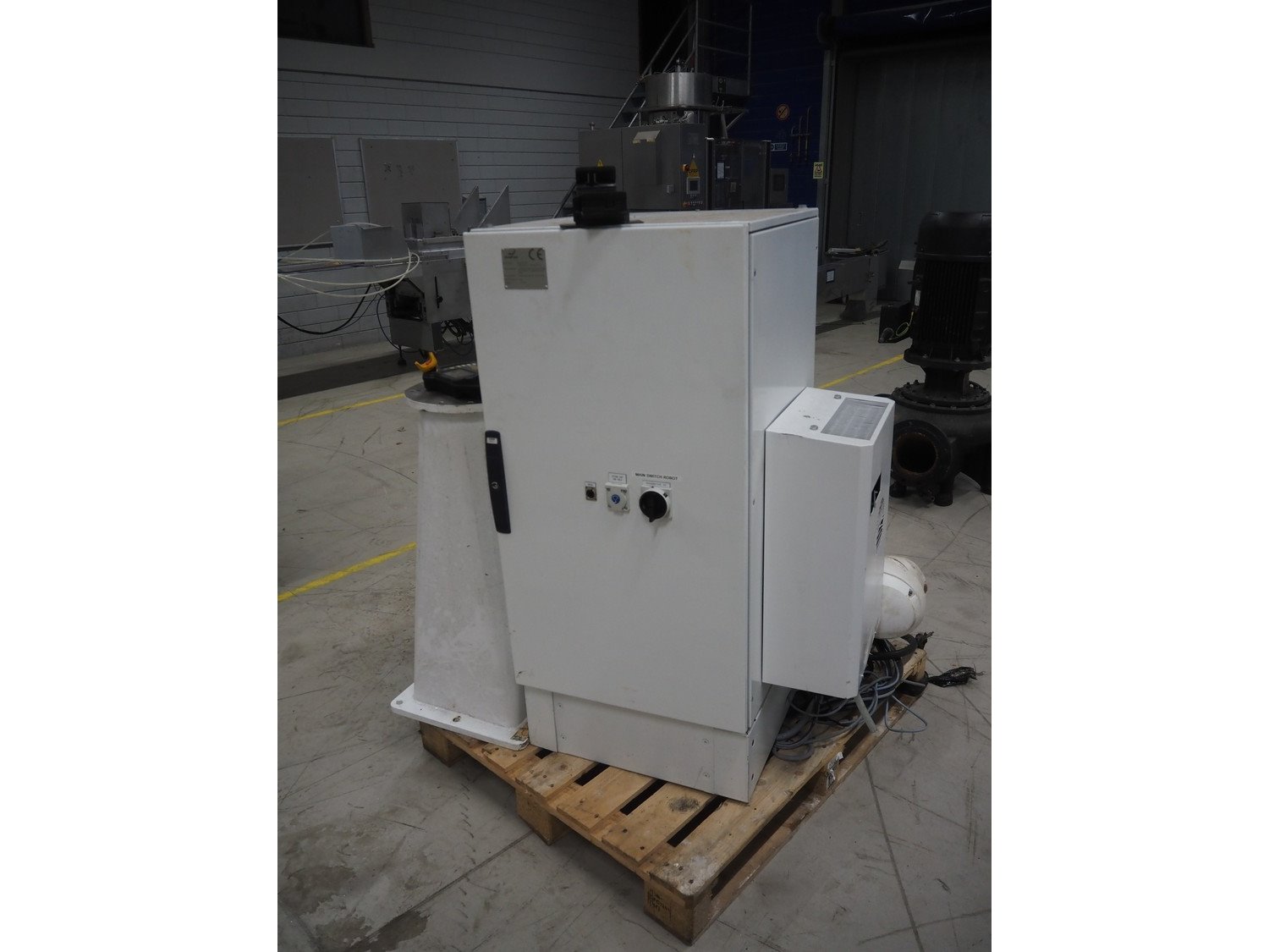 Stäubli / AP Artaplast AB robot, type: TX90 L, number: F04/502EA1/A/01, weight: 113 kg, capacity: 5 kg, dimensions robot arm: 1100 mm x 450 mm x 500 mm, dimensions switch cabinet: 700 mm x 500 mm x 1500 mm. Kavel locatie: Looyenbeemd 11, 5652 BH Eindhoven, Nederland