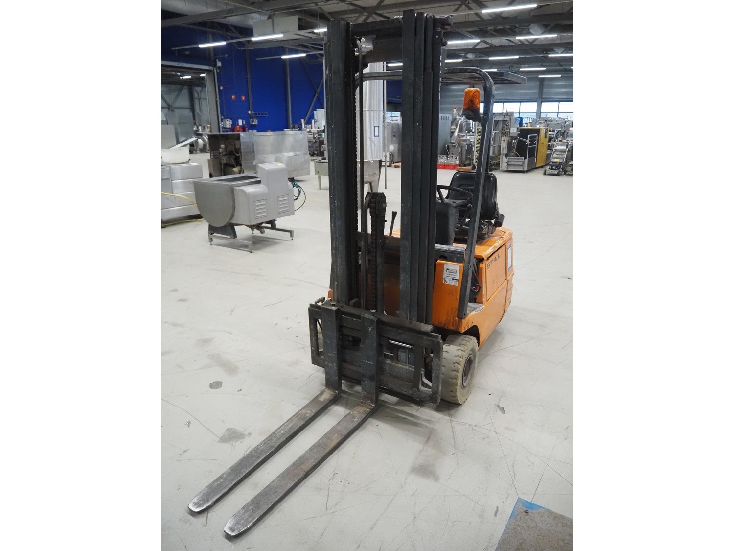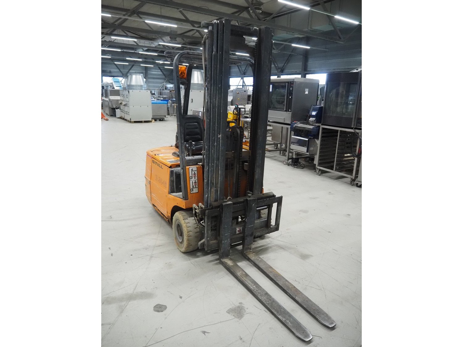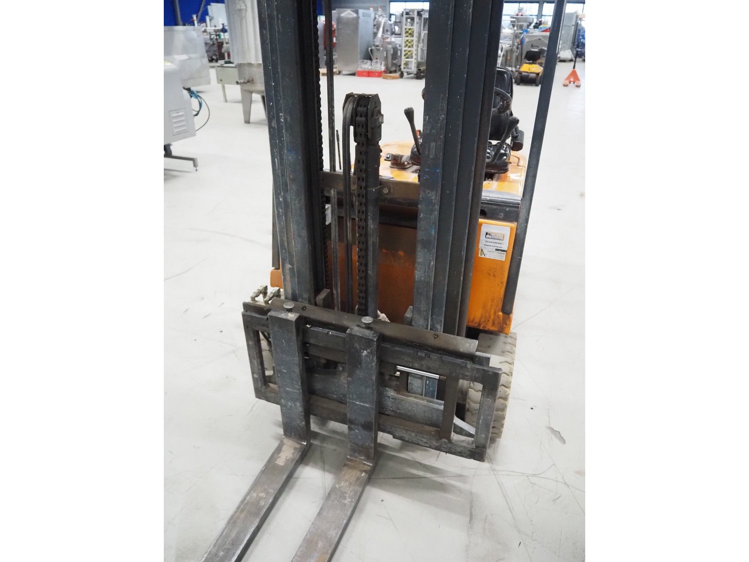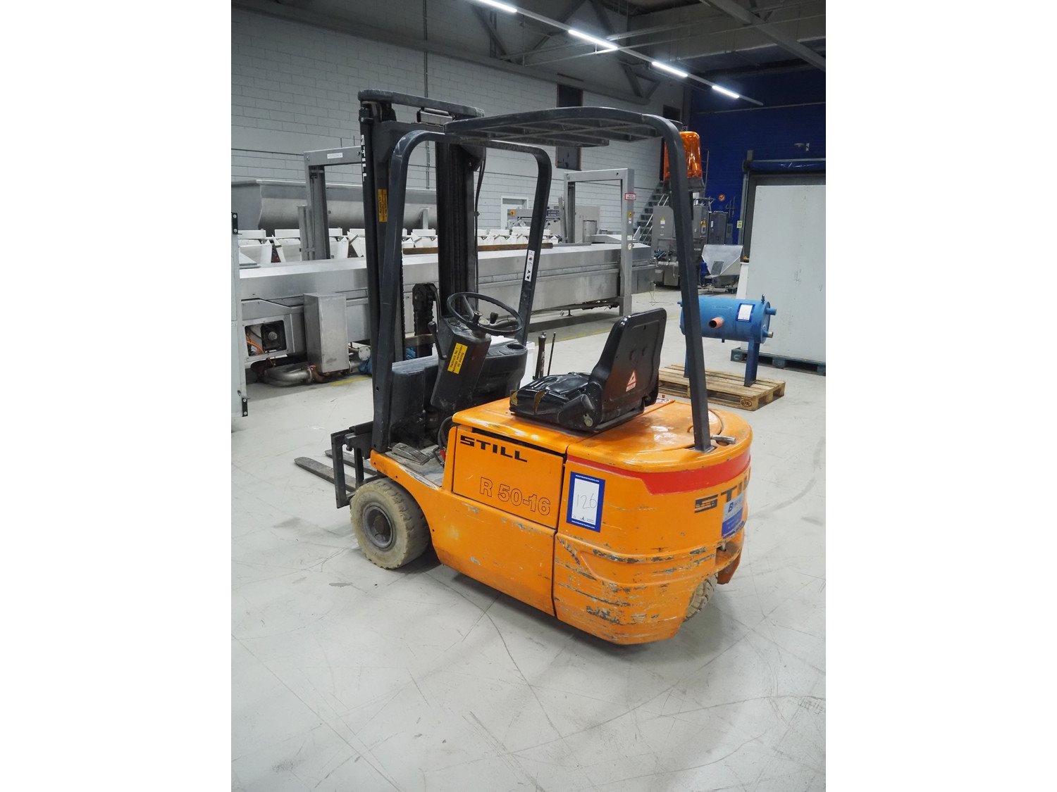Still electric forklift, model: R 50-16, fork length: 1100 mm, total dimensions: 3100 mm x 1000 mm x 2200 mm. Including battery charger, dimensions: 560 mm x 440 mm x 700 mm. Kavel locatie: Looyenbeemd 11, 5652 BH Eindhoven, Nederland