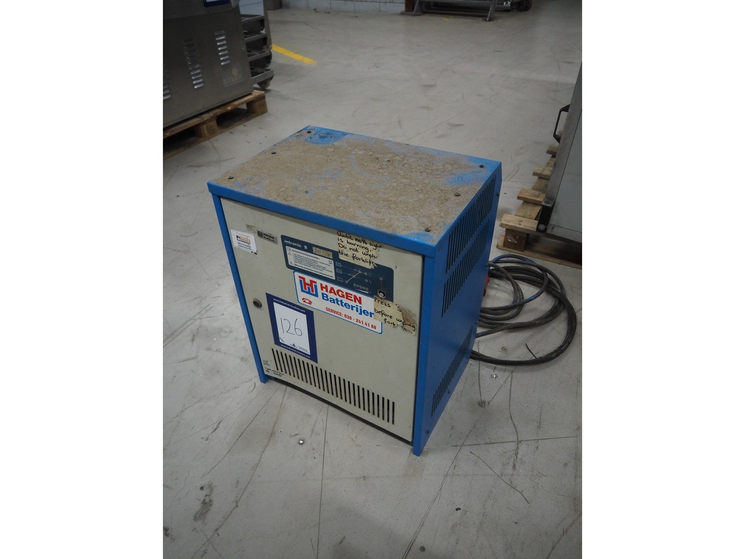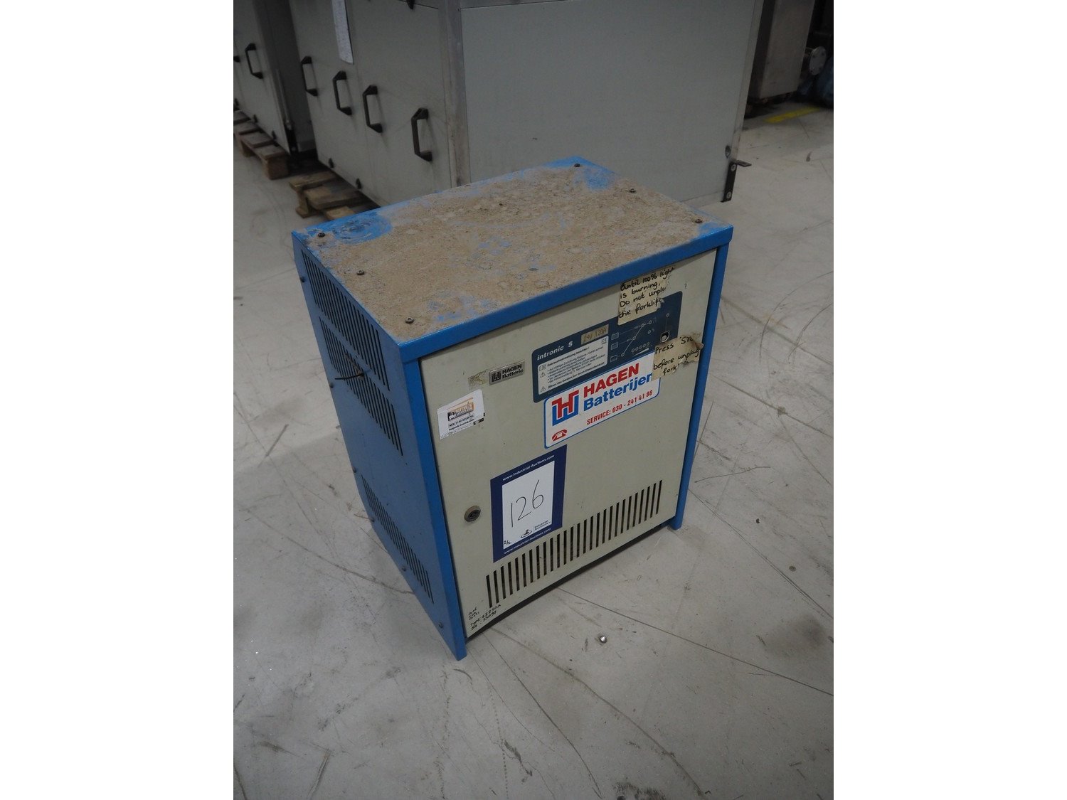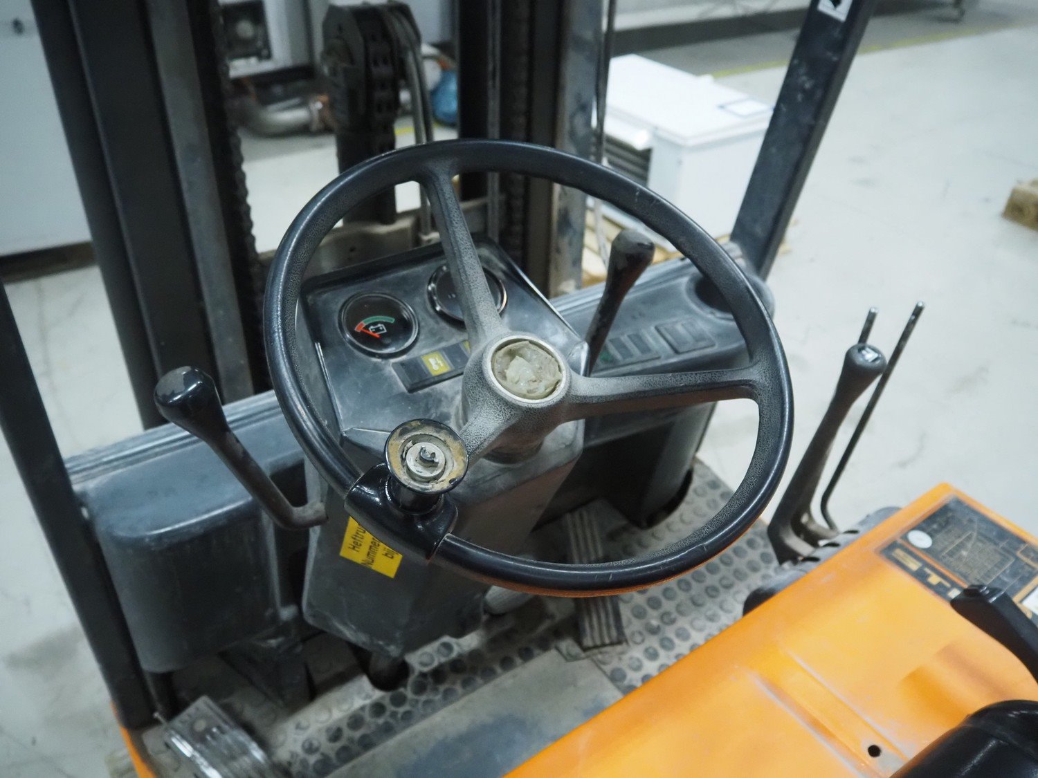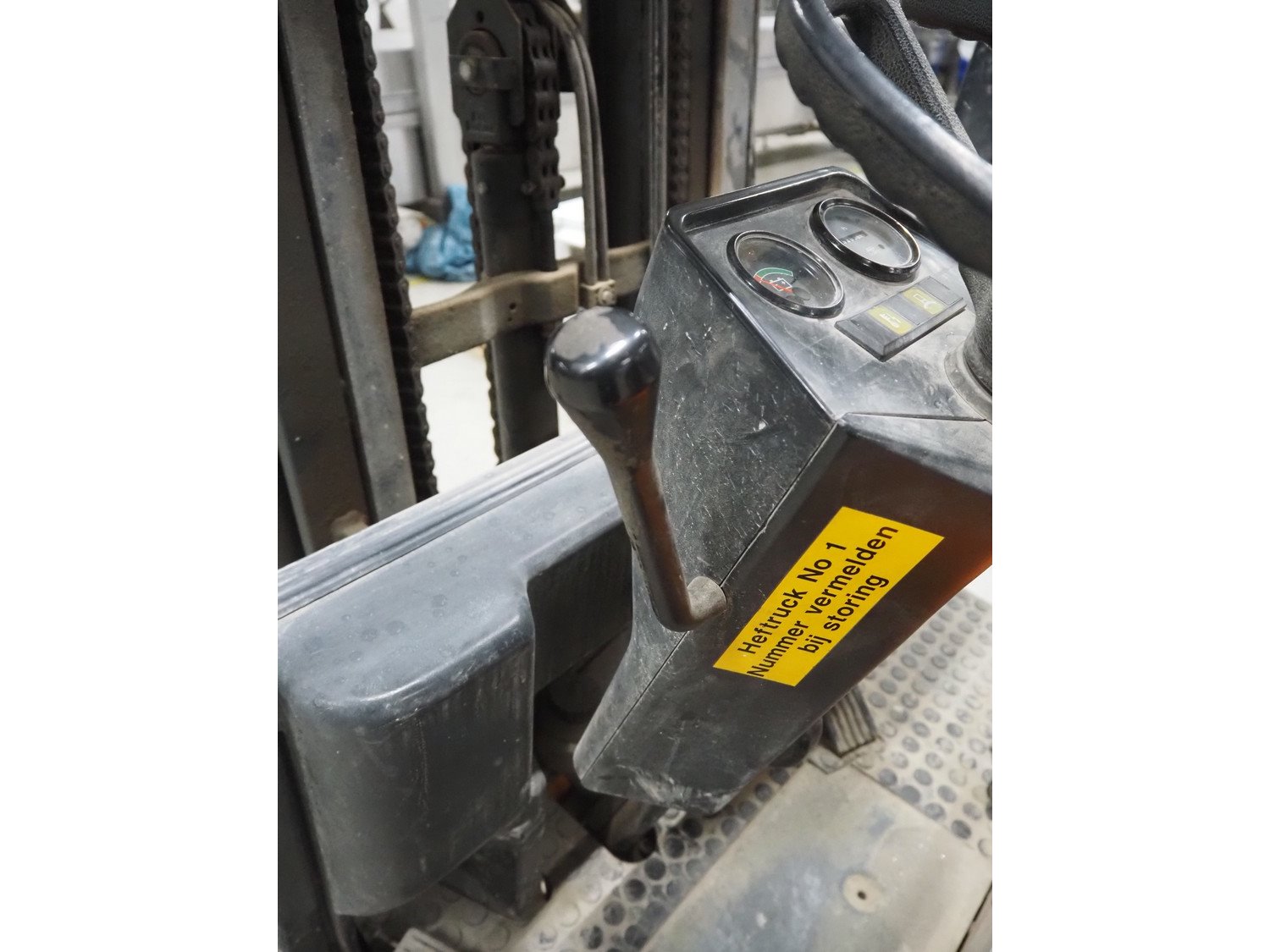 Still electric forklift, model: R 50-16, fork length: 1100 mm, total dimensions: 3100 mm x 1000 mm x 2200 mm. Including battery charger, dimensions: 560 mm x 440 mm x 700 mm. Kavel locatie: Looyenbeemd 11, 5652 BH Eindhoven, Nederland