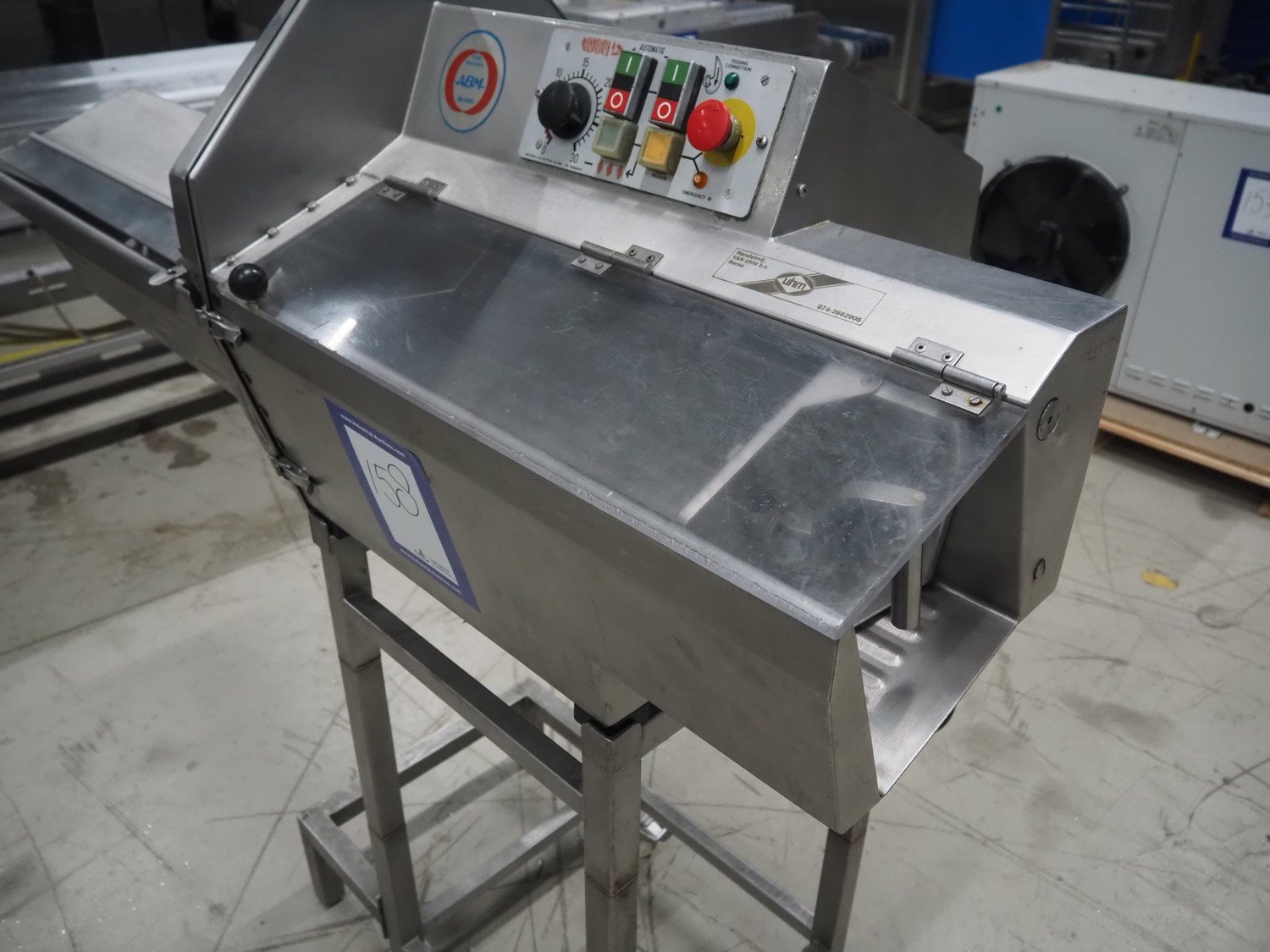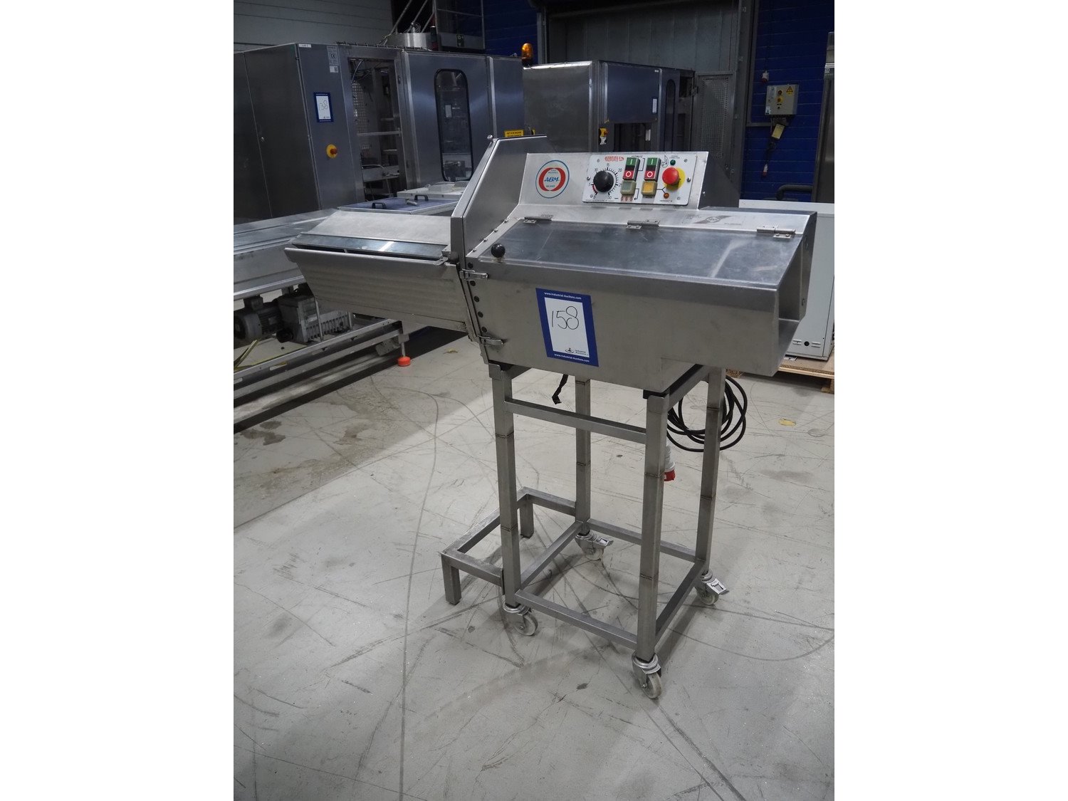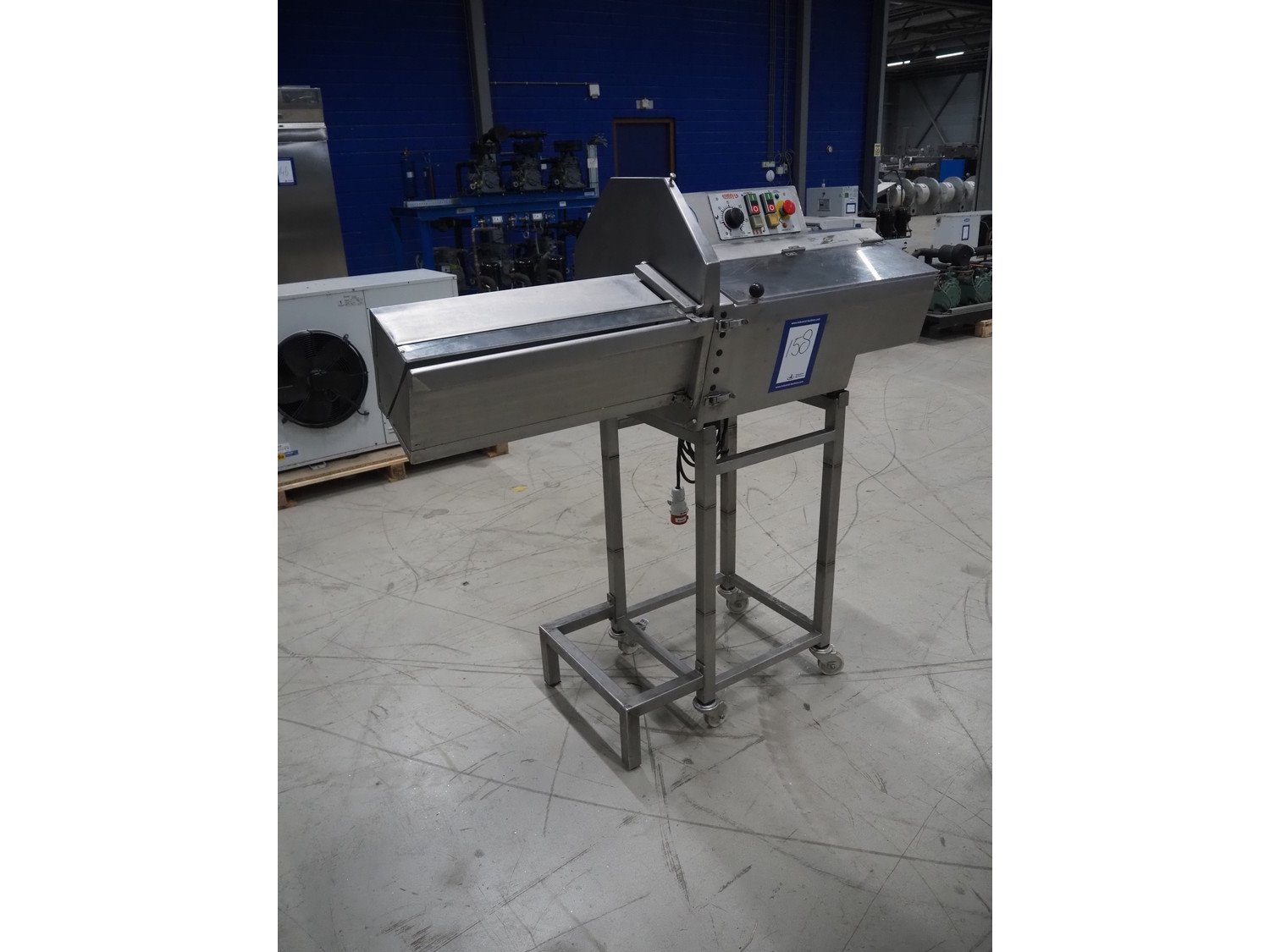 AMB mobile slicer, type: 750L/5.50, machine number: 9212738, year of construction: 1992, 380 V, 3 Ph, 50 Hz, 3.5/10 A, chamber: 180 mm x 200 mm, total dimensions: 1470 mm x 600 mm x 1500 mm. Kavel locatie: Looyenbeemd 11, 5652 BH Eindhoven, Nederland