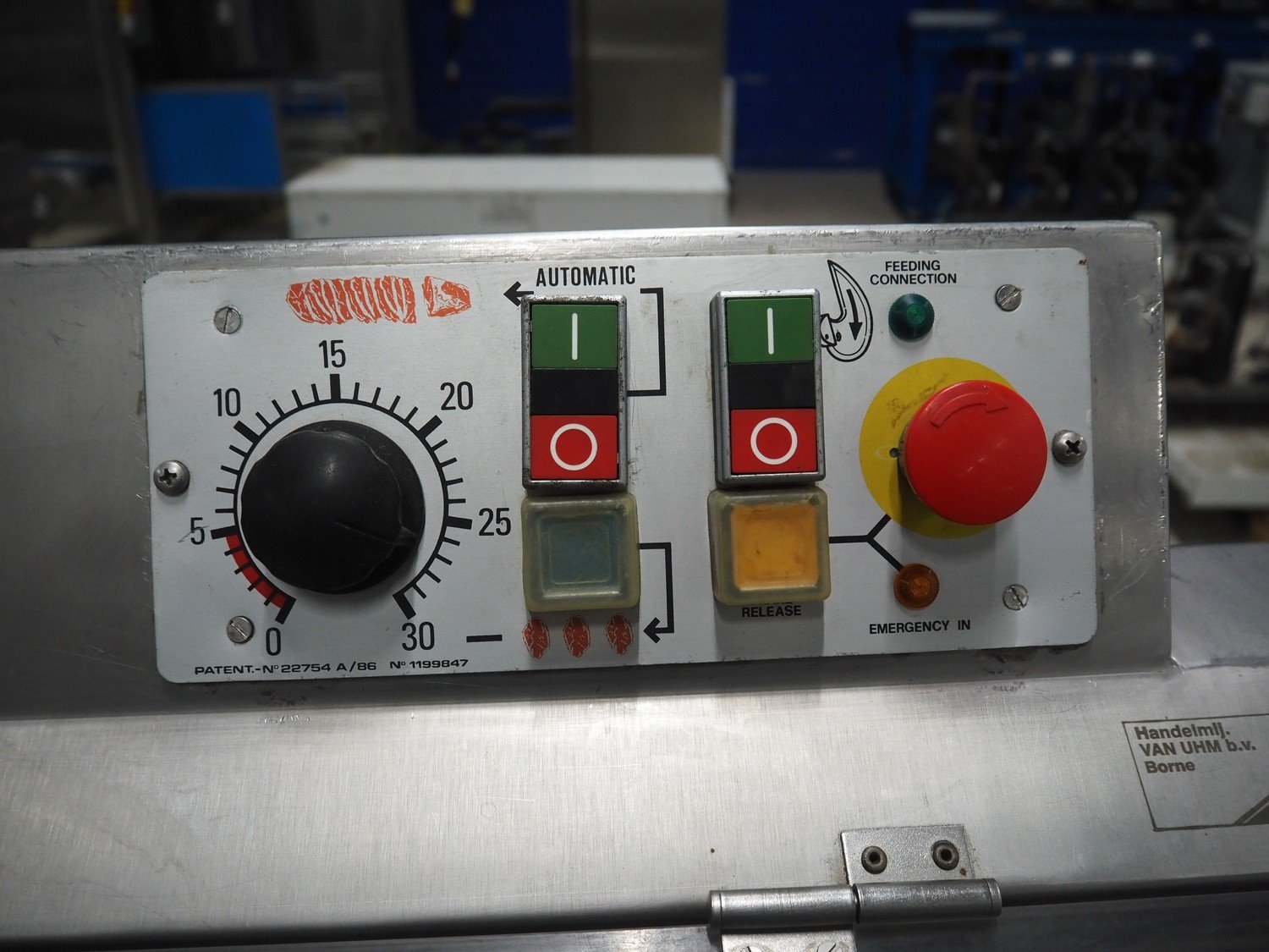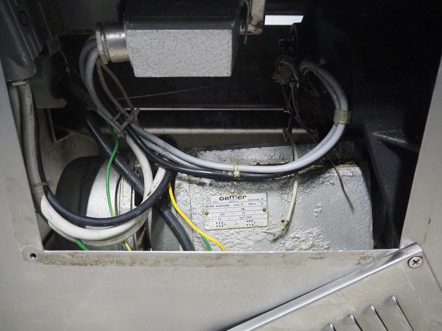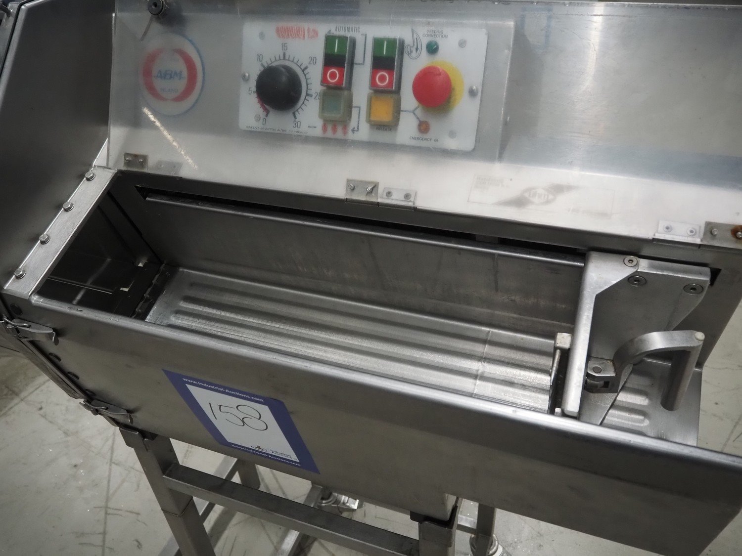 AMB mobile slicer, type: 750L/5.50, machine number: 9212738, year of construction: 1992, 380 V, 3 Ph, 50 Hz, 3.5/10 A, chamber: 180 mm x 200 mm, total dimensions: 1470 mm x 600 mm x 1500 mm. Kavel locatie: Looyenbeemd 11, 5652 BH Eindhoven, Nederland