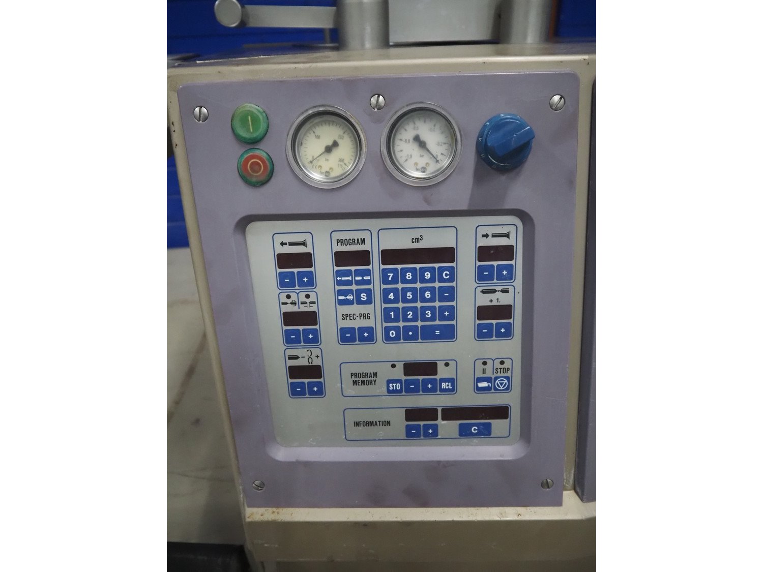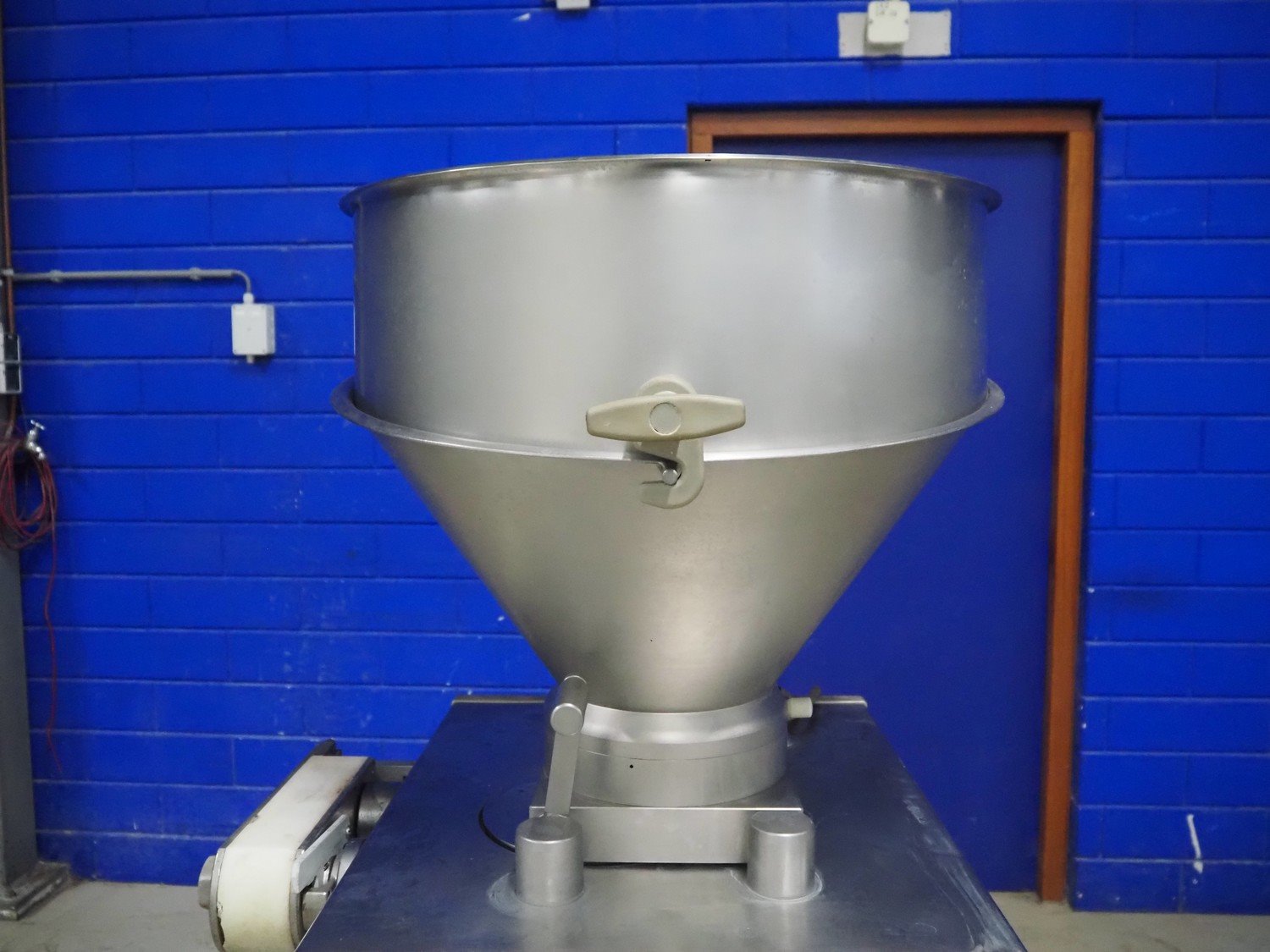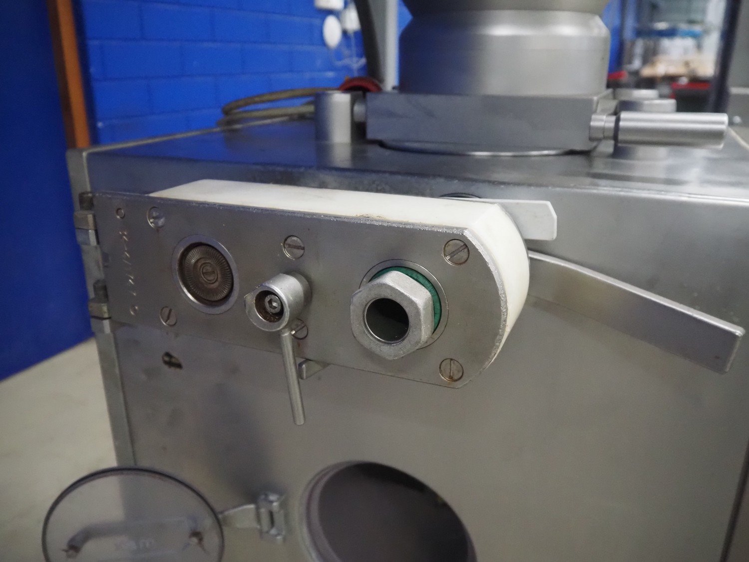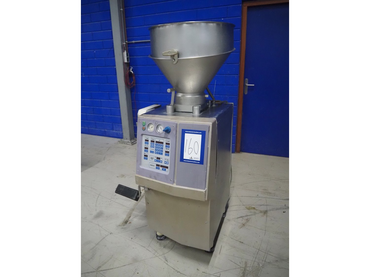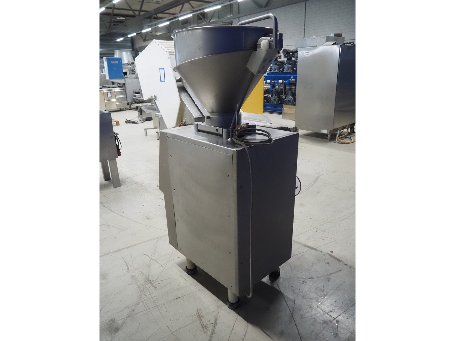 Handtmann vacuum filling machine with linking attachment, type linking attachment: 34-4, number: 1747, dimensions: 650 mm x 840 mm x 1620 mm. Kavel locatie: Looyenbeemd 11, 5652 BH Eindhoven, Nederland