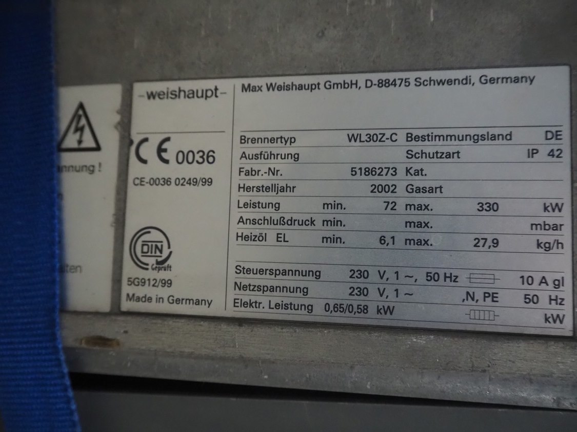 Viessmann steam generator with Weishaupt oil burner, type steam generator: Vitoplex 100, type: oil generator: WL30Z-C, factory number: 5186273, year of construction: 2002, 230 V, 1 Ph, 50 Hz, capacity: 27.9 kg per hour, total dimensions: 2120 mm x 1100 mm x 2000 mm. Kavel locatie: Looyenbeemd 11, 5652 BH Eindhoven, Nederland