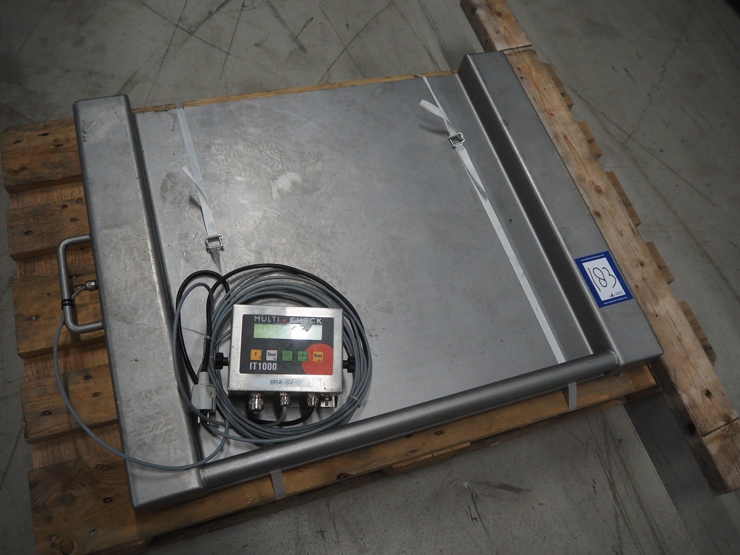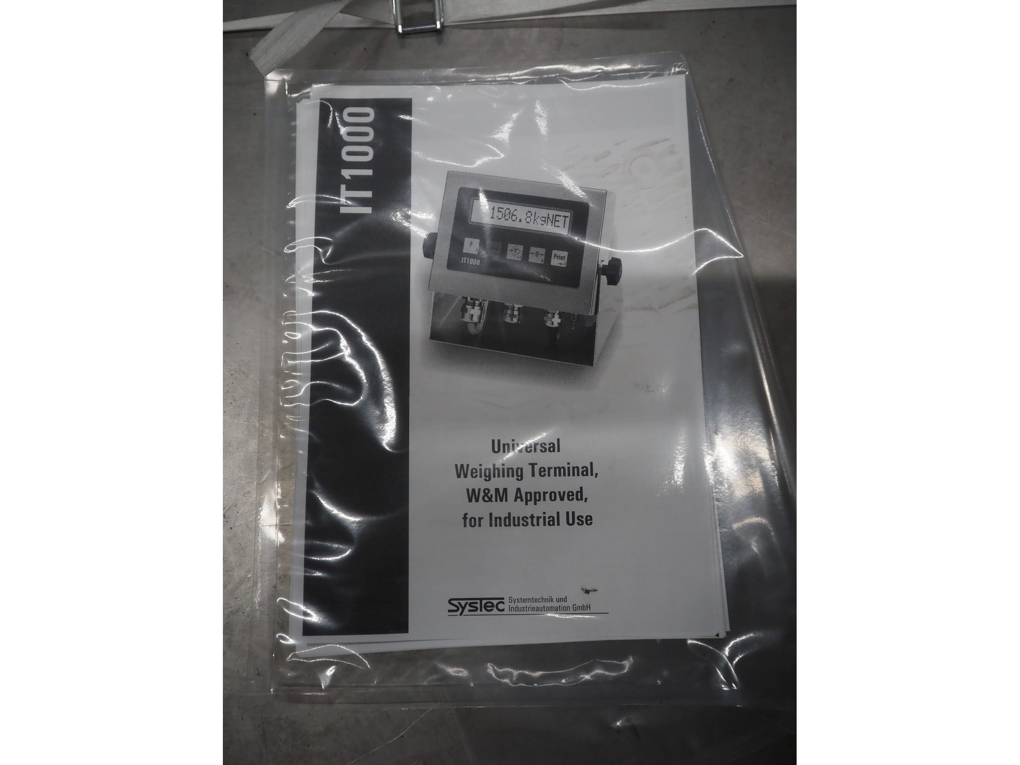 Systec GmbH floor weighing scale with indicator, type: IT1000, serial number: 1507163, 110/240 V, 50/60 Hz, maximum capacity: 3000 kg, minimum capacity: 20 kg, e=d= 1 kg, dimensions: 930 mm x 730 mm x 85 mm. Kavel locatie: Looyenbeemd 11, 5652 BH Eindhoven, Nederland