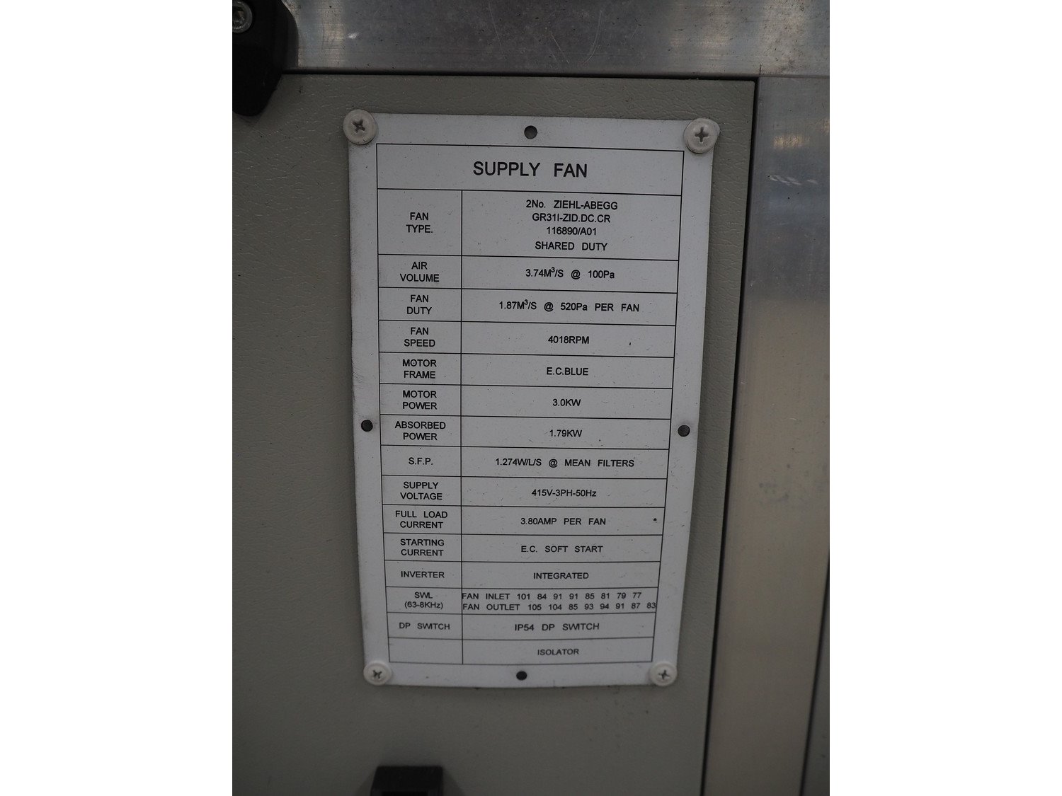 Newsome air handling unit, serial number: C3004, year of construction: 06/2021, 415 V, 3 Ph, 50 Hz, 3.80 A, 3.0/1.79 kW, 4018 rpm, dimensions: 1500 mm x 1200 mm x 2400 mm. Kavel locatie: Looyenbeemd 11, 5652 BH Eindhoven, Nederland