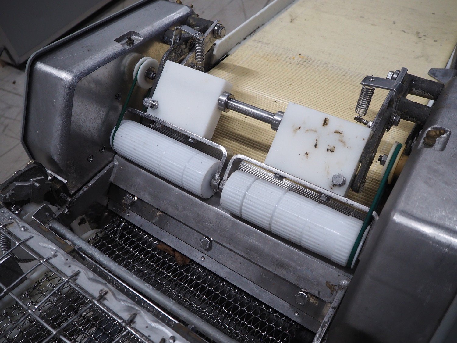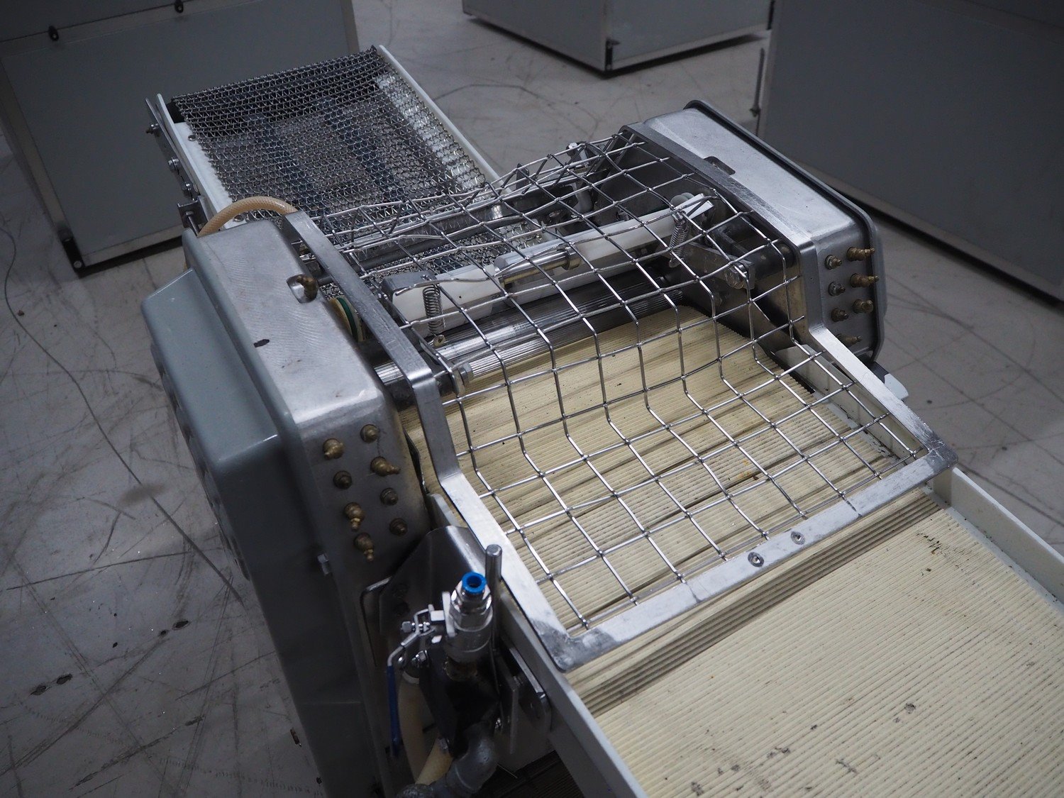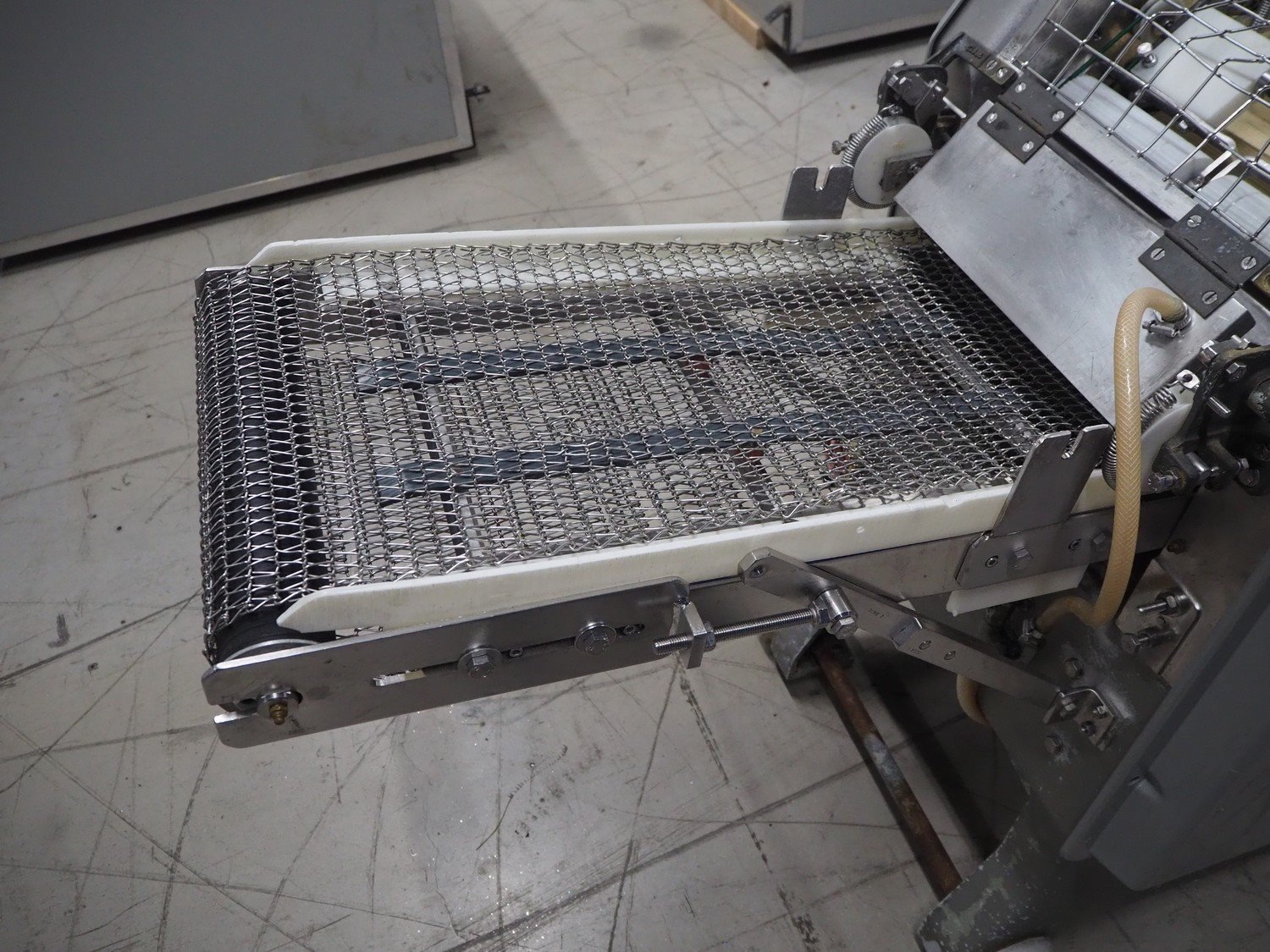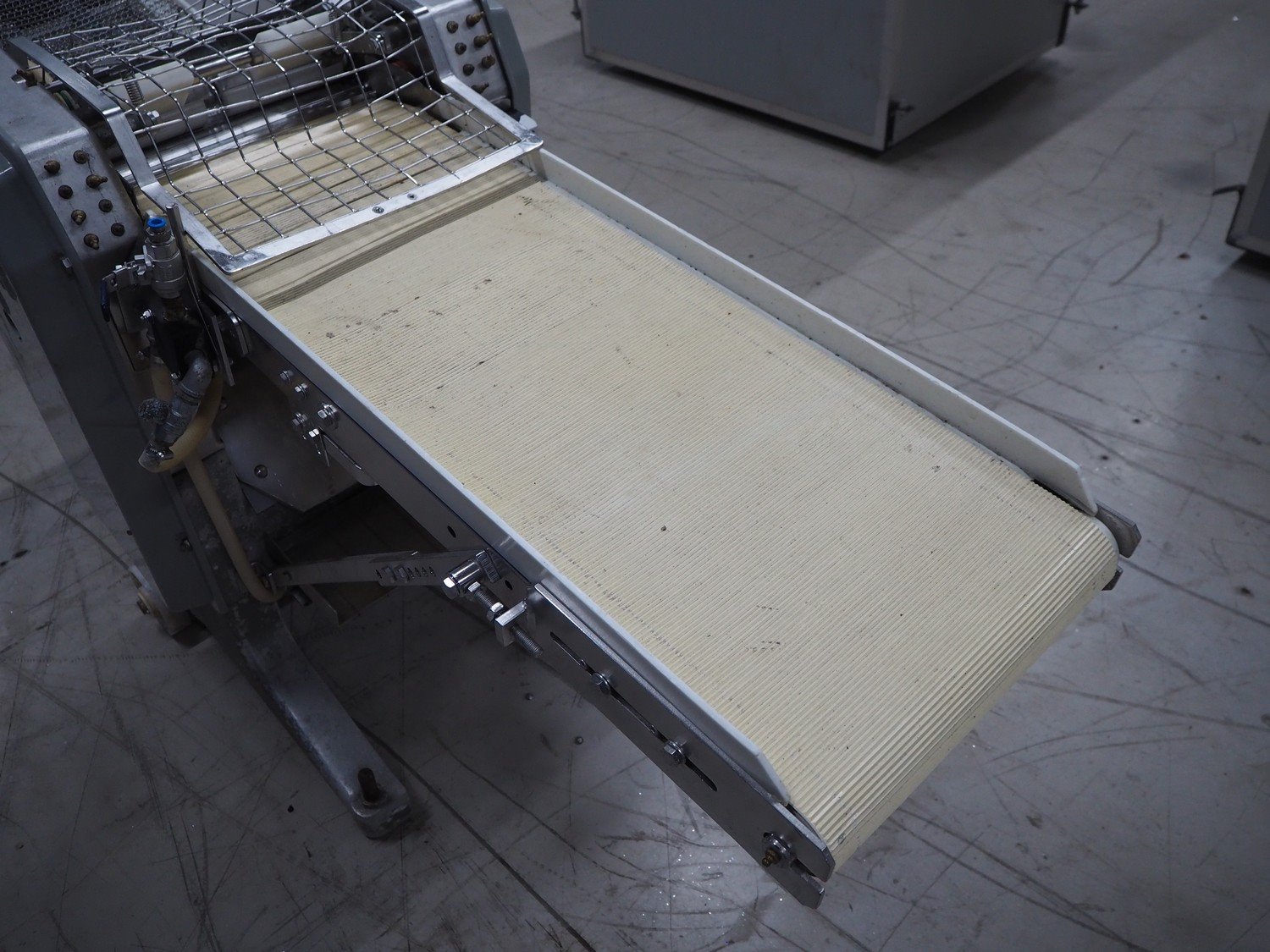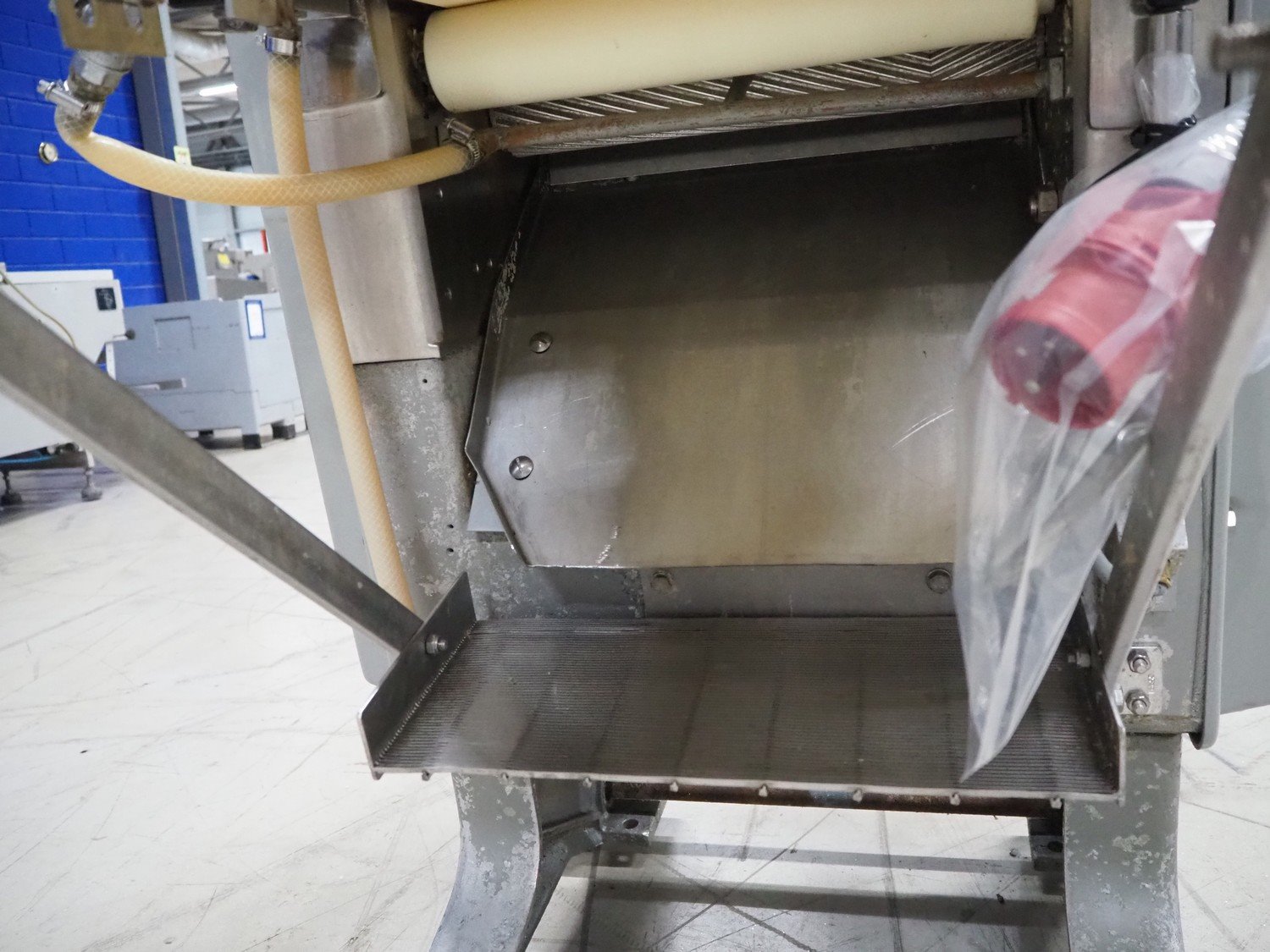 Baader skinning machine, model: 51, plastic belt, belt width: 380 mm, s/s mesh belt, belt width: 365 mm, working width: 405 mm, total dimensions: 2200 mm x 750 mm x 1100 mm. Kavel locatie: Looyenbeemd 11, 5652 BH Eindhoven, Nederland