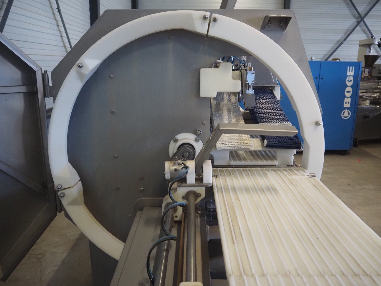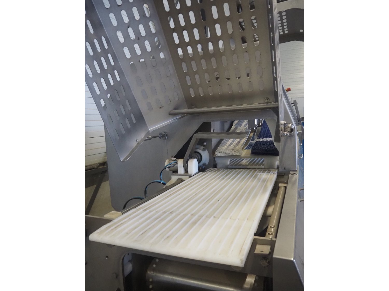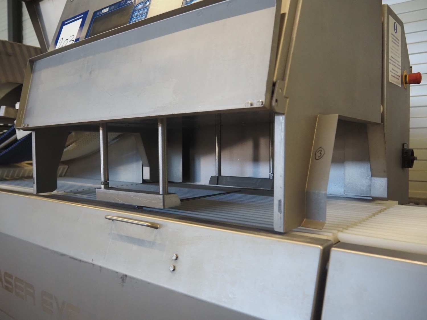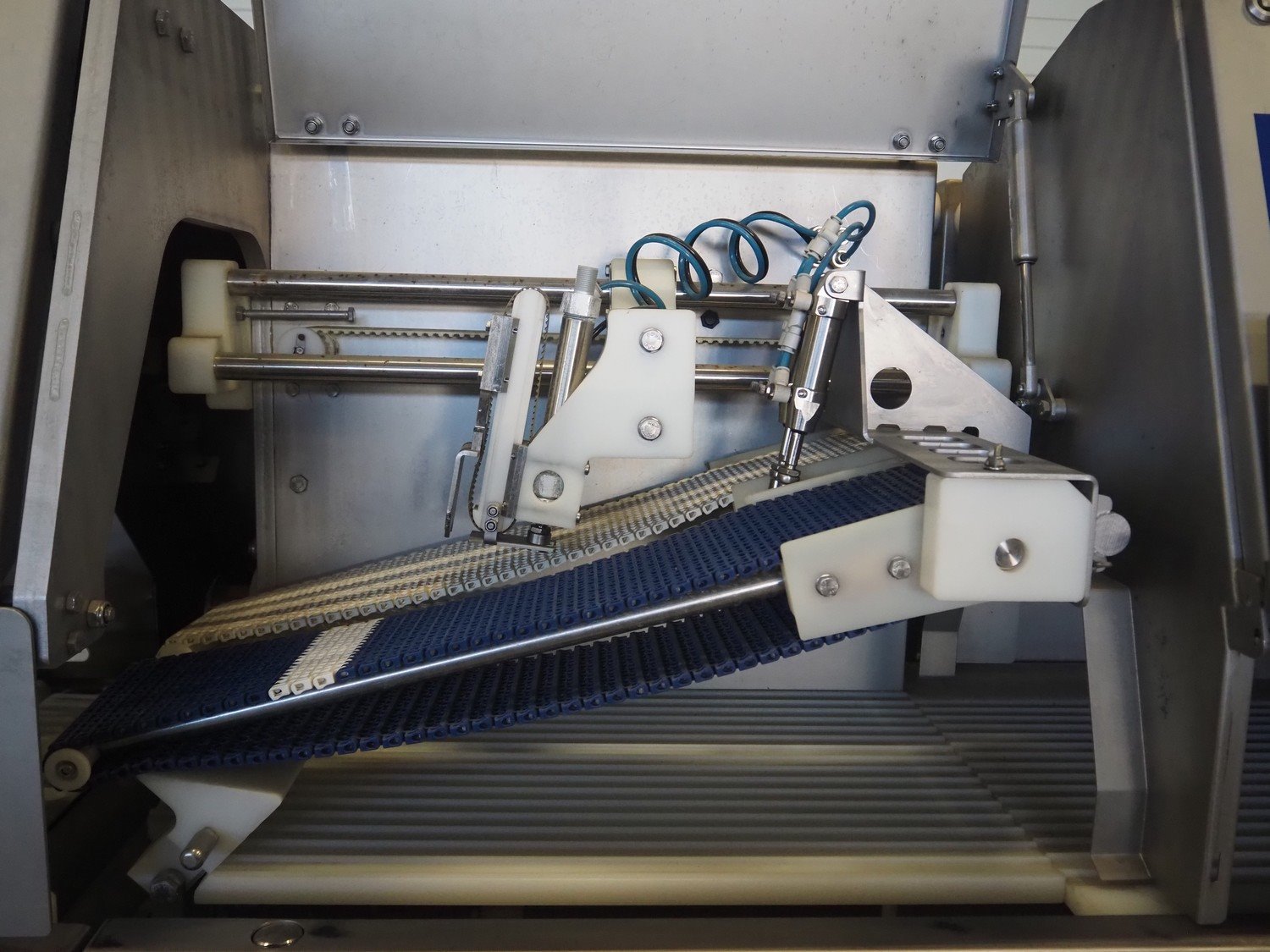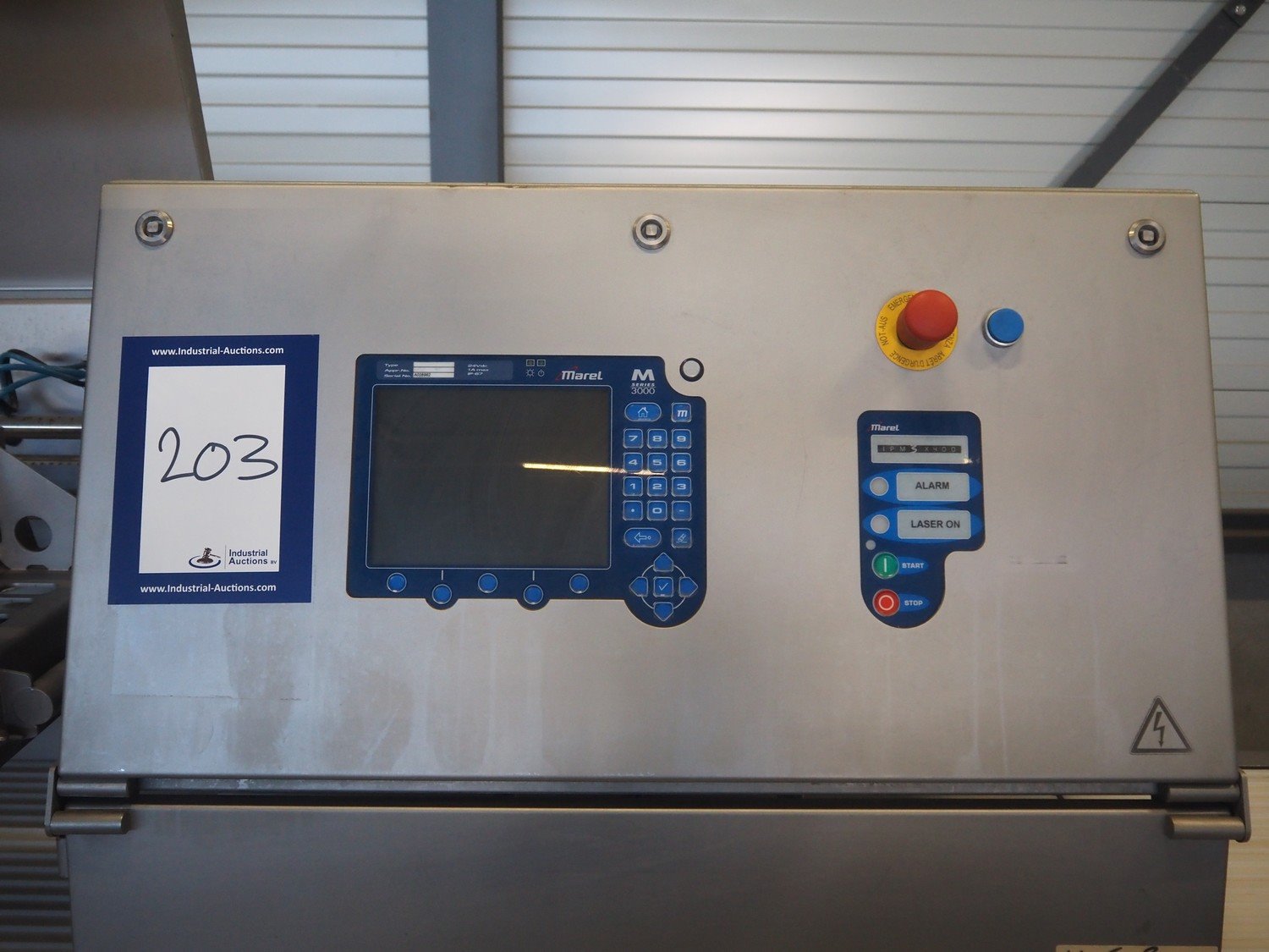 Marel portion cutter, type: IPM3 X400, model: Laser Eye, serial number: A030275, year of construction: 2005, 380-480 V, 3 Ph, 32 A, 10 kW, approximate belt width: 400 mm, total dimensions: 3200 mm x 1050 mm x 1900 mm. Kavel locatie: Looyenbeemd 11, 5652 BH Eindhoven, Nederland
